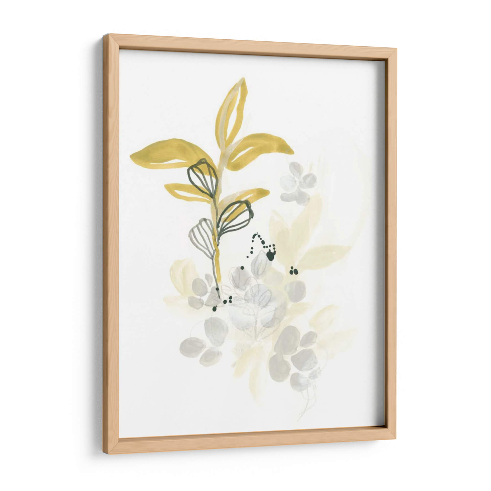 Sumérgete en la serenidad de "El Jardín Minimalista I", una obra de arte que captura la delicadeza de la naturaleza con una paleta de colores suaves y etéreos. Este cuadro decorativo presenta un delicado arreglo de formas botánicas, con hojas estilizadas en tonos mostaza y gris, contorneadas con finas líneas de tinta que añaden un toque de profundidad y detalle. La composición, sutil y elegante, evoca una sensación de calma y tranquilidad, perfecta para espacios que buscan un refugio de paz y sofisticación. La técnica de acuarela y tinta se entrelaza para crear una atmósfera ligera y aireada, ideal para complementar decoraciones modernas, escandinavas o minimalistas. "El Jardín Minimalista I" no es solo una pieza decorativa, sino una invitación a la contemplación, capaz de transformar cualquier ambiente, ya sea un dormitorio sereno, un estudio inspirador o una sala de estar acogedora, en un santuario de estilo y armonía. Su diseño limpio y contemporáneo asegura que sea un punto focal discreto pero impactante, aportando un toque de naturaleza y arte refinado a tu hogar u oficina.