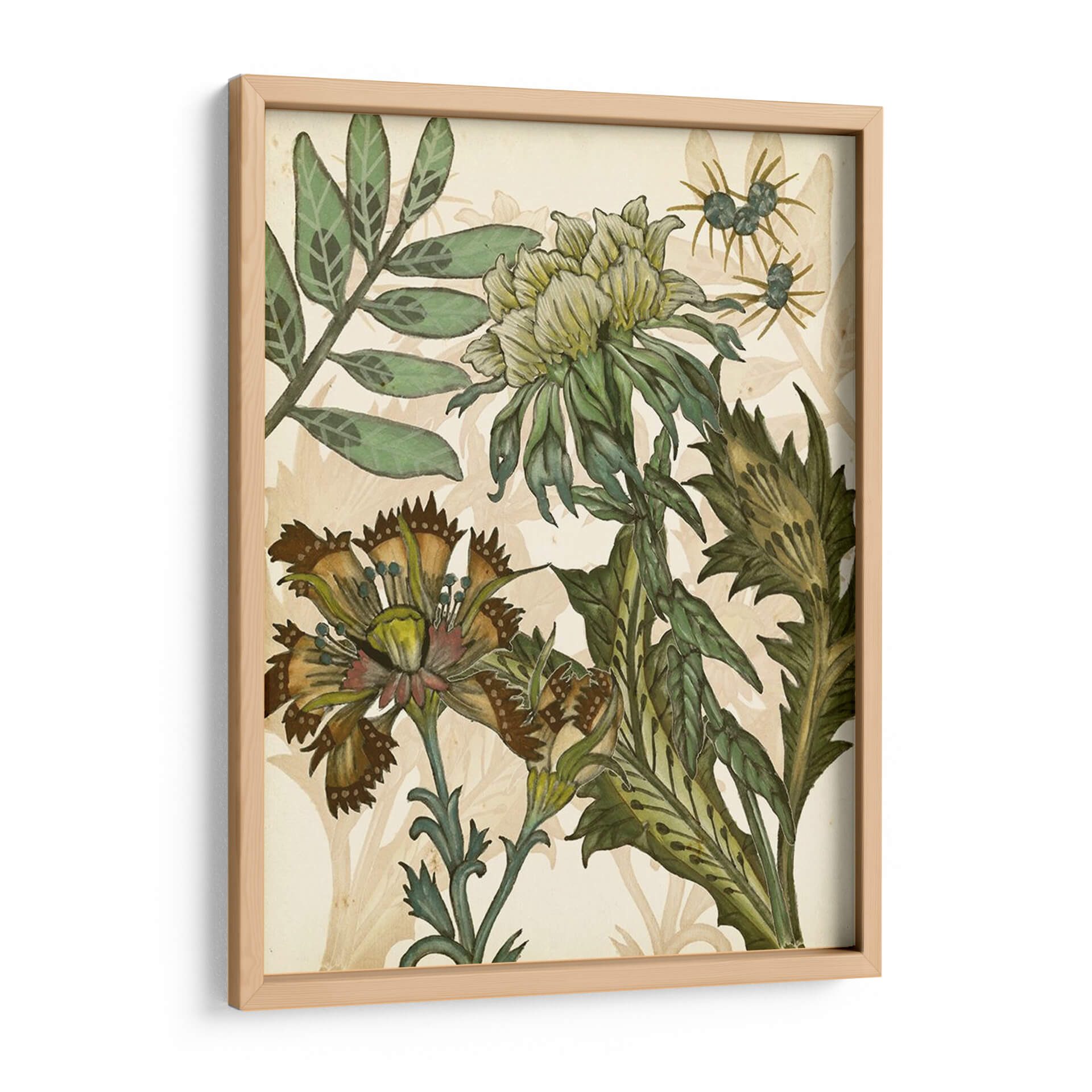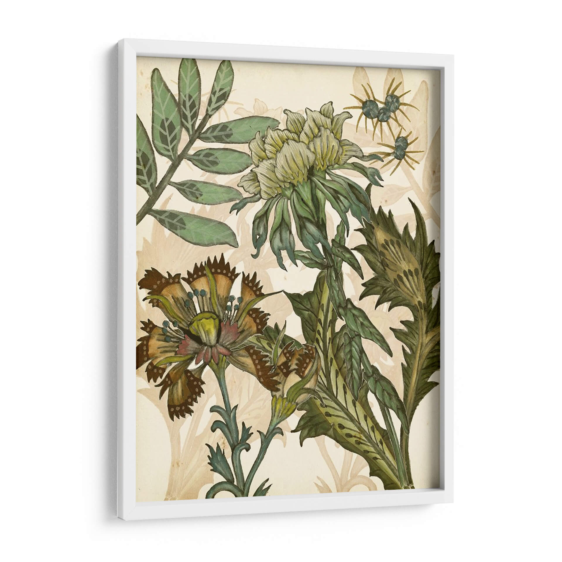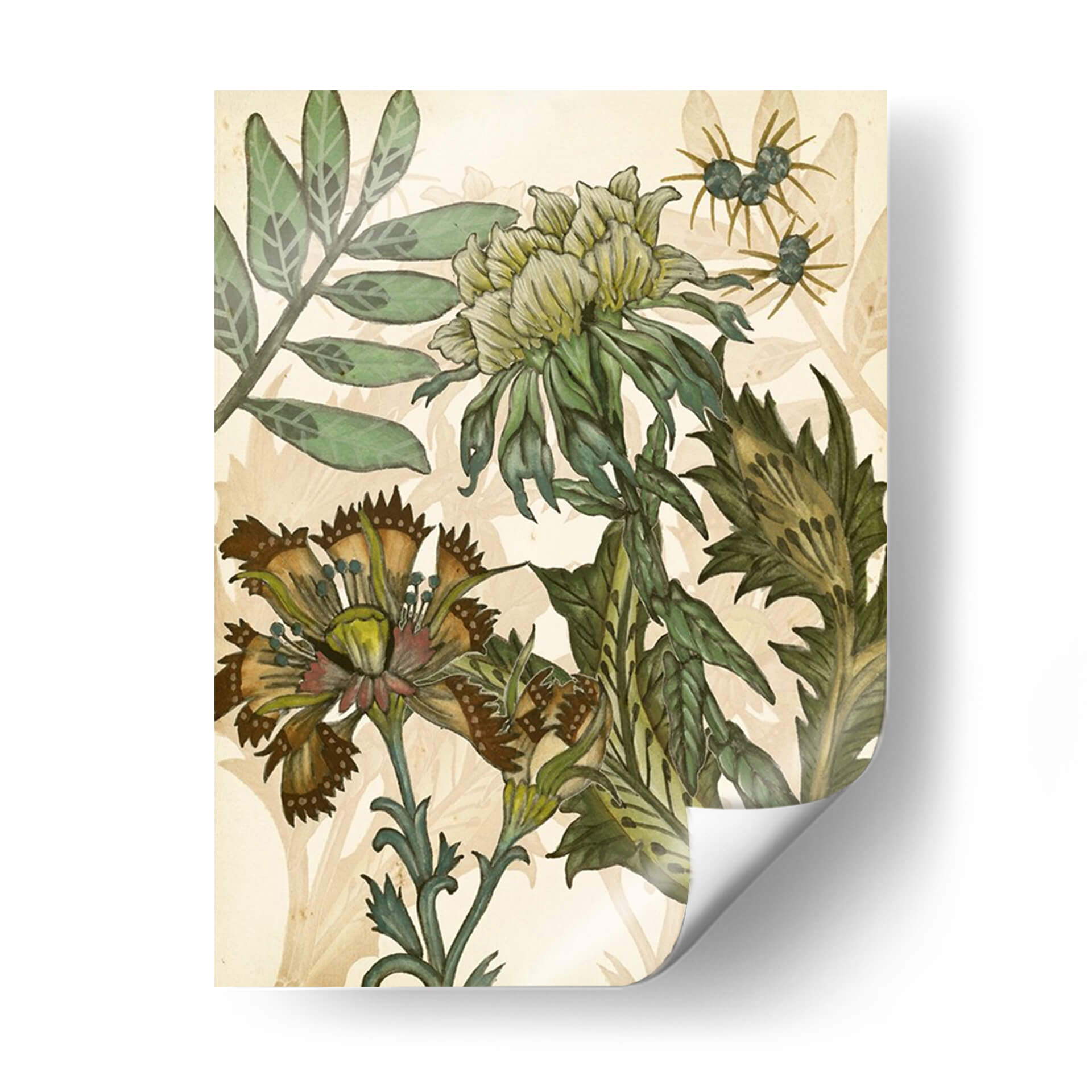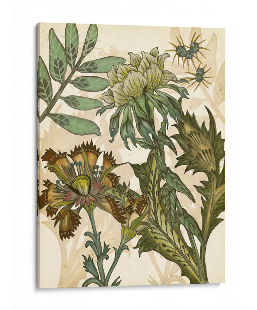 Sumérgete en la exuberante belleza botánica de "Encantado III", una obra maestra de Melissa Wang que captura la esencia de la naturaleza con un detalle exquisito y una paleta de colores terrosos y verdes profundos. Este cuadro decorativo presenta un arreglo floral intrincado, con flores detalladas y hojas exuberantes que parecen cobrar vida sobre un fondo suavemente texturizado. La composición, rica en matices y delicadeza, evoca una sensación de calma y asombro, invitando a la contemplación. Los tonos predominantes, que van desde el verde musgo hasta el ocre y el marrón, crean una atmósfera orgánica y sofisticada, perfecta para añadir un toque de elegancia natural a cualquier espacio. Ideal para salas de estar, comedores o estudios que buscan una conexión con la naturaleza y un punto focal artístico distintivo. "Encantado III" no es solo una pieza decorativa, sino una ventana a un jardín encantado que inspira tranquilidad y admiración por la belleza botánica.