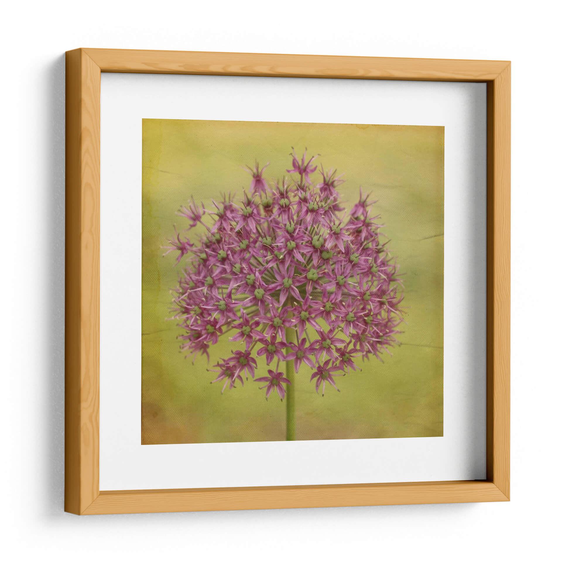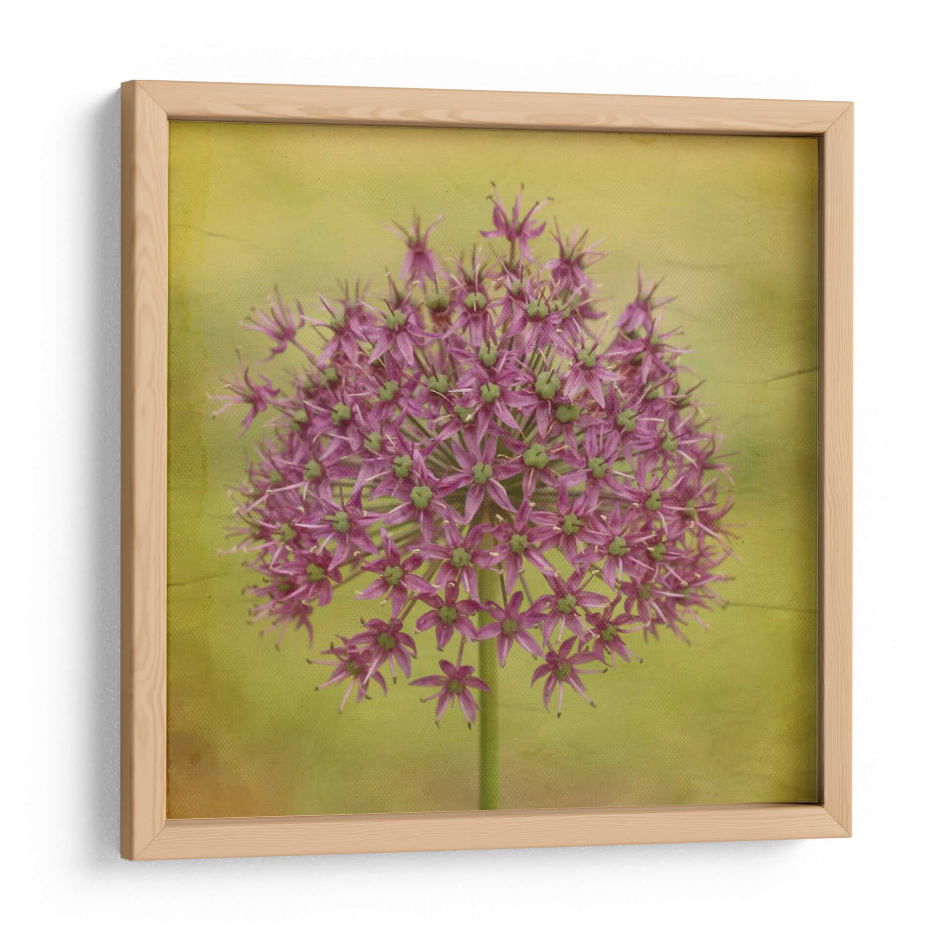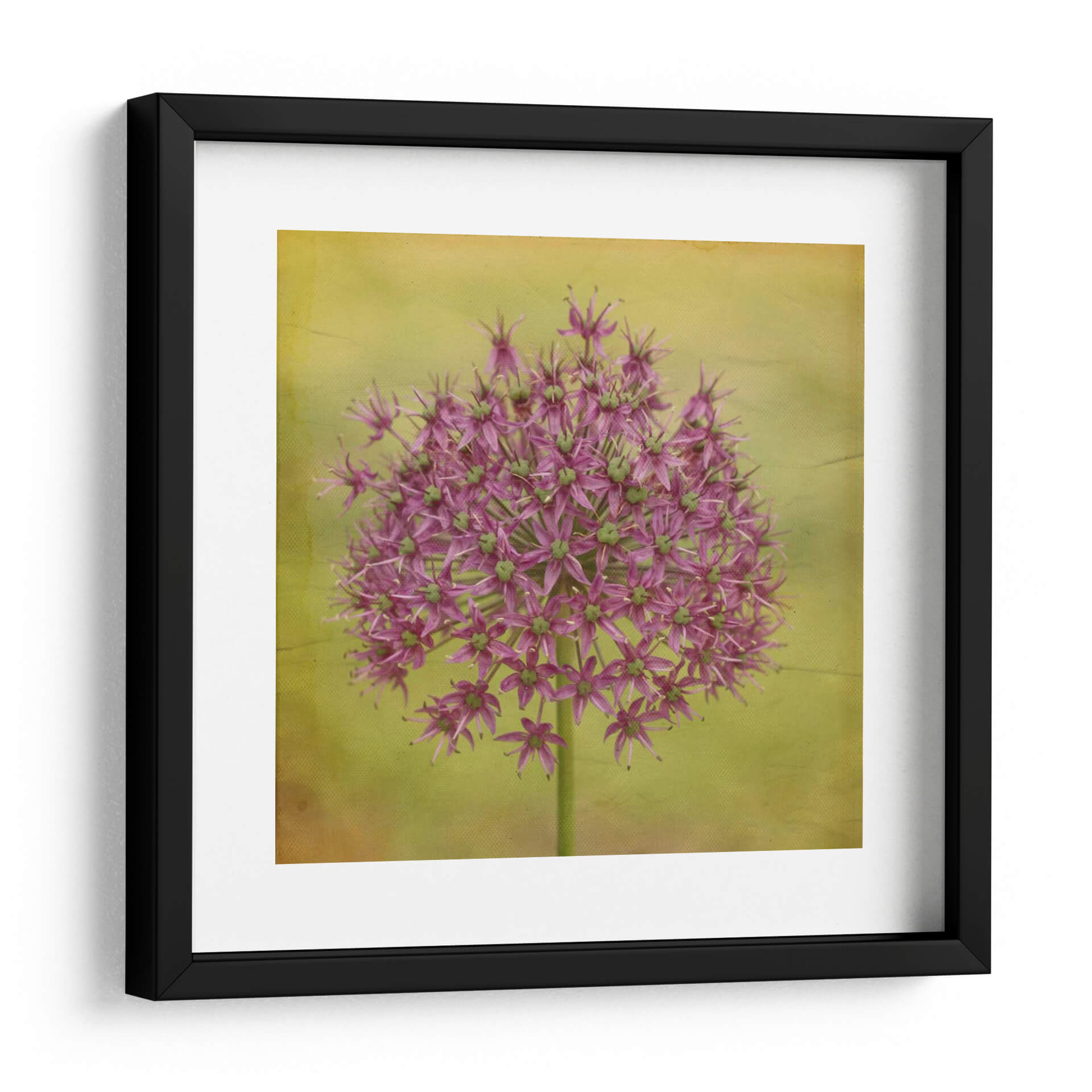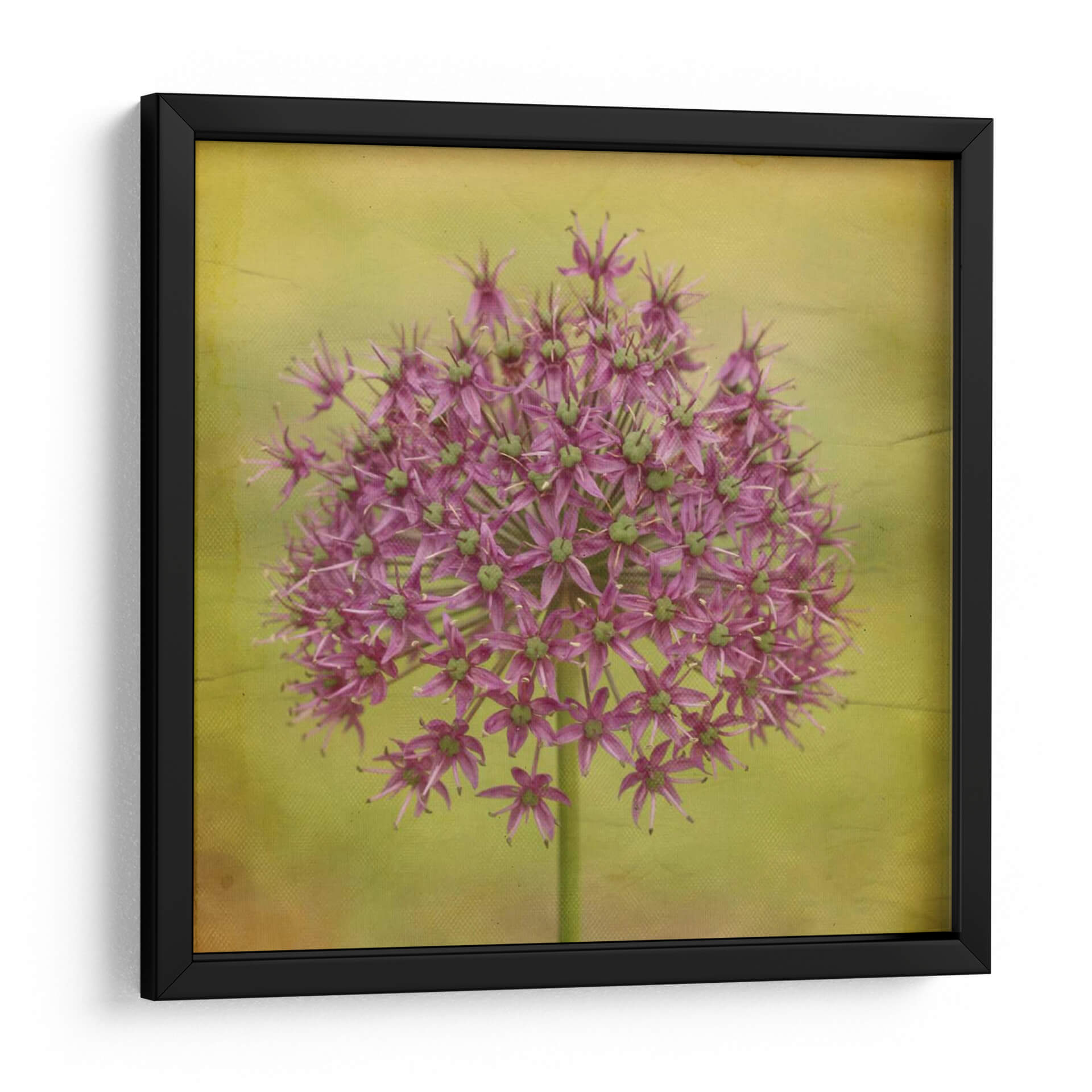 Sumérgete en la delicadeza y el encanto de "Esperando En Púrpura V", una obra de arte contemporáneo que captura la esencia de la naturaleza con una explosión de color y forma. Este cuadro decorativo presenta una flor de allium en pleno esplendor, con sus intrincados pétalos de un vibrante tono púrpura que se abren paso hacia el espectador. El fondo, una suave acuarela en tonos verdes y amarillos dorados, crea una atmósfera de calidez y serenidad, evocando la luz del sol filtrándose a través de la vegetación. La composición centrada y la textura sutil del fondo añaden profundidad y un toque rústico, invitando a la contemplación. Ideal para quienes buscan infundir vitalidad y un toque de la belleza natural en sus hogares u oficinas, este cuadro es una pieza que inspira calma y optimismo. Su estilo fotográfico, realzado con un tratamiento artístico que le confiere un aire atemporal, lo convierte en el complemento perfecto para cualquier espacio que desee ser realzado con una pieza de arte floral distintiva y llena de vida. Añade un toque de color y sofisticación a tus paredes.
