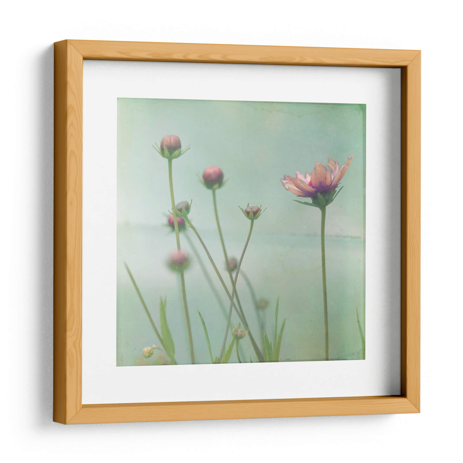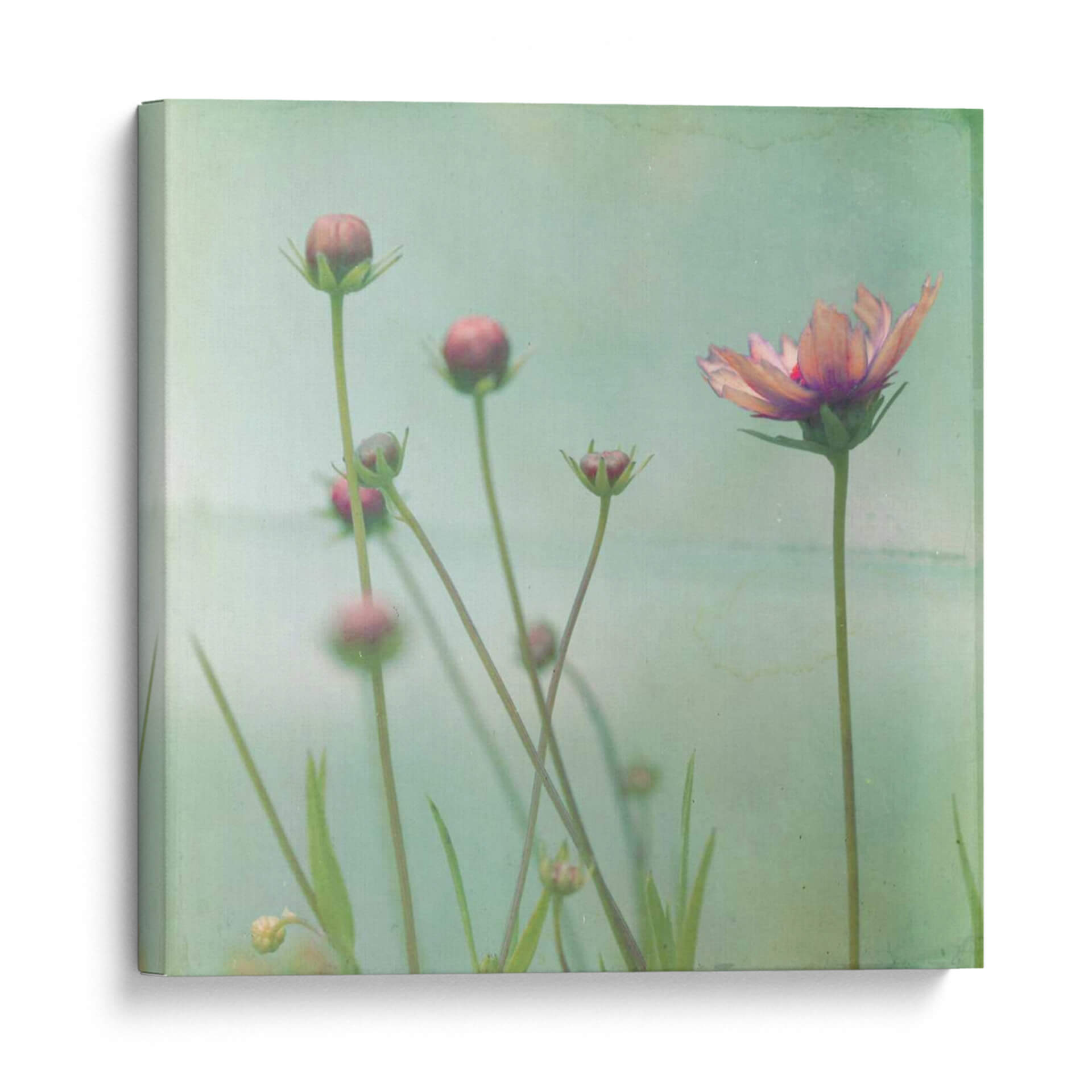Sumérgete en la delicada belleza de "Esperando En Púrpura Viii", una obra de arte contemporáneo que captura la esencia etérea de la naturaleza. La pieza presenta una composición sutil de capullos y una flor principal en tonos púrpura y coral, rodeados por un fondo suave y etéreo en tonos verde azulado. La luz difusa baña la escena, creando una atmósfera de calma y anticipación, como si la naturaleza misma estuviera en un momento de contemplación silenciosa. Los tallos largos y delgados contrastan con la suavidad de los pétalos, añadiendo un toque de elegancia y dinamismo a la obra. Este cuadro decorativo es ideal para quienes buscan infundir serenidad y un toque de color suave en sus espacios, ya sea un dormitorio tranquilo, un estudio reflexivo o una sala de estar que necesite un punto de inspiración natural. Su estilo contemporáneo y su paleta de colores pastel lo convierten en una adición versátil para cualquier decoración moderna o minimalista, aportando una sensación de paz y belleza efímera. Deja que esta pieza te transporte a un jardín de ensueño y añada una nota de sofisticación natural a tu hogar u oficina.