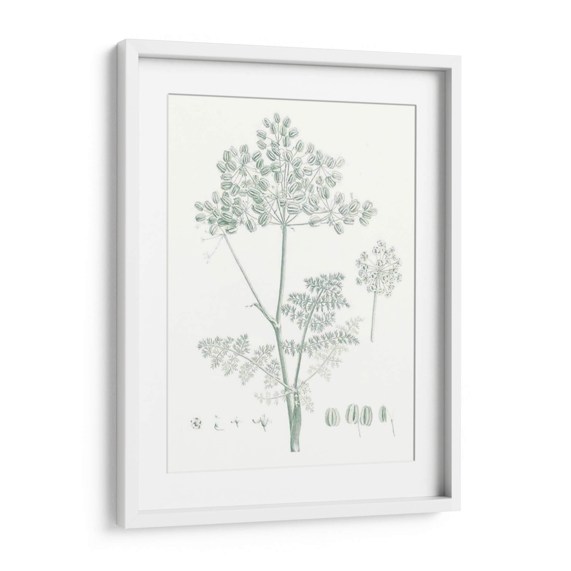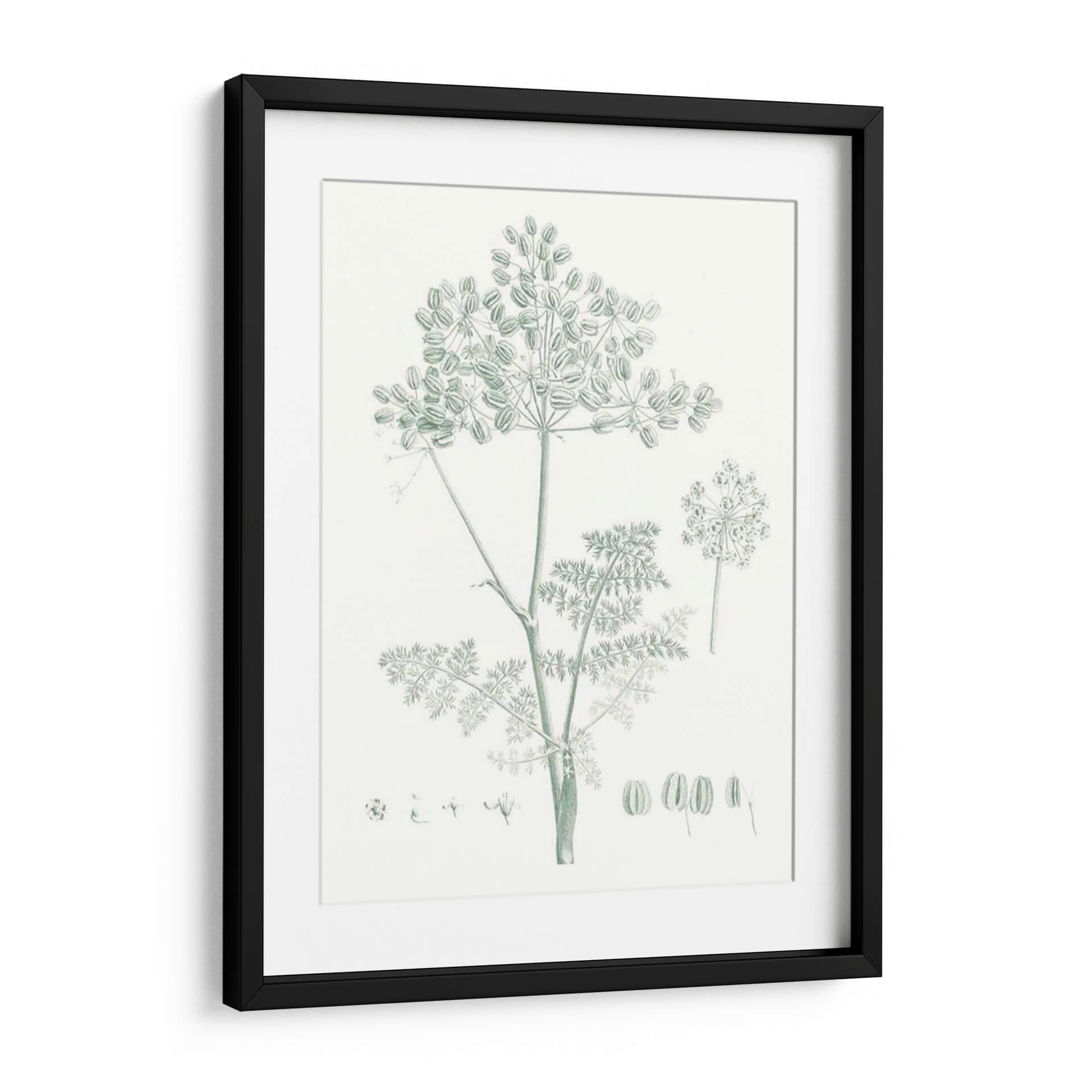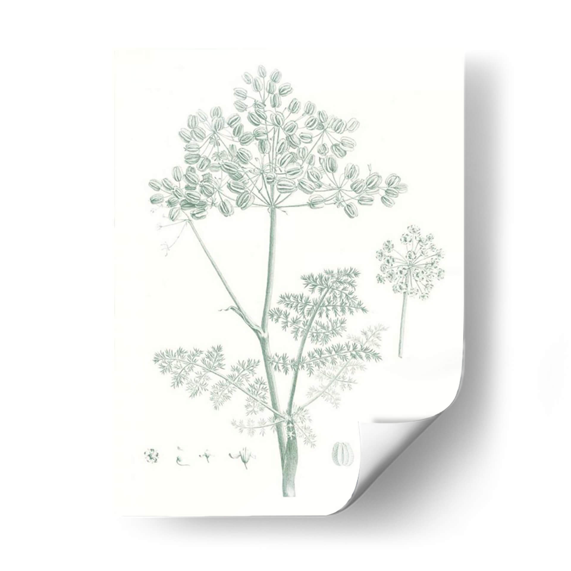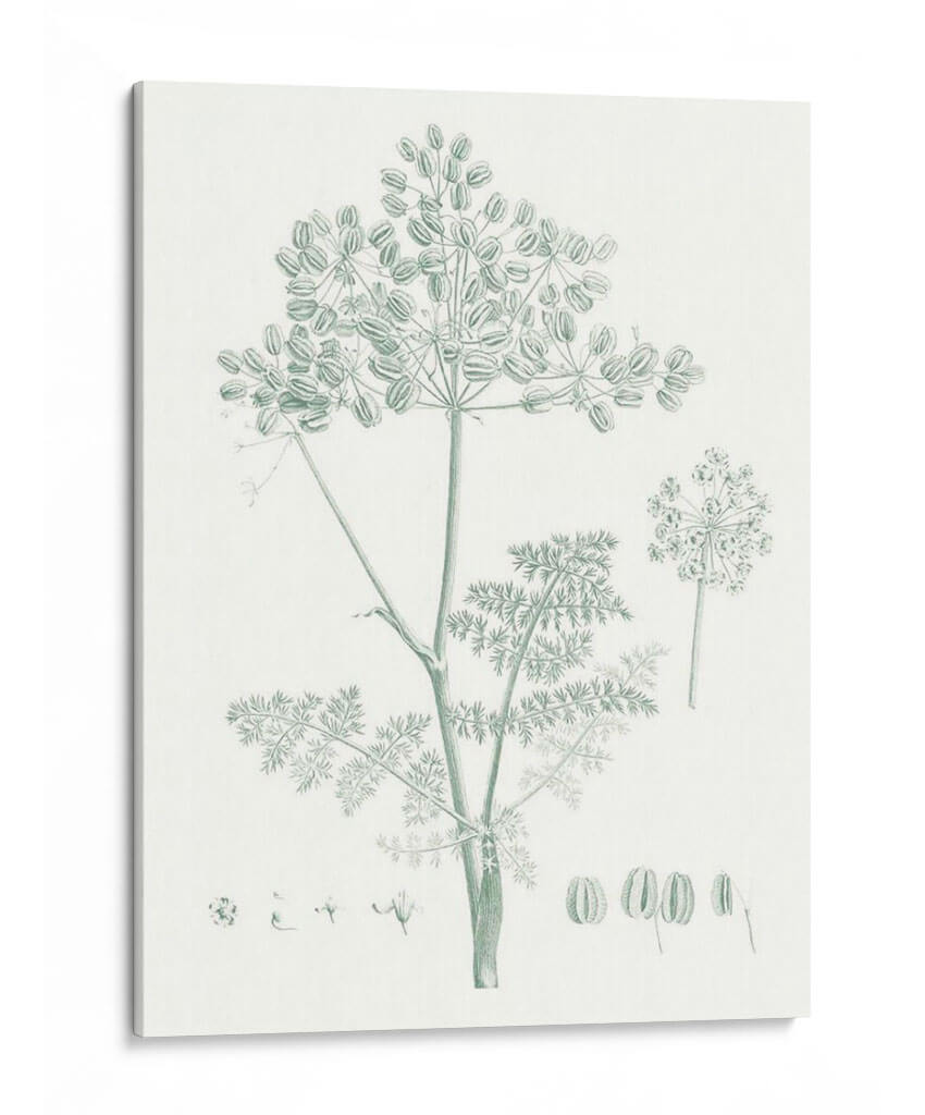 Embellece tu hogar con el encantador cuadro decorativo 'Estudio Botánico En Sage Vi', una pieza que captura la delicadeza de la naturaleza con un estilo clásico y elegante. Este exquisito diseño presenta una detallada ilustración botánica de una planta de hinojo, con sus umbelas características y finas hojas, dibujada en un sereno tono verde salvia sobre un fondo neutro. La composición se centra en la belleza intrínseca de la flora, ofreciendo una perspectiva serena y armoniosa. Es ideal para espacios que buscan un toque de frescura y tranquilidad, como dormitorios, salas de estar o estudios. La paleta de colores suaves y la delicadeza del trazo invitan a la calma y la contemplación, convirtiendo este cuadro en un elemento decorativo que no solo embellece, sino que también aporta una atmósfera de paz y conexión con el mundo natural. Perfecto para quienes aprecian el arte botánico y desean añadir un toque de sofisticación botánica a su decoración contemporánea o tradicional.