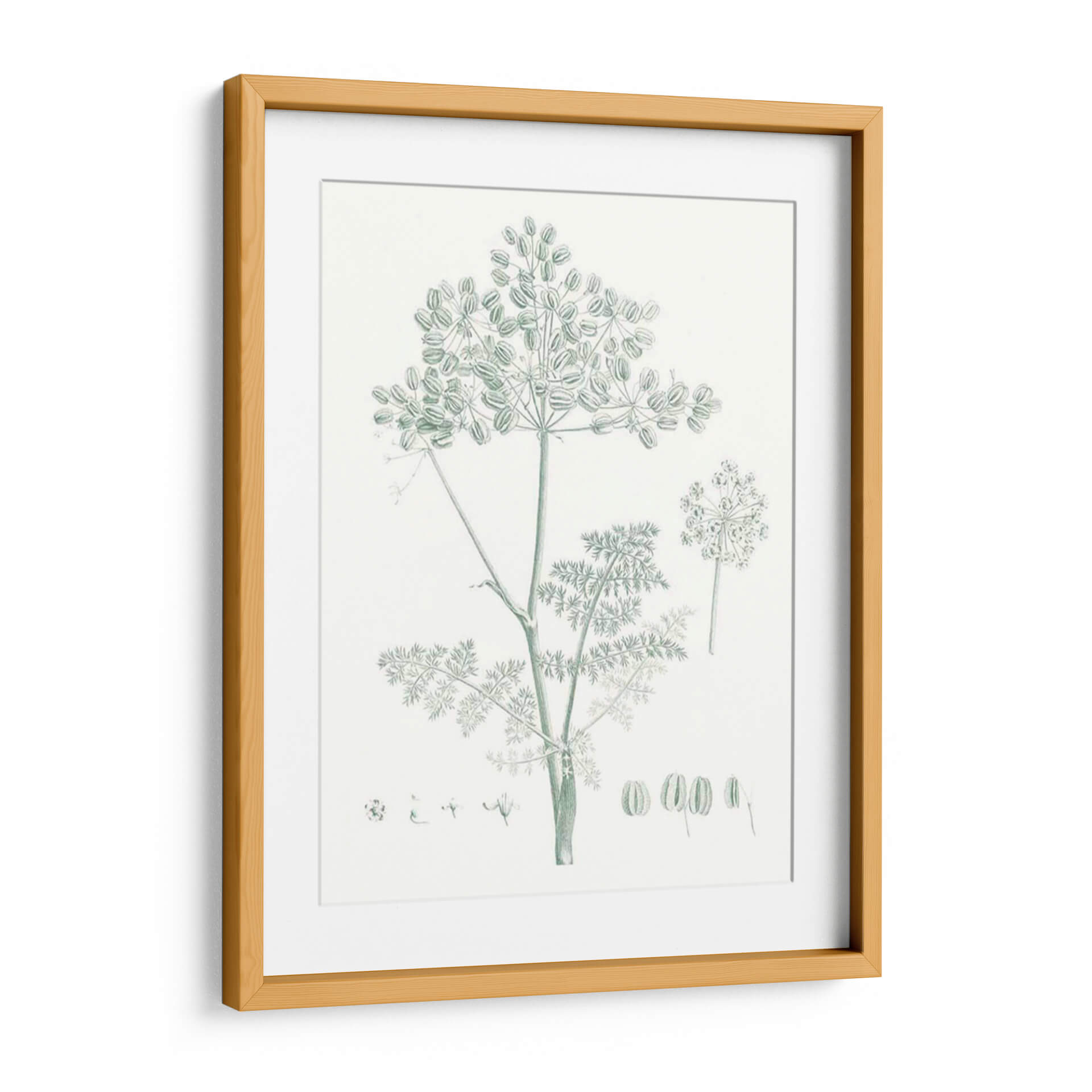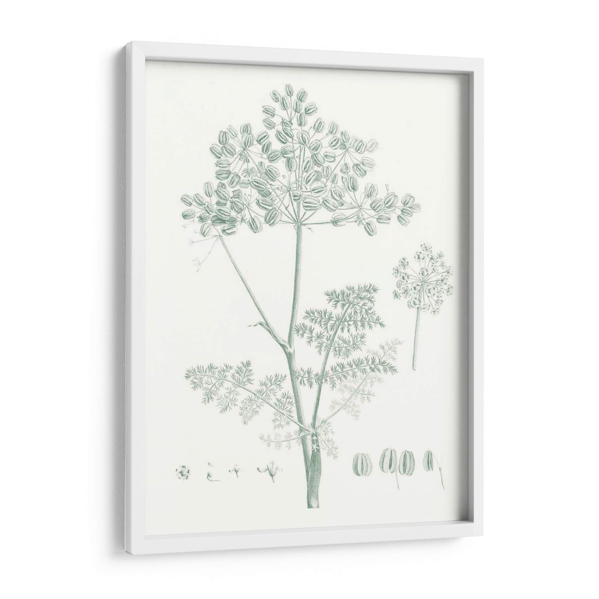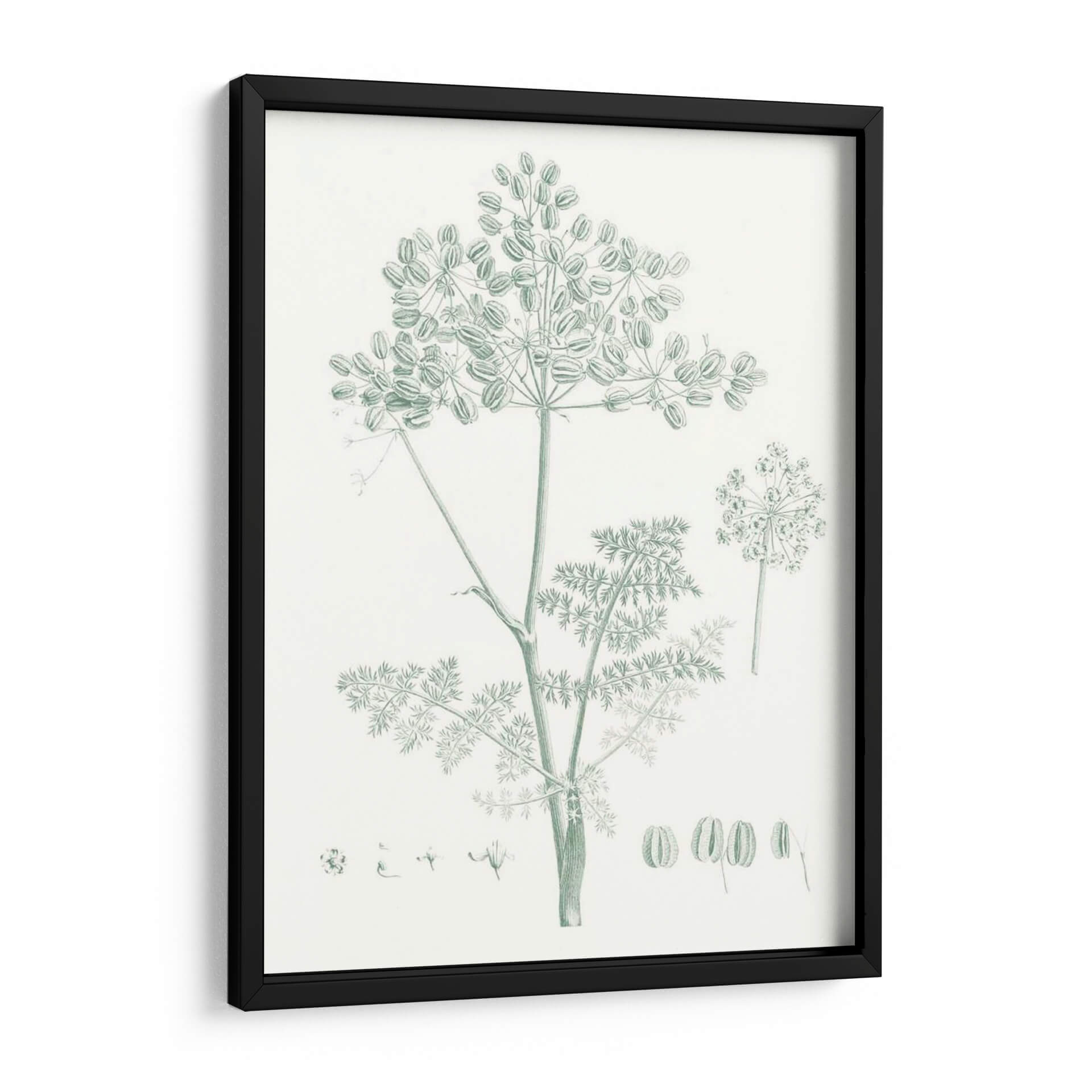 Embellece tu hogar con el encantador cuadro decorativo 'Estudio Botánico En Sage Vi', una pieza que captura la delicadeza de la naturaleza con un estilo clásico y elegante. Este exquisito diseño presenta una detallada ilustración botánica de una planta de hinojo, con sus umbelas características y finas hojas, dibujada en un sereno tono verde salvia sobre un fondo neutro. La composición se centra en la belleza intrínseca de la flora, ofreciendo una perspectiva serena y armoniosa. Es ideal para espacios que buscan un toque de frescura y tranquilidad, como dormitorios, salas de estar o estudios. La paleta de colores suaves y la delicadeza del trazo invitan a la calma y la contemplación, convirtiendo este cuadro en un elemento decorativo que no solo embellece, sino que también aporta una atmósfera de paz y conexión con el mundo natural. Perfecto para quienes aprecian el arte botánico y desean añadir un toque de sofisticación botánica a su decoración contemporánea o tradicional.