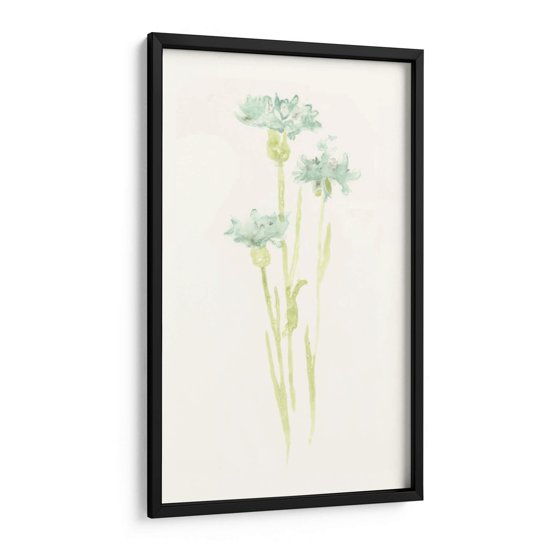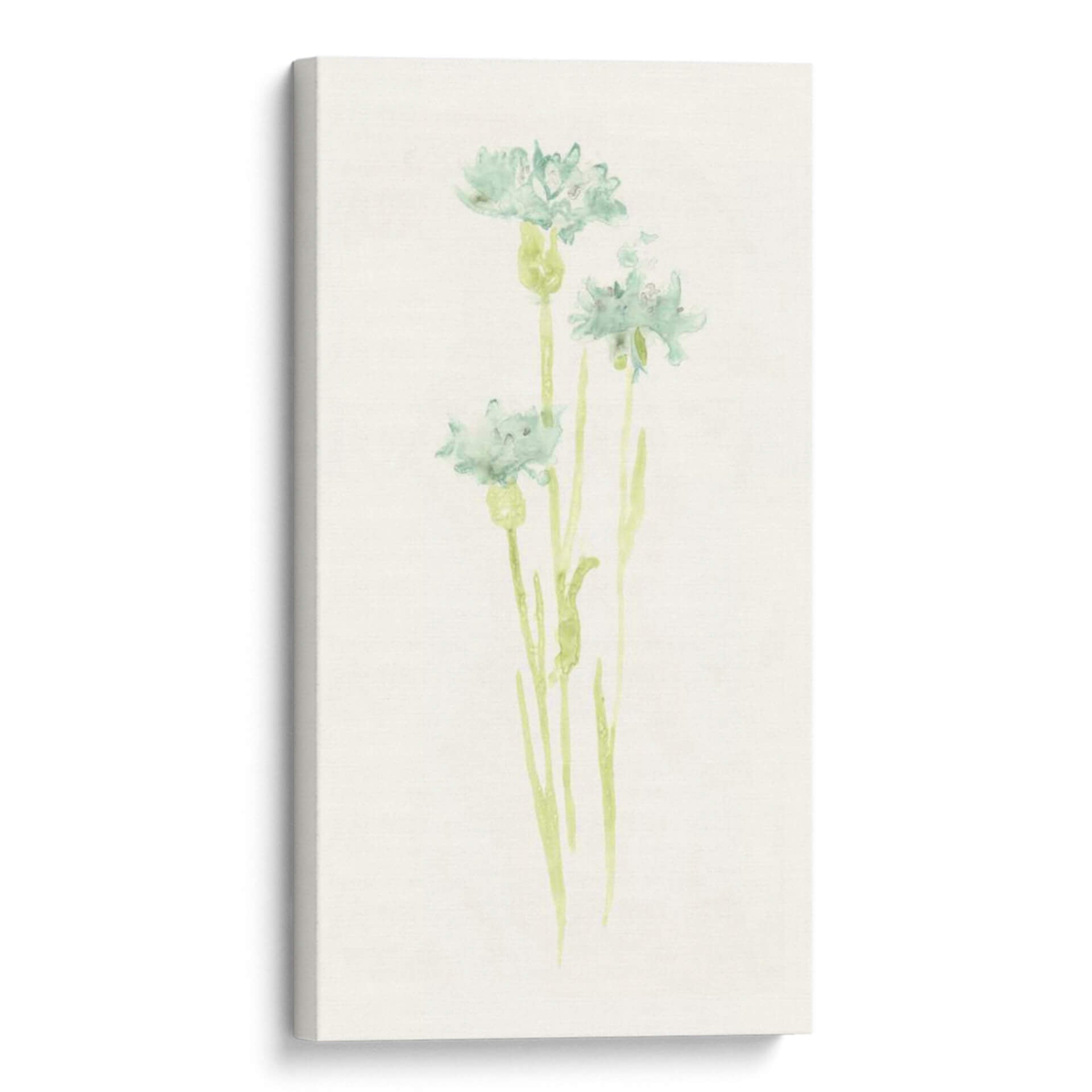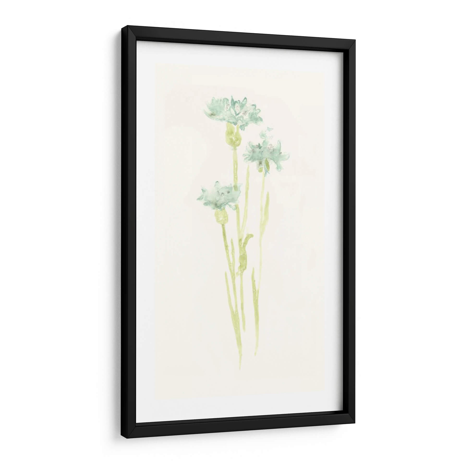 Sumérgete en la delicadeza y la serenidad con "Estudio De Aciano Iv", una obra de arte que captura la efímera belleza de la naturaleza. Este cuadro decorativo, inspirado en el estilo acuarela de June Erica Vess, presenta delicadas flores de aciano en tonos suaves de verde azulado y sutiles toques de verde menta sobre un fondo texturizado de color crema. La técnica de acuarela aporta una ligereza etérea a las formas florales, permitiendo que los colores se mezclen y fluyan con una gracia natural. La composición se centra en tres tallos esbeltos que se elevan, cada uno coronado por una flor de aciano en diferentes etapas de apertura, evocando una sensación de crecimiento y vitalidad discreta. La atmósfera general es de calma y tranquilidad, perfecta para crear un oasis de paz en tu hogar u oficina. Ideal para espacios que buscan un toque de frescura botánica y elegancia minimalista, este cuadro es una invitación a la contemplación y al disfrute de la belleza sutil del mundo natural. Aporta un aire de sofisticación botánica a cualquier habitación, desde un dormitorio sereno hasta un estudio o una sala de estar moderna que busque un acento orgánico y relajante.