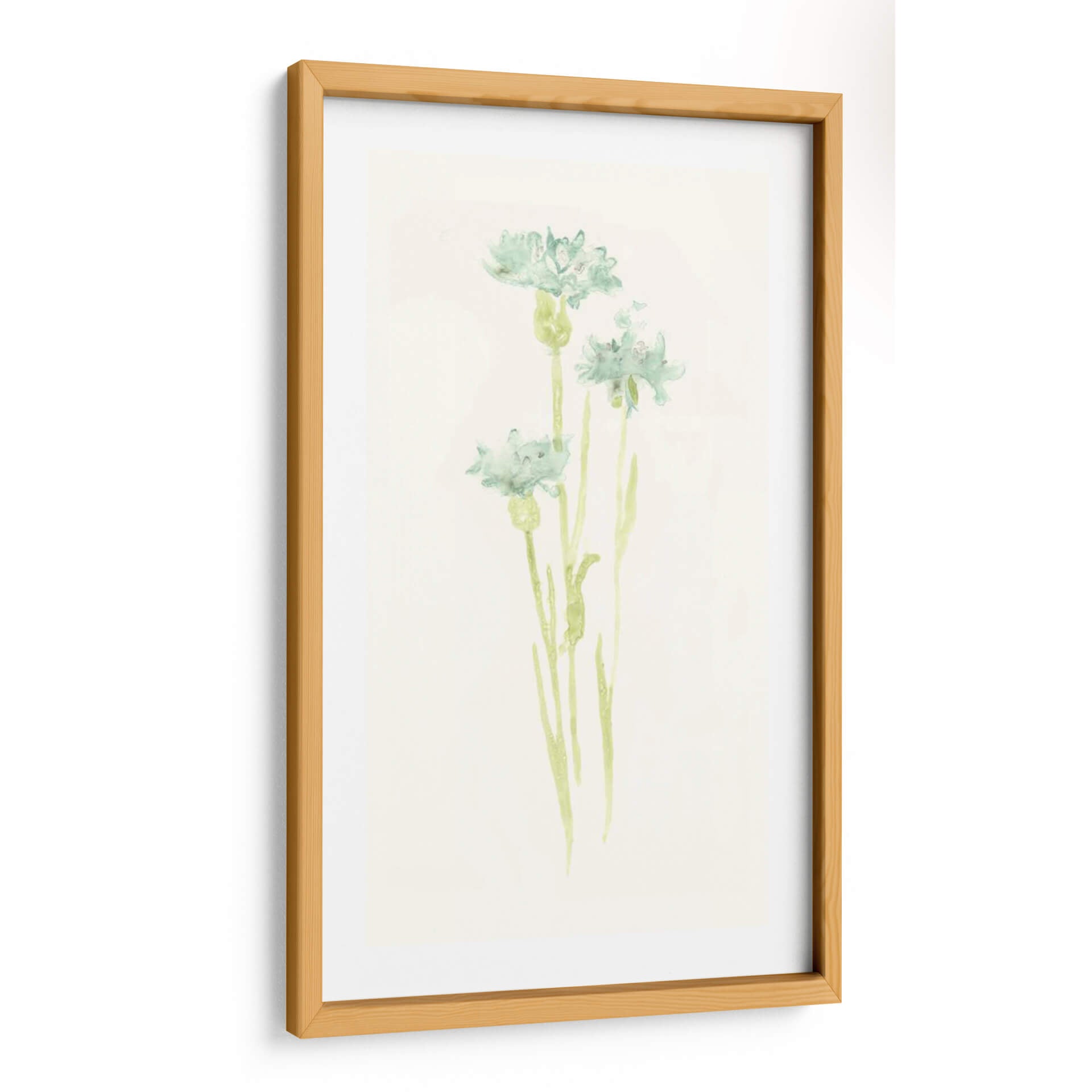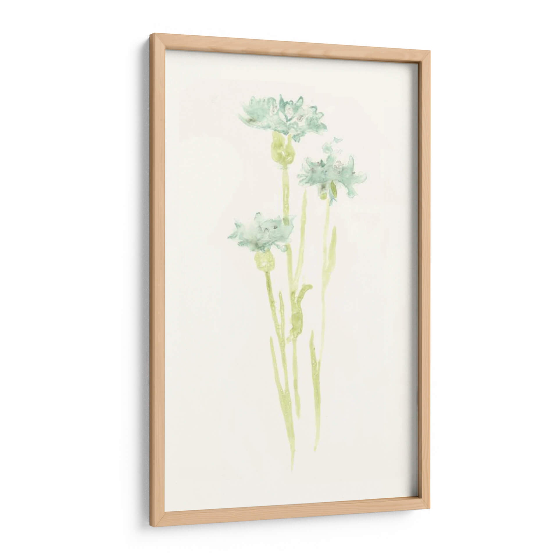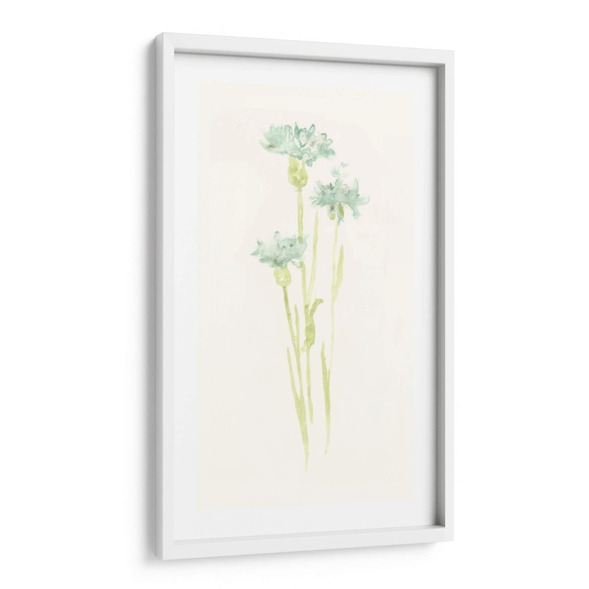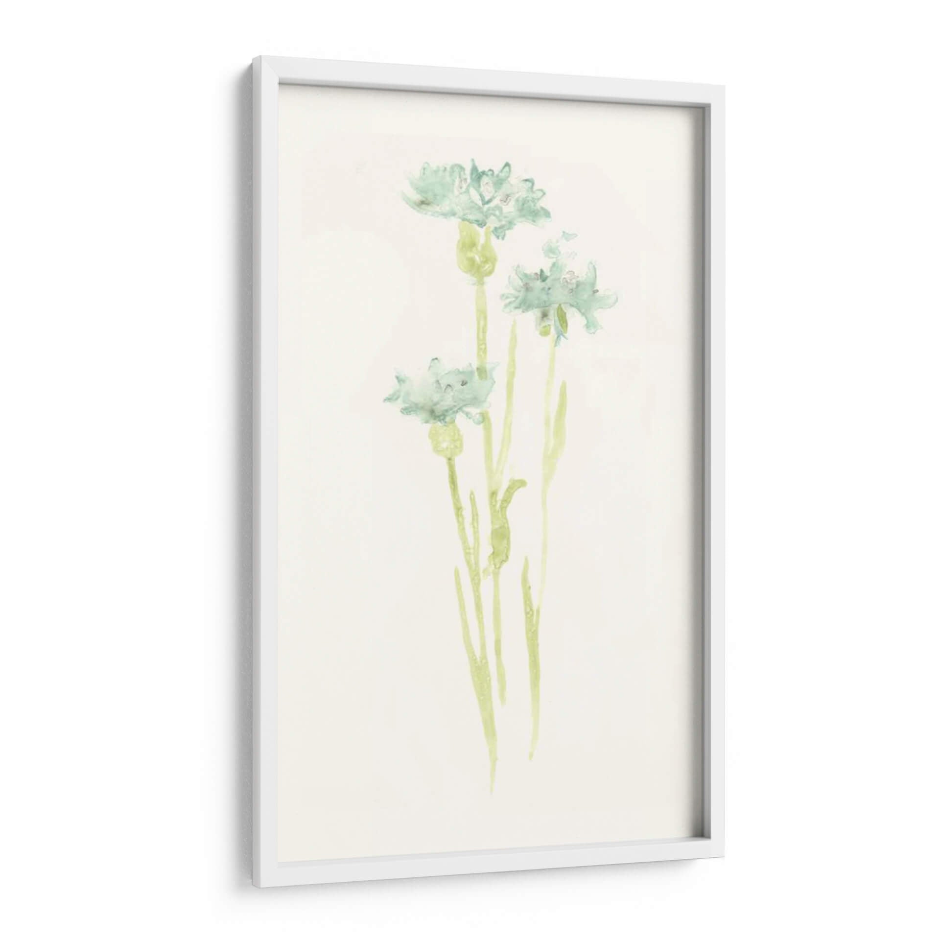 Sumérgete en la delicadeza y la serenidad con "Estudio De Aciano Iv", una obra de arte que captura la efímera belleza de la naturaleza. Este cuadro decorativo, inspirado en el estilo acuarela de June Erica Vess, presenta delicadas flores de aciano en tonos suaves de verde azulado y sutiles toques de verde menta sobre un fondo texturizado de color crema. La técnica de acuarela aporta una ligereza etérea a las formas florales, permitiendo que los colores se mezclen y fluyan con una gracia natural. La composición se centra en tres tallos esbeltos que se elevan, cada uno coronado por una flor de aciano en diferentes etapas de apertura, evocando una sensación de crecimiento y vitalidad discreta. La atmósfera general es de calma y tranquilidad, perfecta para crear un oasis de paz en tu hogar u oficina. Ideal para espacios que buscan un toque de frescura botánica y elegancia minimalista, este cuadro es una invitación a la contemplación y al disfrute de la belleza sutil del mundo natural. Aporta un aire de sofisticación botánica a cualquier habitación, desde un dormitorio sereno hasta un estudio o una sala de estar moderna que busque un acento orgánico y relajante.