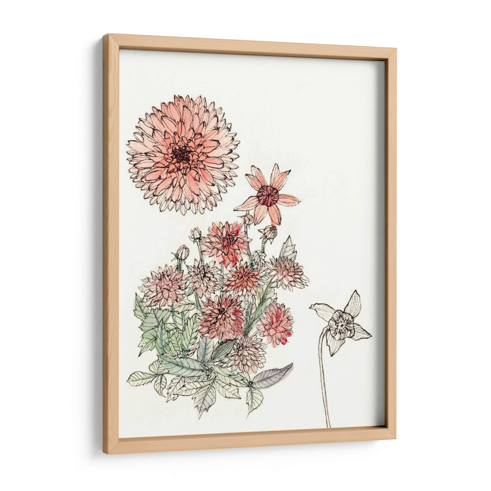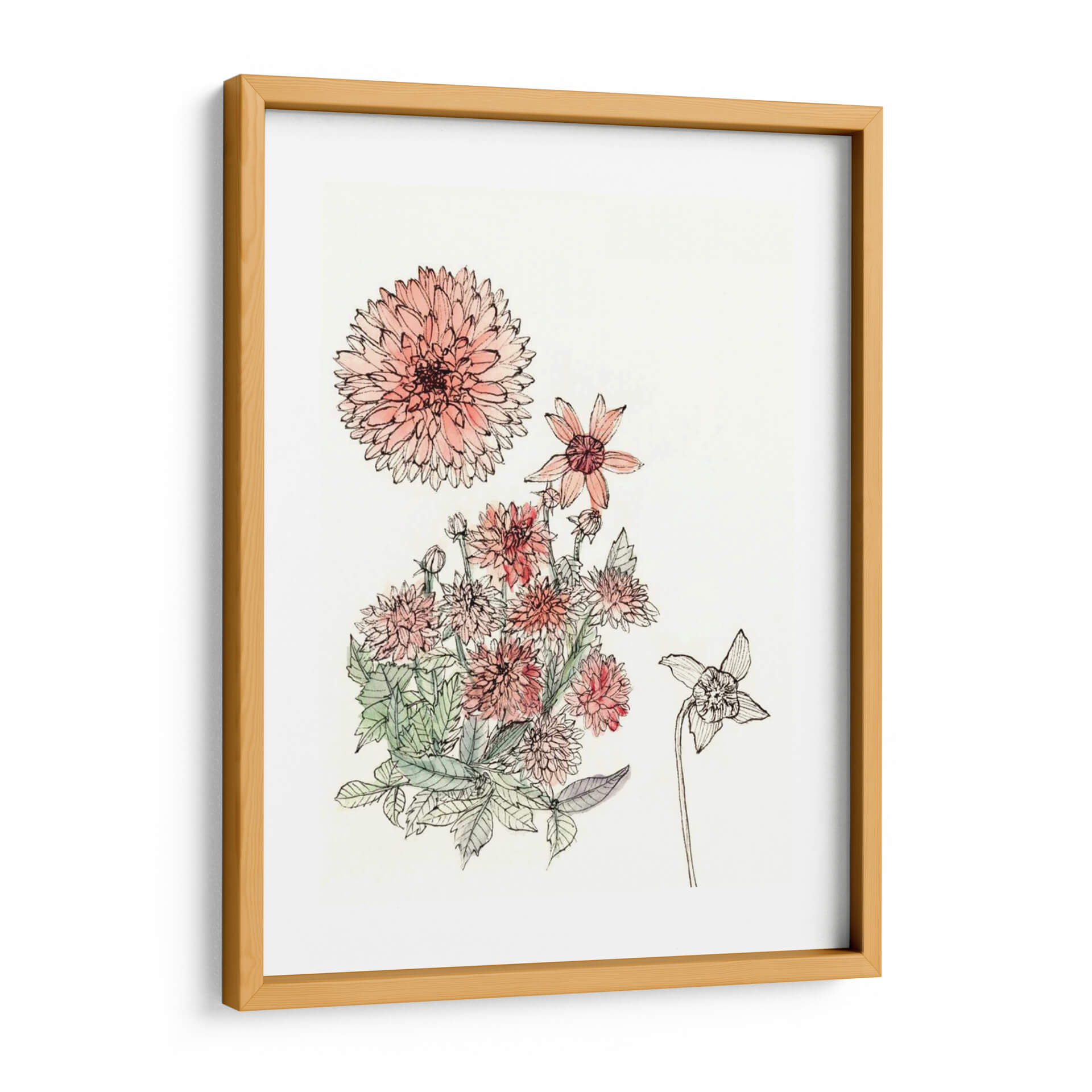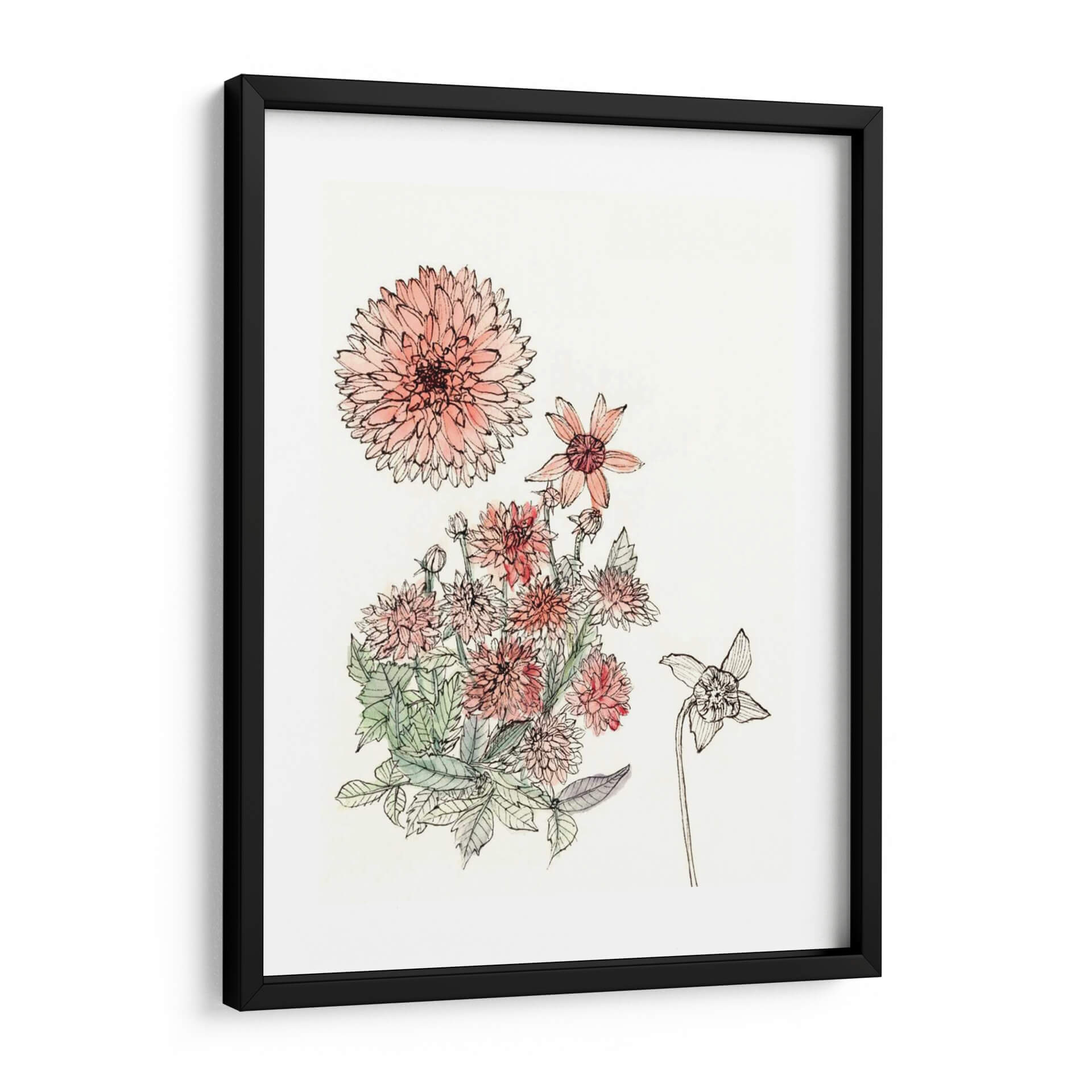 Embellece tu hogar con el encanto botánico del cuadro decorativo "Estudio De Dalia" de Melissa Wang. Esta obra captura la delicadeza de las dalias en flor con una técnica que combina el trazo firme del dibujo a tinta con sutiles toques de acuarela en tonos coral y rosados, creando un contraste armonioso con el fondo neutro. La composición presenta un exuberante ramo de dalias en diferentes etapas de floración, junto a un solitario narciso dibujado con trazos finos y elegantes. La paleta de colores suaves evoca una sensación de calma y frescura, ideal para espacios que buscan un toque de naturaleza y serenidad. El estilo, que fusiona lo clásico de la ilustración botánica con un aire contemporáneo, lo hace perfecto para salas de estar, dormitorios o incluso oficinas, añadiendo un punto focal sofisticado y lleno de vida. Imagina cómo este cuadro decorativo transformará tu ambiente, aportando una elegancia atemporal y una conexión con la belleza efímera de las flores. Es una pieza versátil que complementa tanto decoraciones modernas como rústicas, aportando un toque de arte refinado a cualquier pared.