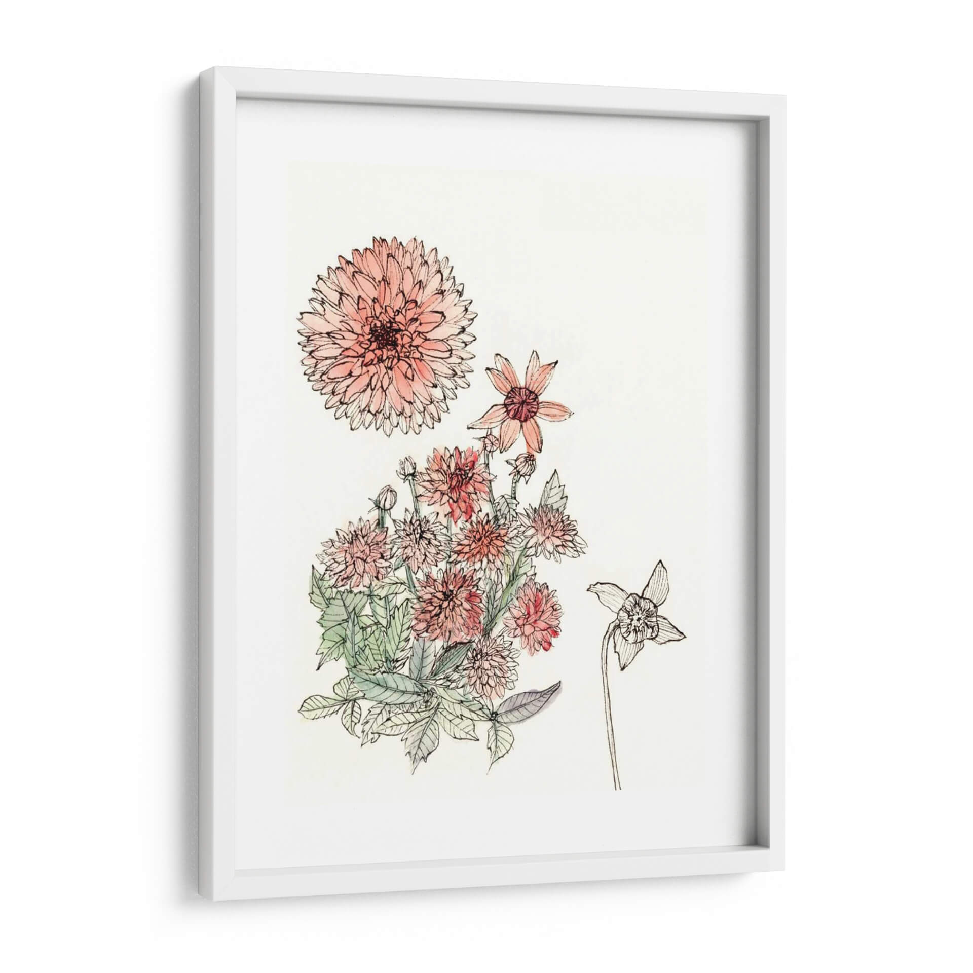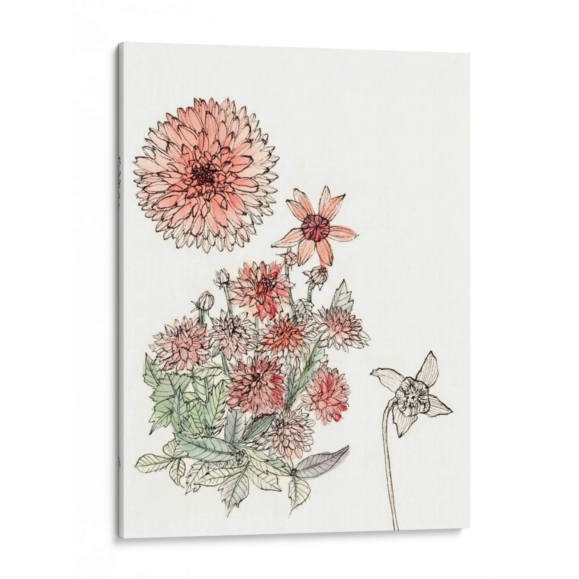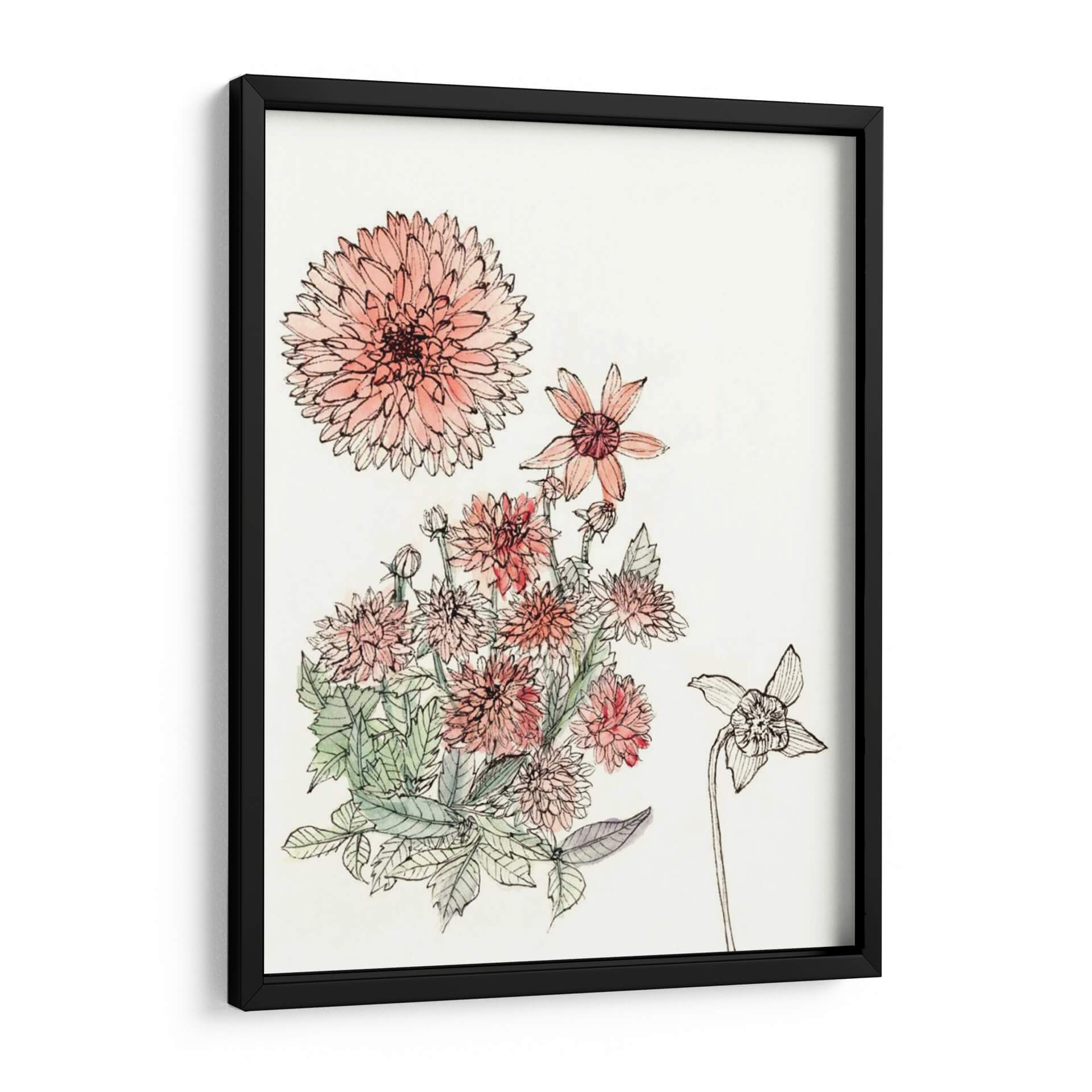 Embellece tu hogar con el encanto botánico del cuadro decorativo "Estudio De Dalia" de Melissa Wang. Esta obra captura la delicadeza de las dalias en flor con una técnica que combina el trazo firme del dibujo a tinta con sutiles toques de acuarela en tonos coral y rosados, creando un contraste armonioso con el fondo neutro. La composición presenta un exuberante ramo de dalias en diferentes etapas de floración, junto a un solitario narciso dibujado con trazos finos y elegantes. La paleta de colores suaves evoca una sensación de calma y frescura, ideal para espacios que buscan un toque de naturaleza y serenidad. El estilo, que fusiona lo clásico de la ilustración botánica con un aire contemporáneo, lo hace perfecto para salas de estar, dormitorios o incluso oficinas, añadiendo un punto focal sofisticado y lleno de vida. Imagina cómo este cuadro decorativo transformará tu ambiente, aportando una elegancia atemporal y una conexión con la belleza efímera de las flores. Es una pieza versátil que complementa tanto decoraciones modernas como rústicas, aportando un toque de arte refinado a cualquier pared.