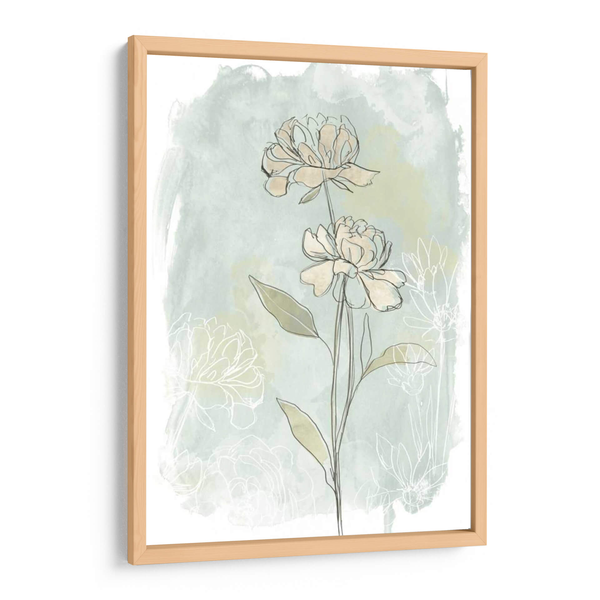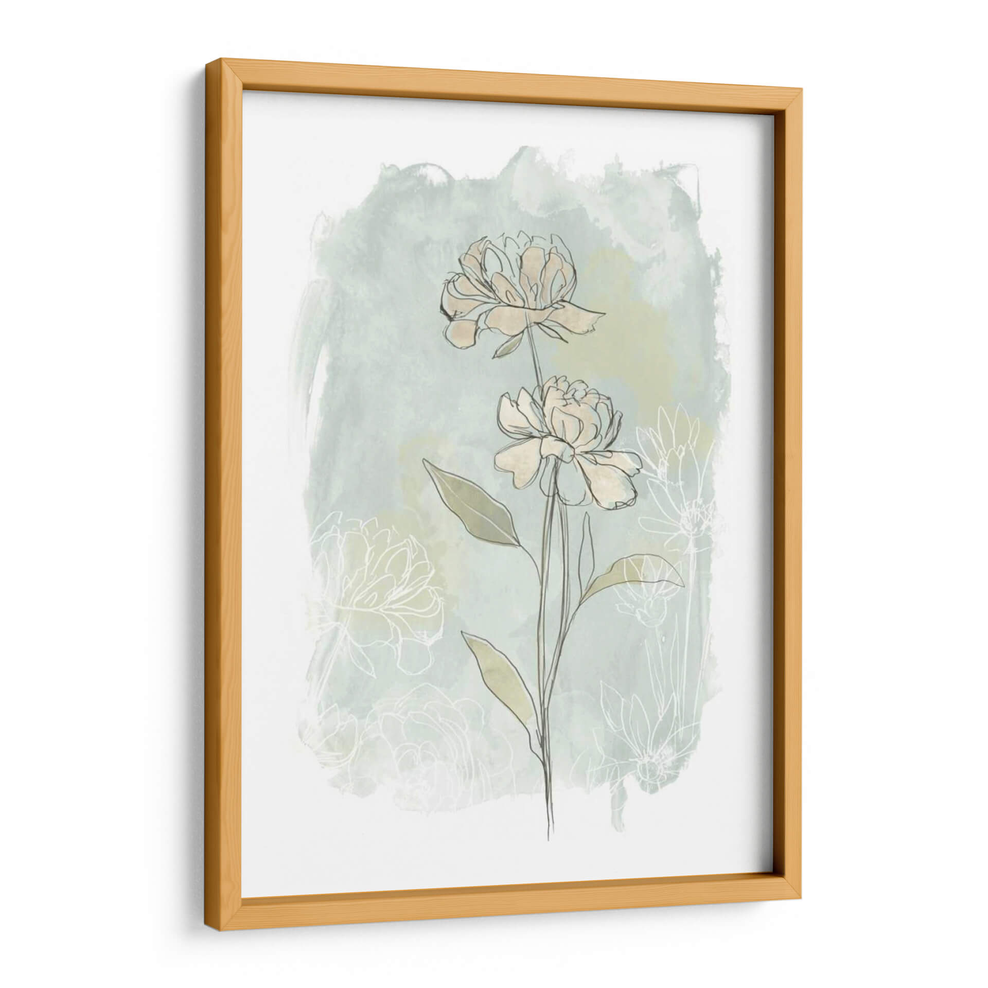 Transforma tu espacio con la delicada belleza del cuadro decorativo "Estudio De Flores De Piedra II" de June Erica Vess. Esta obra de arte evoca una sensación de serenidad y sofisticación a través de su composición minimalista y su paleta de colores suaves. Las líneas finas y elegantes delinean dos capullos de flores en tonos crema, contrastando sutilmente con un fondo de acuarela en tonos verde menta y verde pálido, que simula un jardín etéreo y brumoso. Detrás de las flores principales, se vislumbran contornos tenues de otras flores, añadiendo profundidad y un aire de misterio contemplativo. El estilo artístico combina elementos botánicos con una abstracción lírica, creando una pieza versátil que complementa tanto la decoración moderna como la clásica. Ideal para añadir un toque de naturaleza serena a tu sala de estar, dormitorio o estudio, este cuadro decorativo es una invitación a la calma y la reflexión. Su diseño sencillo pero cautivador lo convierte en un punto focal elegante que aporta luz y tranquilidad a cualquier ambiente, resonando con quienes buscan arte que inspire paz y belleza en su hogar u oficina.