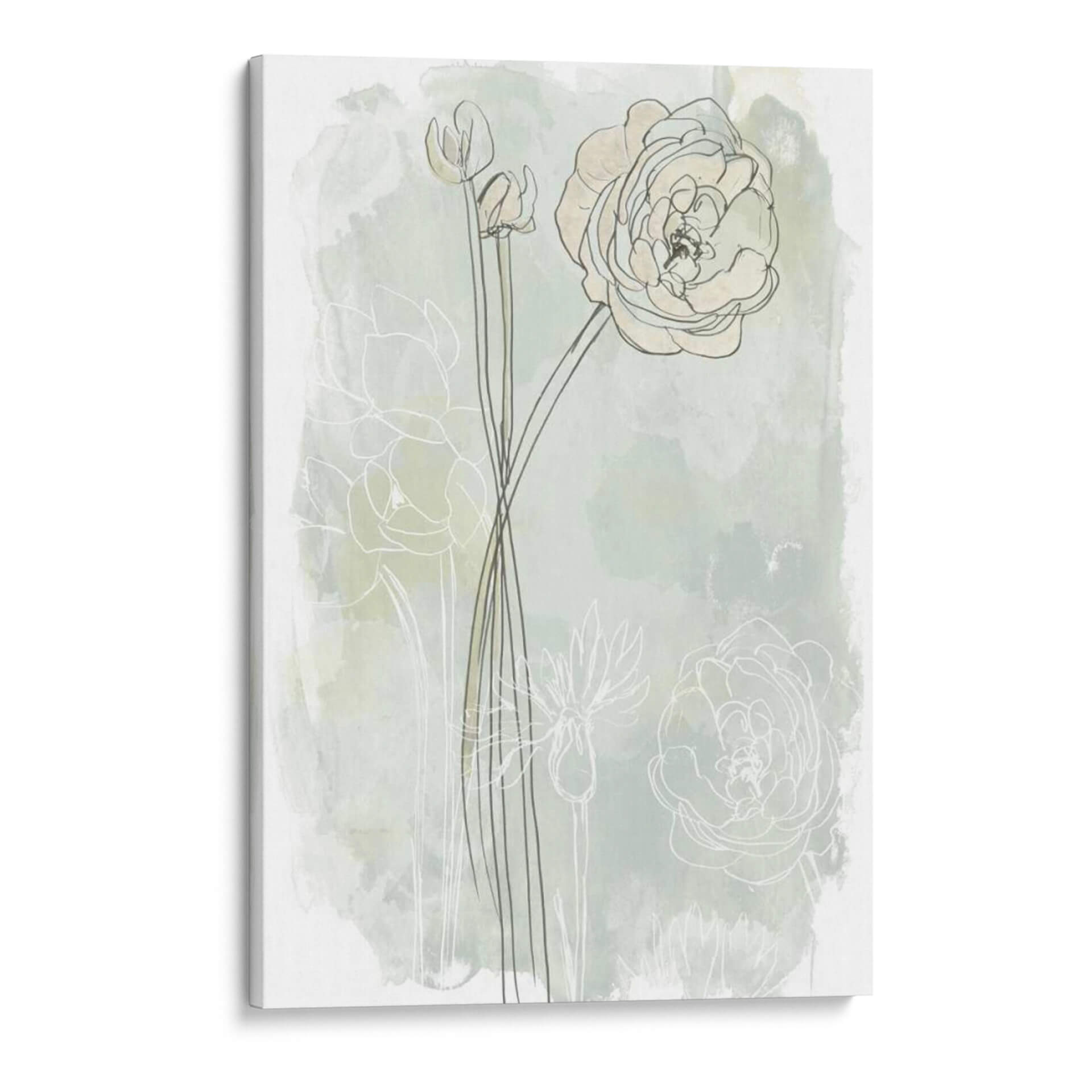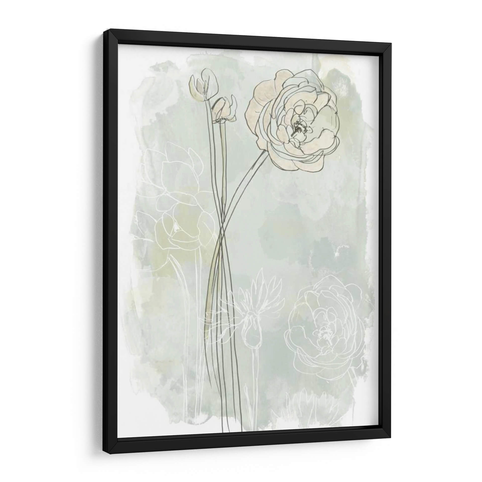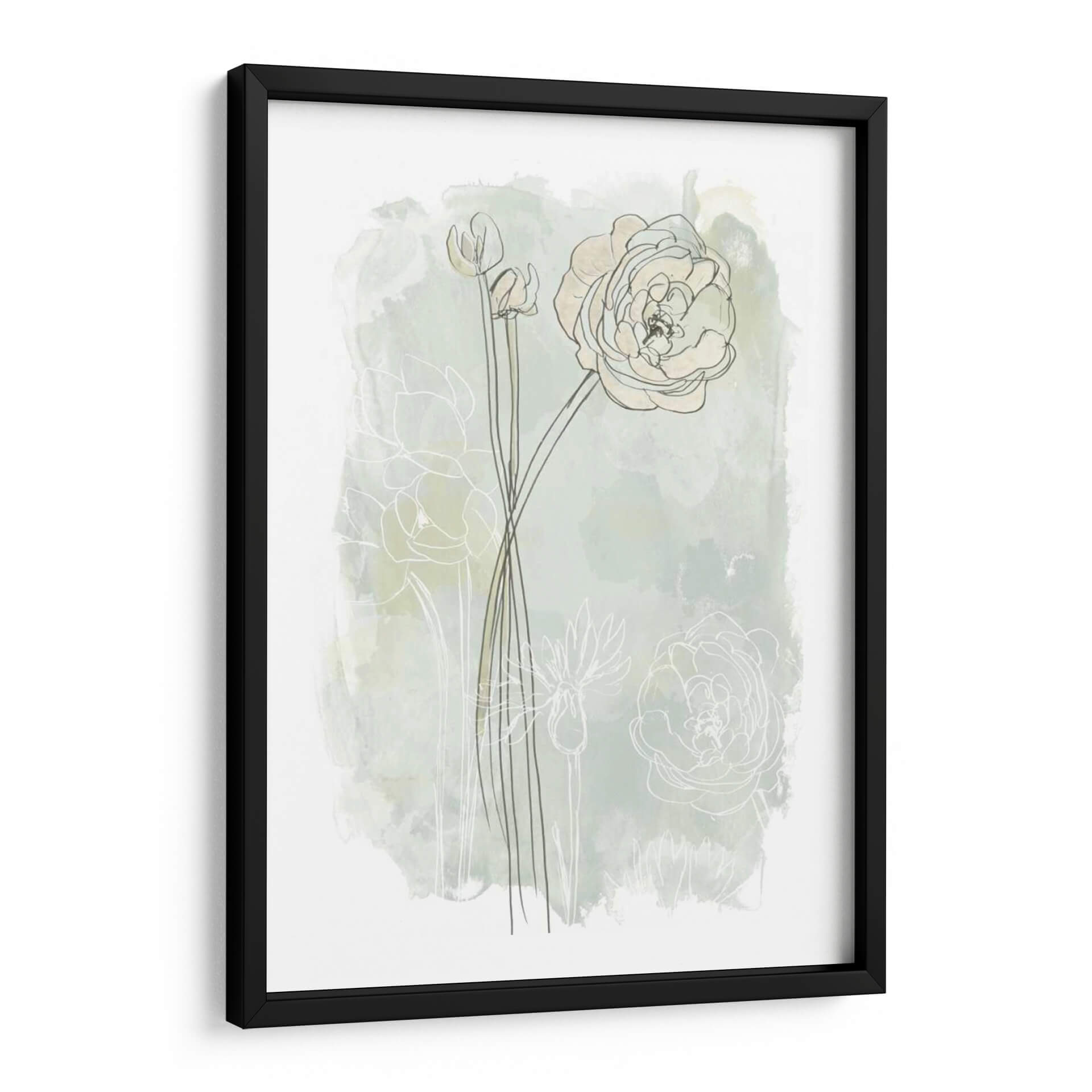 Sumérgete en la delicadeza botánica de 'Estudio De Flores De Piedra Iii', una obra de arte que captura la esencia etérea de las flores con un enfoque contemporáneo. La pieza presenta trazos finos y lineales de capullos y flores abiertas, delineados sobre un fondo suavemente texturizado que evoca acuarelas sutiles en tonos menta y crema. La composición se centra en la elegancia de las formas florales, con una flor principal prominentemente detallada y otros elementos botánicos sugeridos, creando una sensación de profundidad y movimiento delicado. Los colores pastel y las líneas limpias infunden una atmósfera de calma y serenidad, perfecta para espacios que buscan un toque de naturaleza refinada y un aire de tranquilidad. Este cuadro decorativo es ideal para añadir un punto de interés visual suave a dormitorios, salas de estar o estudios, fusionando el arte contemporáneo con la belleza atemporal de la flora. Su estilo minimalista y evocador lo convierte en una adición versátil a cualquier decoración, desde la moderna hasta la escandinava, aportando una sensación de frescura y sofisticación.