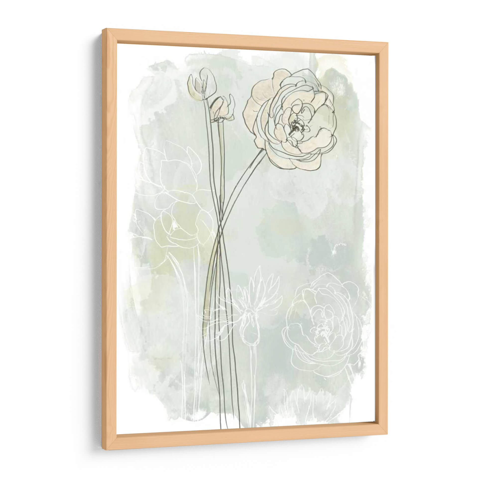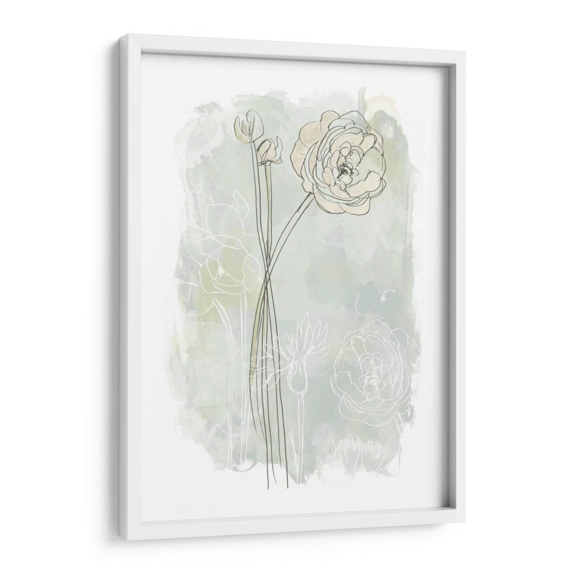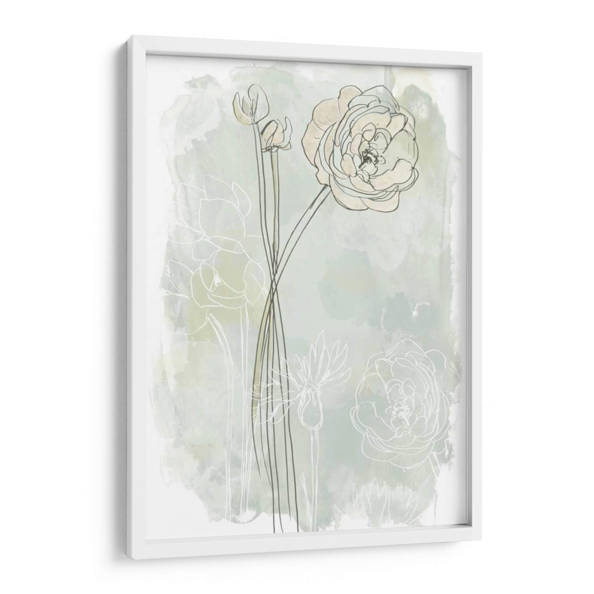 Sumérgete en la delicadeza botánica de 'Estudio De Flores De Piedra Iii', una obra de arte que captura la esencia etérea de las flores con un enfoque contemporáneo. La pieza presenta trazos finos y lineales de capullos y flores abiertas, delineados sobre un fondo suavemente texturizado que evoca acuarelas sutiles en tonos menta y crema. La composición se centra en la elegancia de las formas florales, con una flor principal prominentemente detallada y otros elementos botánicos sugeridos, creando una sensación de profundidad y movimiento delicado. Los colores pastel y las líneas limpias infunden una atmósfera de calma y serenidad, perfecta para espacios que buscan un toque de naturaleza refinada y un aire de tranquilidad. Este cuadro decorativo es ideal para añadir un punto de interés visual suave a dormitorios, salas de estar o estudios, fusionando el arte contemporáneo con la belleza atemporal de la flora. Su estilo minimalista y evocador lo convierte en una adición versátil a cualquier decoración, desde la moderna hasta la escandinava, aportando una sensación de frescura y sofisticación.