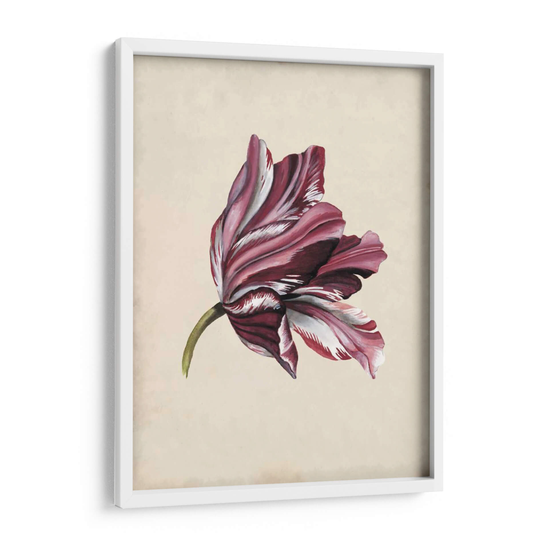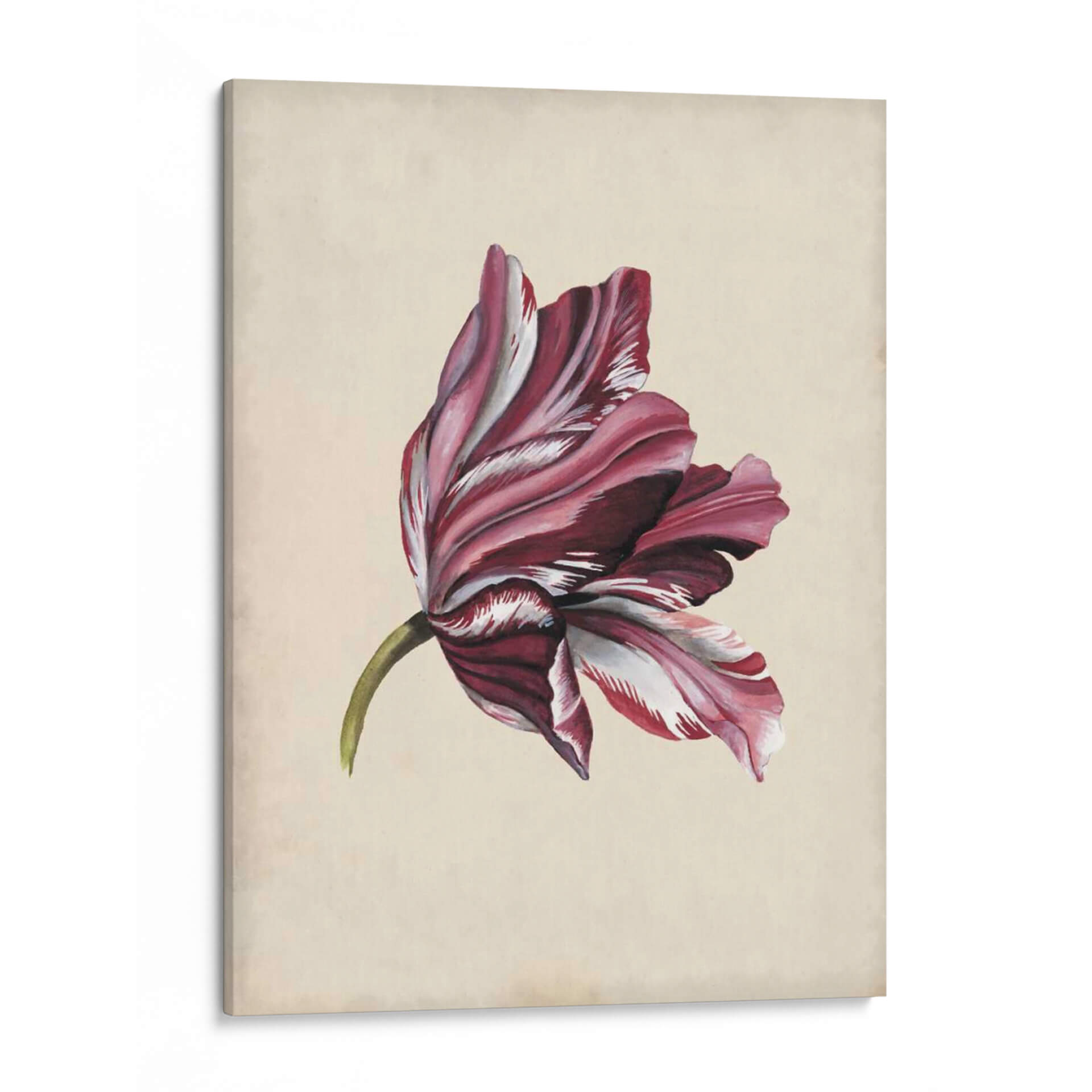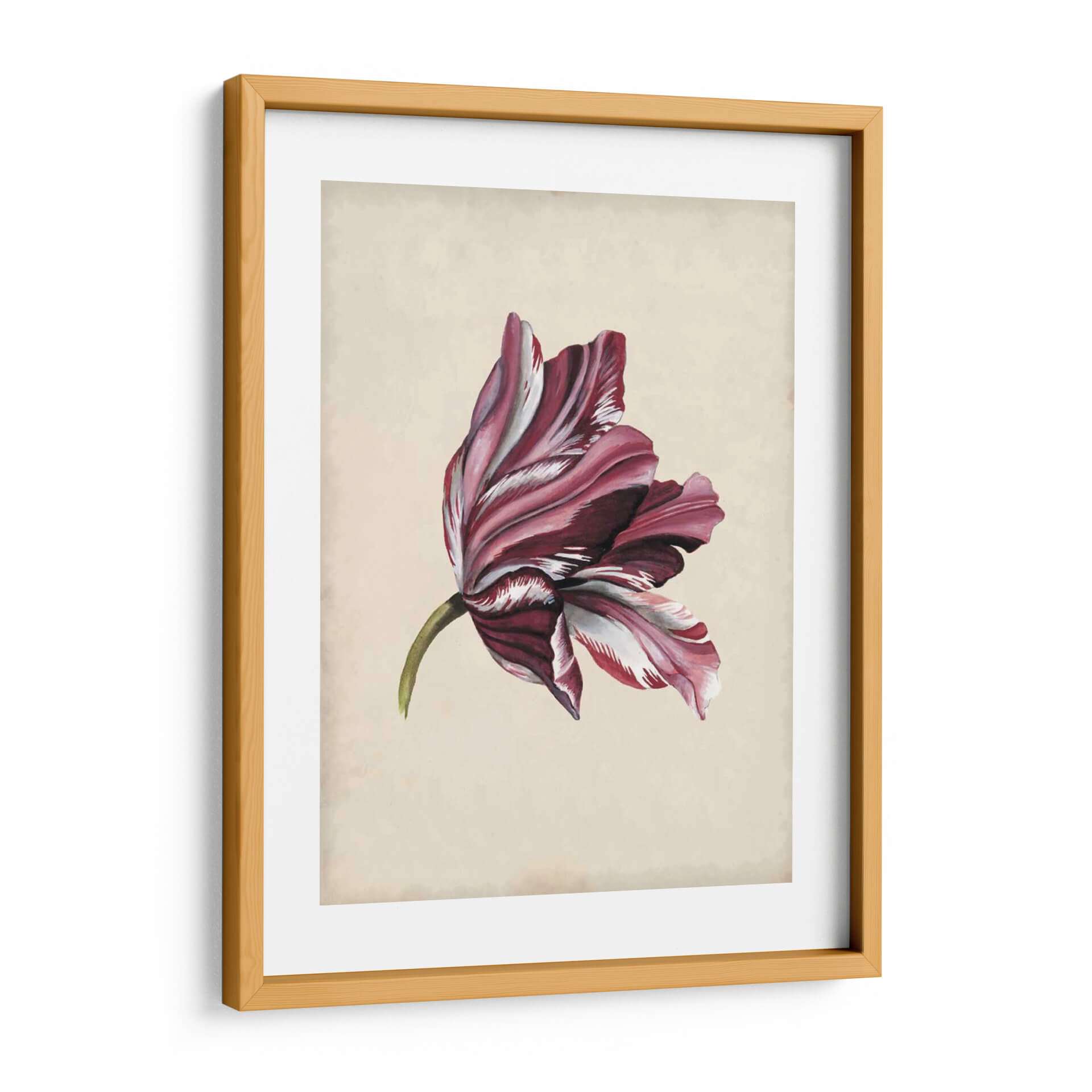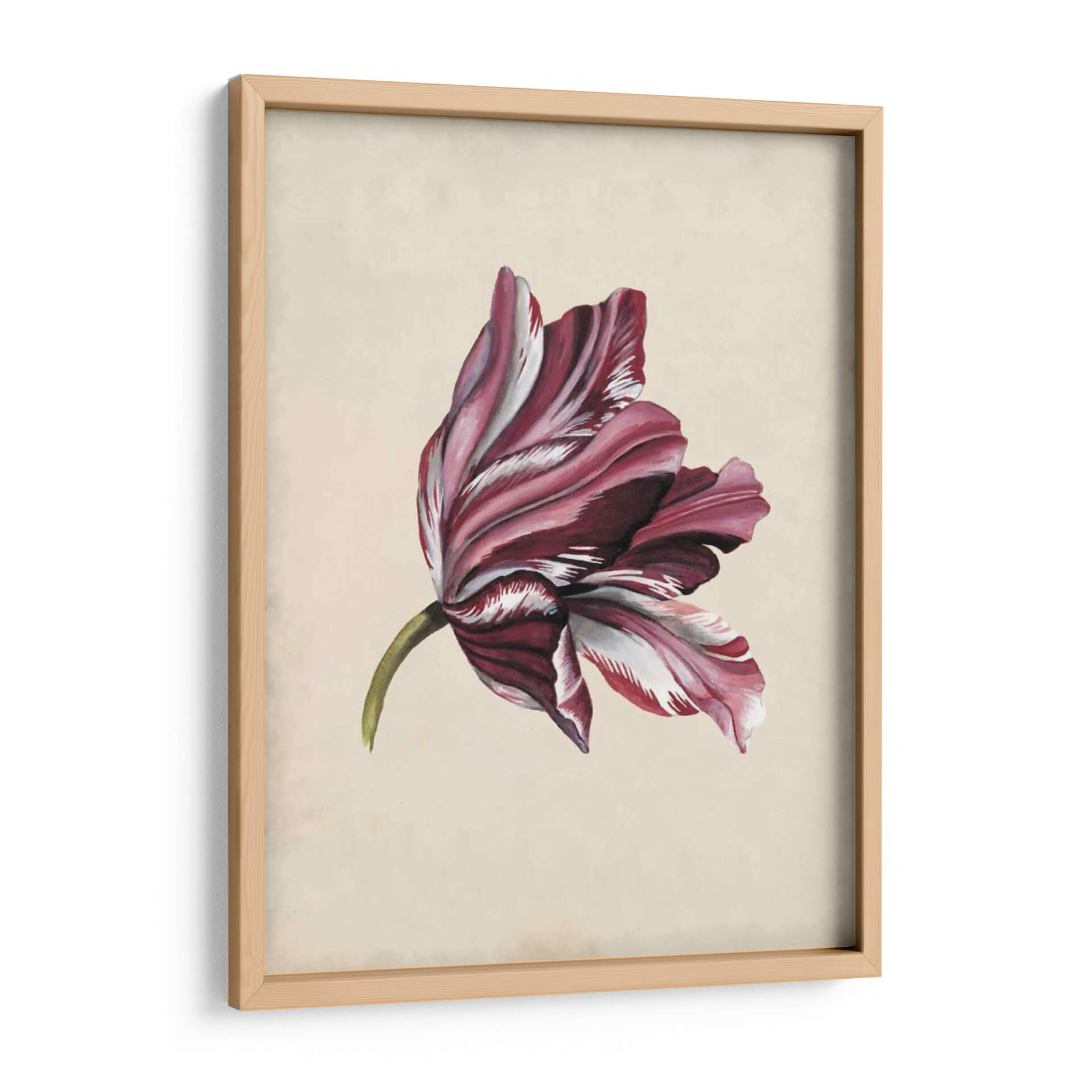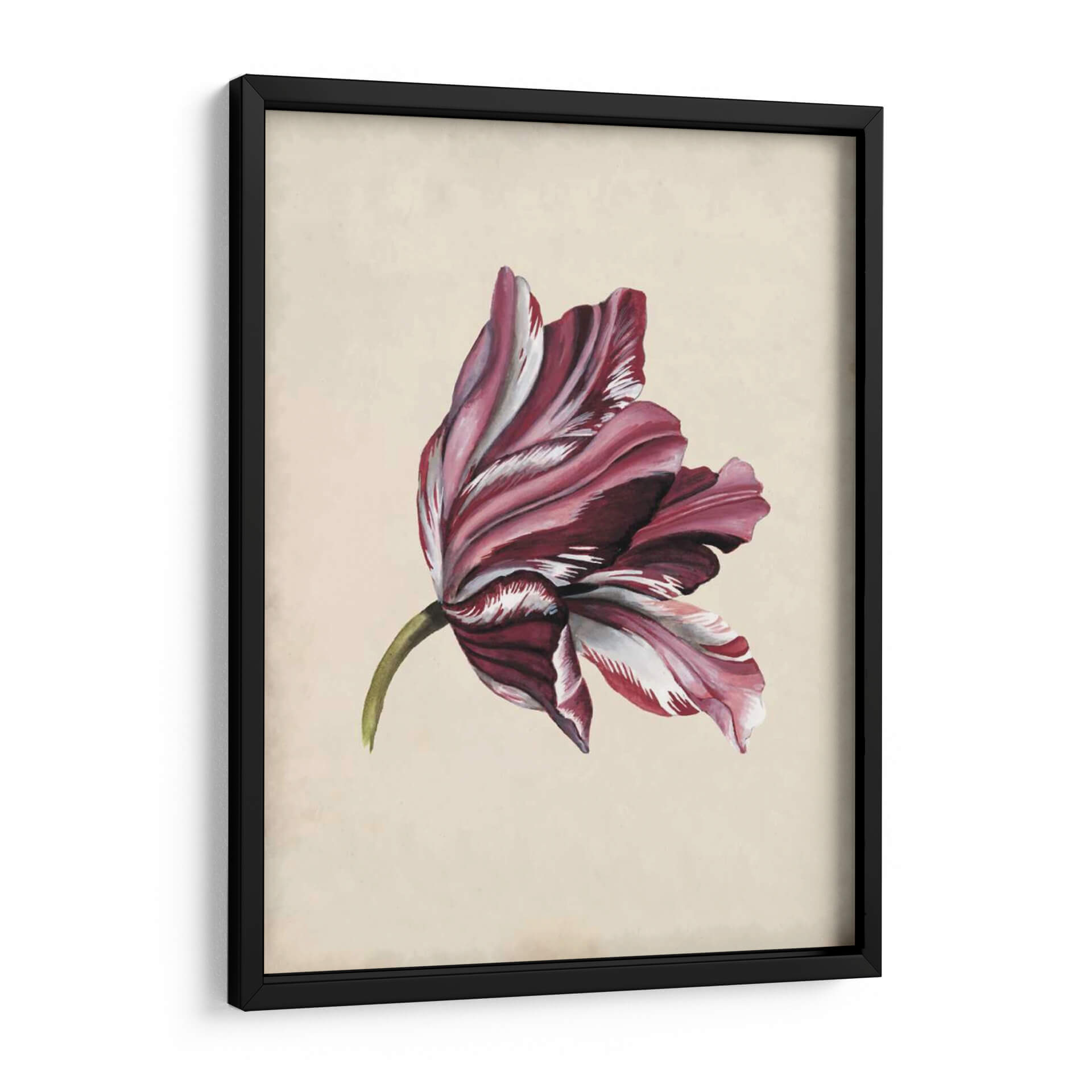 Captura la belleza atemporal de la naturaleza con este exquisito cuadro decorativo "Estudio De Tulipán Antiguo Iii" de Naomi McCavitt. La obra presenta un detallado estudio botánico de un tulipán, cuyas pétalos vibrantes en tonos de borgoña y blanco se despliegan con una elegancia sutil. La técnica de acuarela o gouache (interpretada) resalta la delicadeza de las formas y la profundidad del color, creando una atmósfera de sofisticación y tranquilidad. El fondo neutro, con un ligero toque envejecido, permite que el tulipán sea el protagonista indiscutible, aportando un punto focal de interés natural y artístico a cualquier estancia. Este cuadro decorativo es perfecto para añadir un toque de color y clasicismo a tu sala de estar, dormitorio o estudio. Su estilo evoca las ilustraciones botánicas clásicas, pero con una sensibilidad contemporánea que lo hace versátil para una amplia gama de decoraciones, desde lo tradicional hasta lo moderno. Integra esta pieza en tu hogar y permite que su encanto botánico y su refinada paleta cromática inspiren serenidad y apreciación por la belleza floral. Es una elección ideal para amantes de las flores, el arte botánico y quienes buscan añadir una pieza de carácter y elegancia discreta a su ambiente.