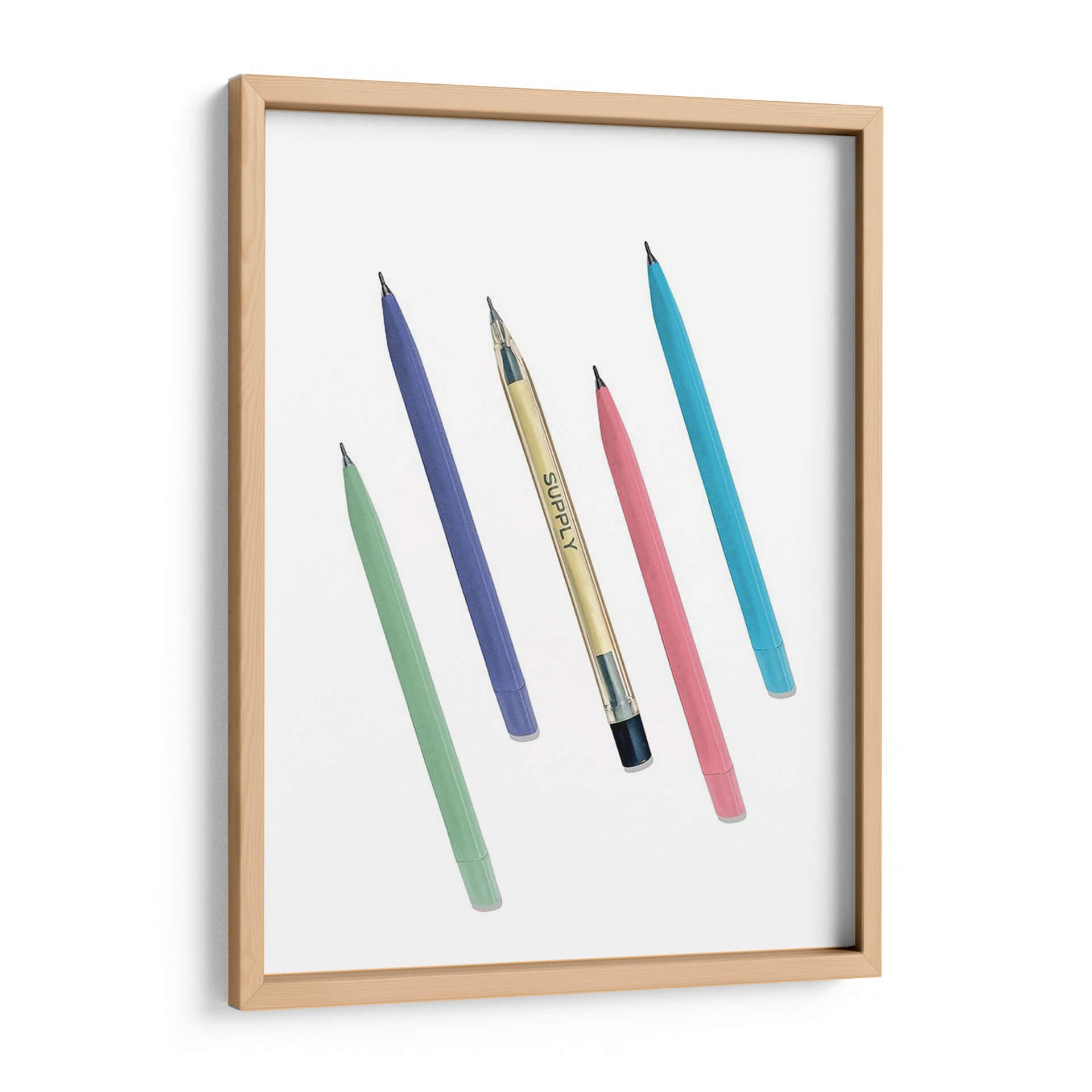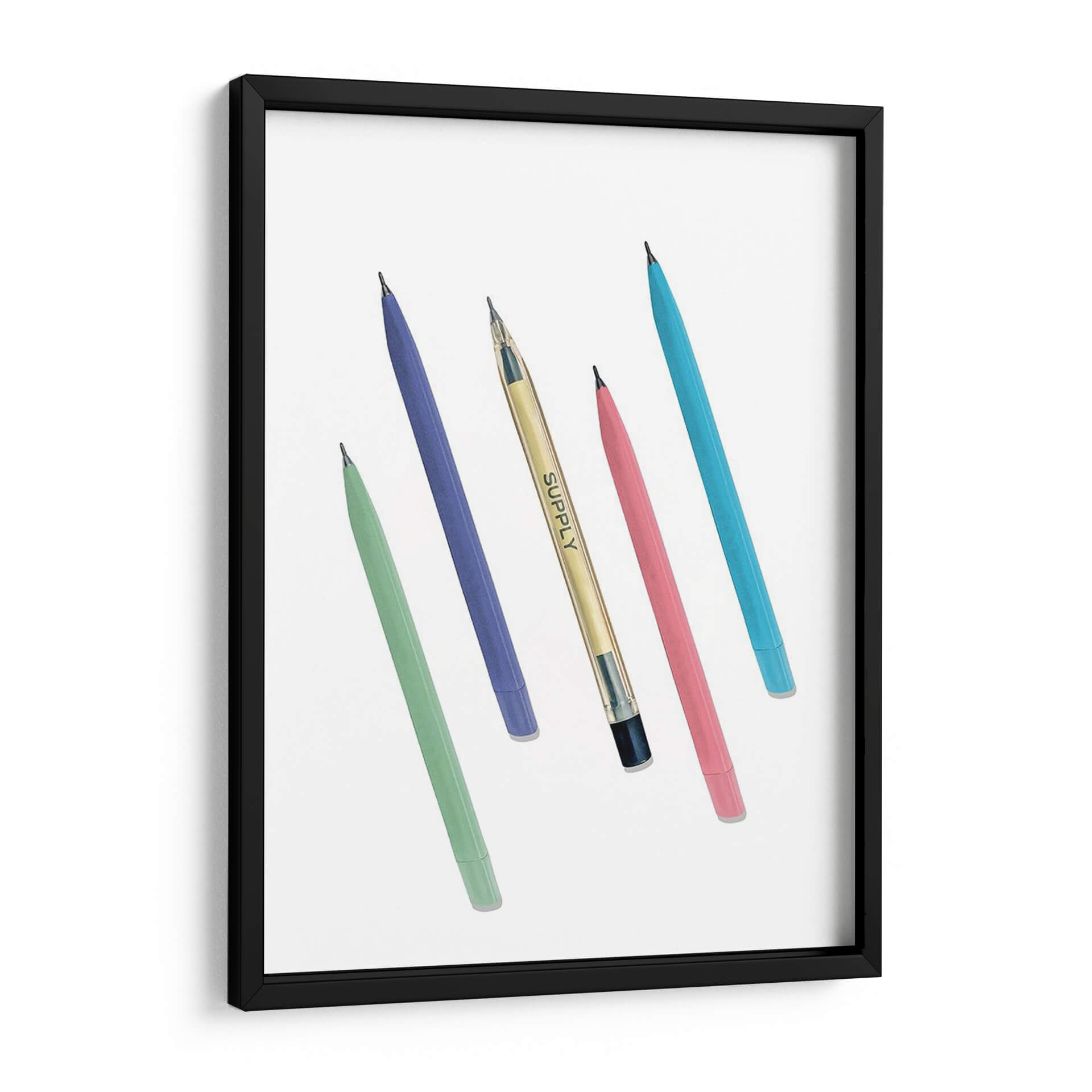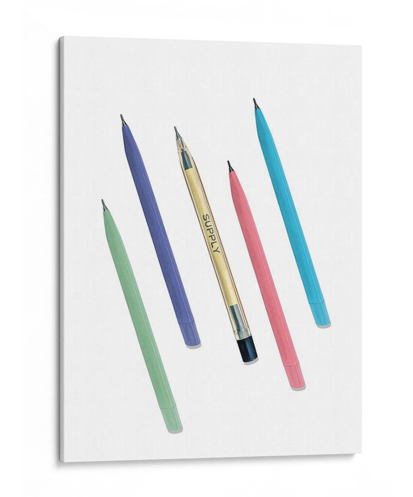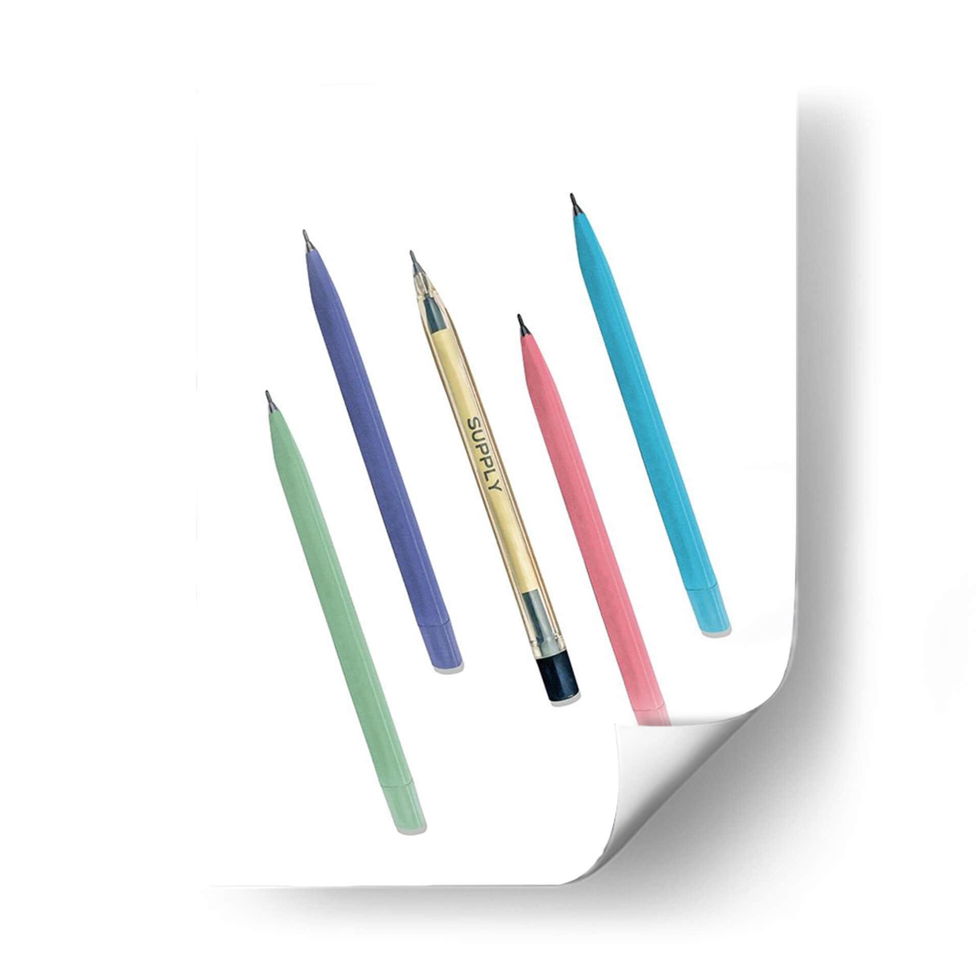 Adéntrate en el mundo de la creatividad y la organización con "Estudio Escolar III", una obra de arte contemporánea que captura la esencia de las herramientas de escritura. Este cuadro decorativo presenta un arreglo dinámico de cinco lápices y un portaminas, cada uno con colores vibrantes y líneas limpias sobre un fondo blanco minimalista. Los tonos pastel de verde menta, azul sereno, rosa vibrante y morado profundo contrastan bellamente con el toque dorado y negro del portaminas central, que lleva la sutil inscripción "SUPPLY". La composición, con los objetos inclinados en diferentes ángulos, crea una sensación de movimiento y energía, invitando a la reflexión sobre el proceso creativo y la importancia de tener las herramientas adecuadas a mano. Ideal para estudios, oficinas, aulas o cualquier espacio que celebre el aprendizaje y la inspiración, este cuadro aportará un toque de estilo y funcionalidad. Su diseño limpio y moderno lo convierte en una pieza versátil que complementará decoraciones contemporáneas, minimalistas o eclécticas, añadiendo un toque de color y personalidad sin abrumar el ambiente. Transforma tu pared en un lienzo de ideas con este cautivador cuadro decorativo.