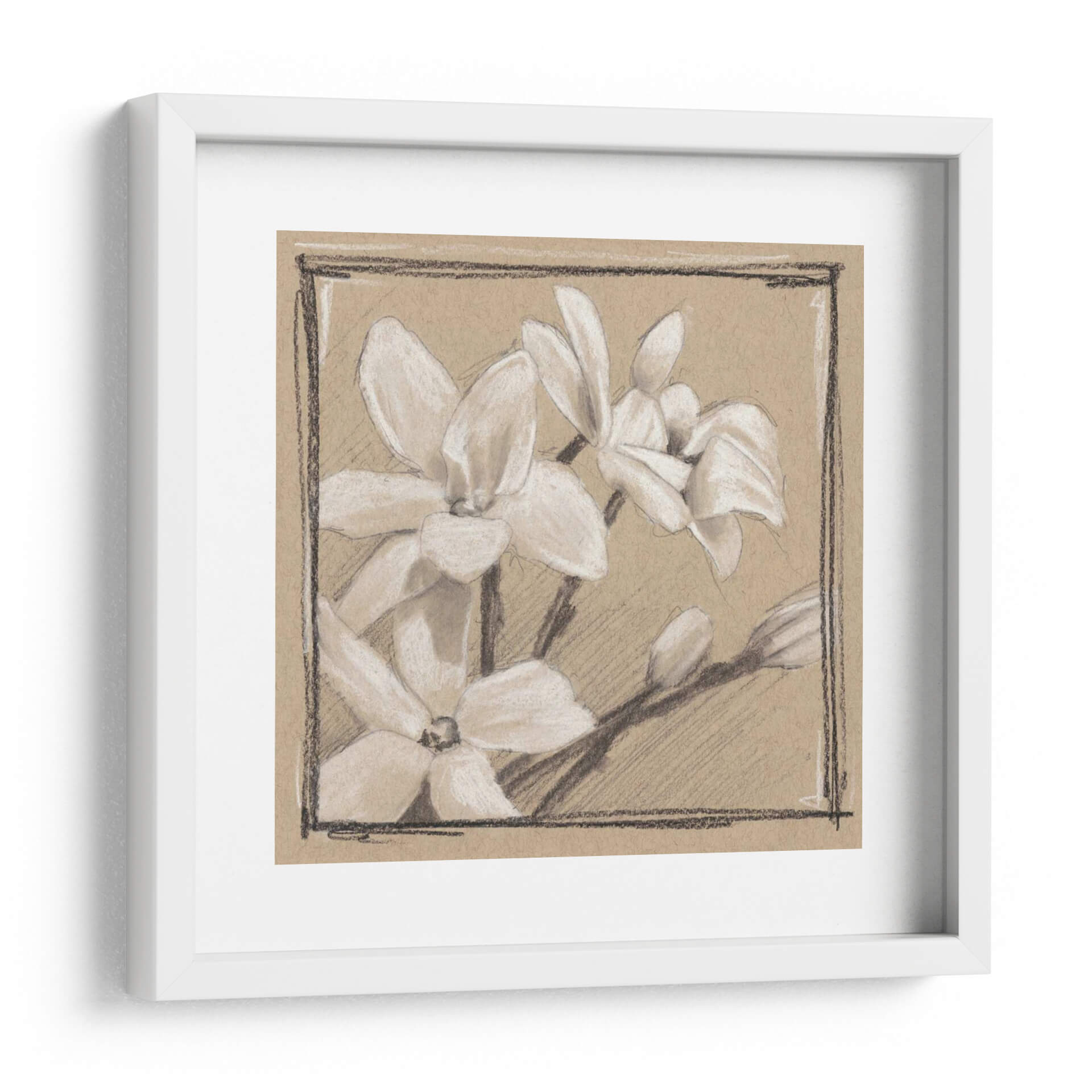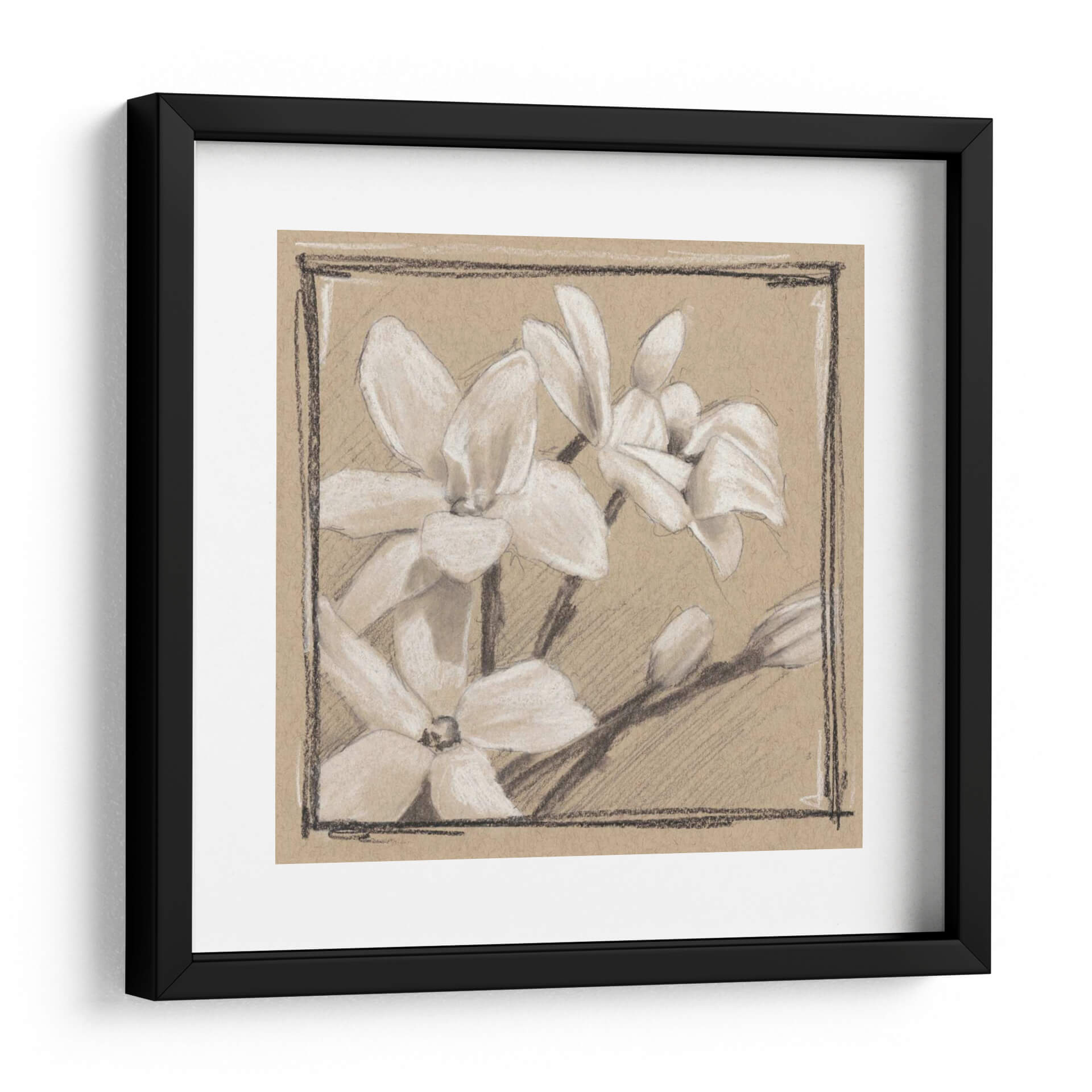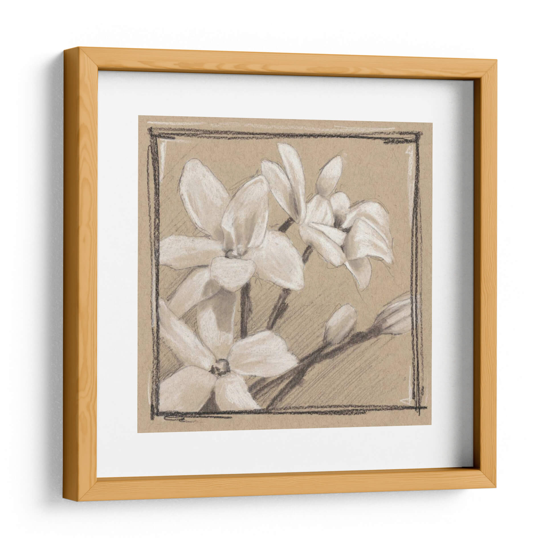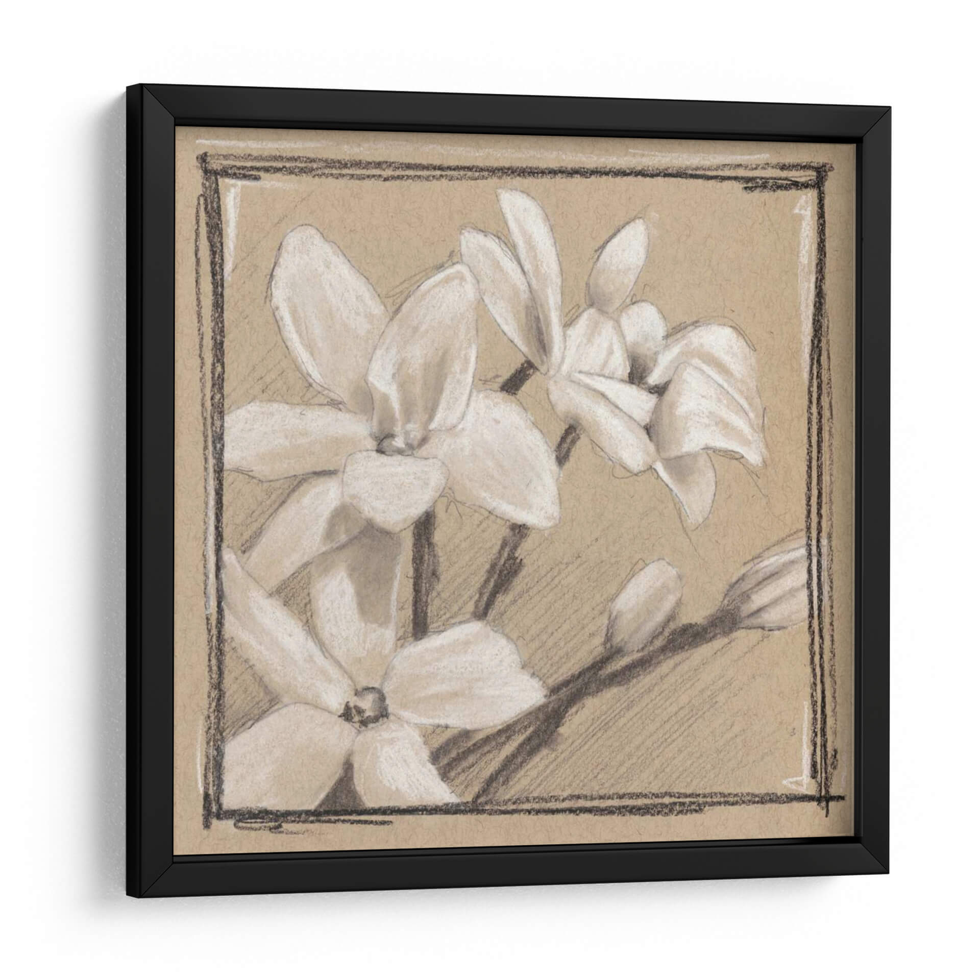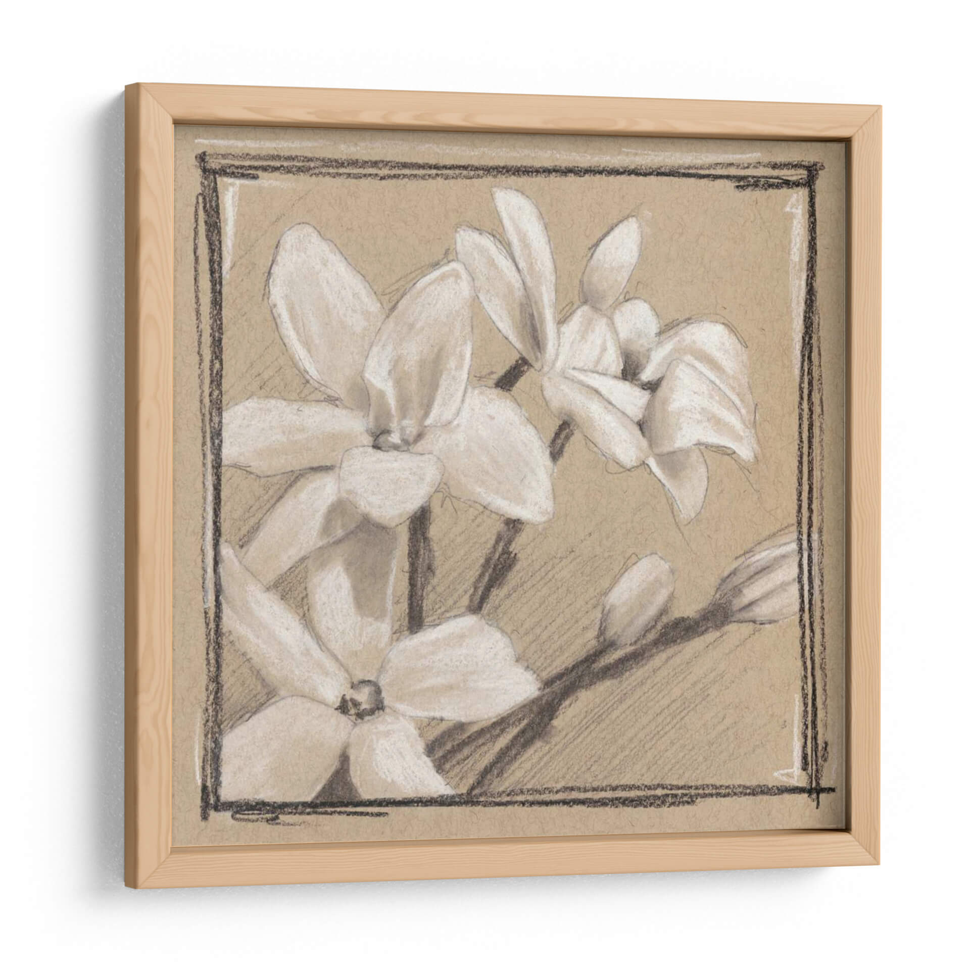 Descubre la delicadeza y la belleza atemporal de "Estudio Floral Blanco III" de Ethan Harper, una obra de arte que captura la esencia de la naturaleza con una elegancia sutil. Este cuadro decorativo presenta un estudio detallado de flores blancas, dibujadas con trazos suaves y expresivos sobre un fondo de tono tierra que realza su luminosidad. La paleta de colores se centra en contrastes sutiles de blanco y negro, creando una atmósfera de serenidad y sofisticación. La composición, enmarcada por un borde lineal rústico, dirige la mirada hacia la delicada forma de los pétalos y los capullos, invitando a la contemplación. La técnica empleada, reminiscentes del dibujo a lápiz y carboncillo, aporta una textura y profundidad únicas a la pieza, dotándola de un carácter artístico y artesanal. Este cuadro es ideal para añadir un toque de calma y elegancia a cualquier espacio, ya sea una sala de estar moderna, un dormitorio acogedor o una oficina que busque un respiro visual. Su estilo minimalista y su temática floral lo convierten en una opción versátil que complementará una amplia gama de decoraciones, desde las más contemporáneas hasta las más clásicas, aportando siempre un aire de refinamiento y conexión con la naturaleza.