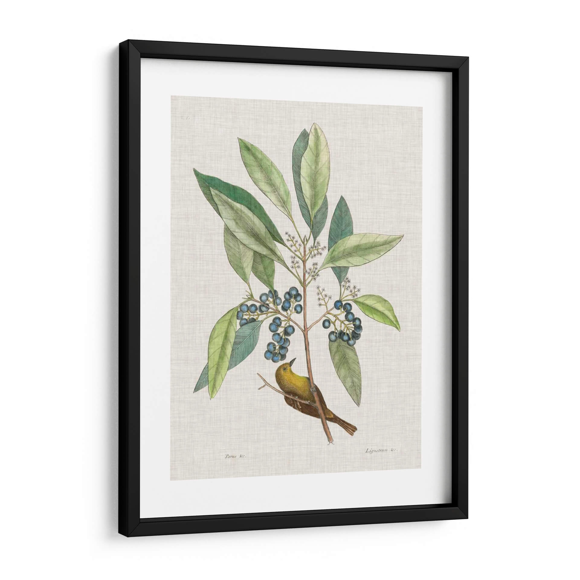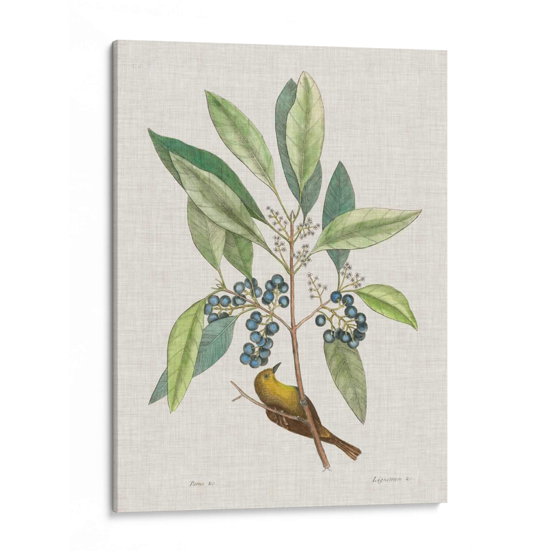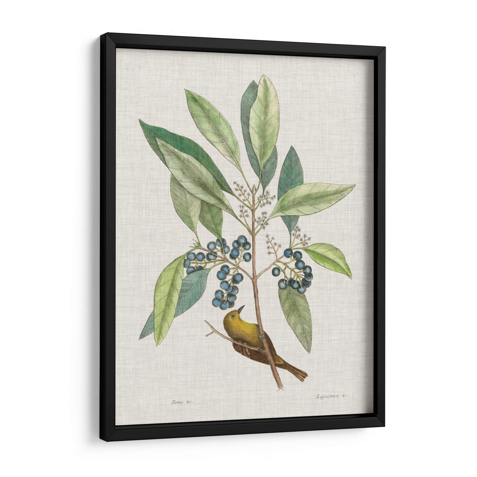 Sumérgete en la belleza atemporal de la naturaleza con "Estudios De La Naturaleza Iv", una obra de arte exquisita que captura la delicadeza de la flora y la fauna. Esta pieza, inspirada en las ilustraciones científicas clásicas, presenta un vibrante pájaro amarillo posado en una rama frondosa cargada de bayas azules. Los verdes profundos de las hojas contrastan armoniosamente con el ocre del ave y el azul intenso de los frutos, creando una paleta de colores rica y equilibrada. El estilo detallado y la composición centrada invitan a la contemplación, evocando una sensación de paz y conexión con el mundo natural. Es el cuadro decorativo perfecto para añadir un toque de elegancia orgánica a cualquier espacio, ya sea una sala de estar, un estudio o un dormitorio. Su diseño clásico y a la vez fresco lo convierte en una adición versátil para decoraciones que van desde lo tradicional hasta lo contemporáneo, aportando serenidad y un encanto natural a tu hogar. Descubre la maestría de Mark Catesby y transforma tus paredes con esta joya botánica y ornitológica.