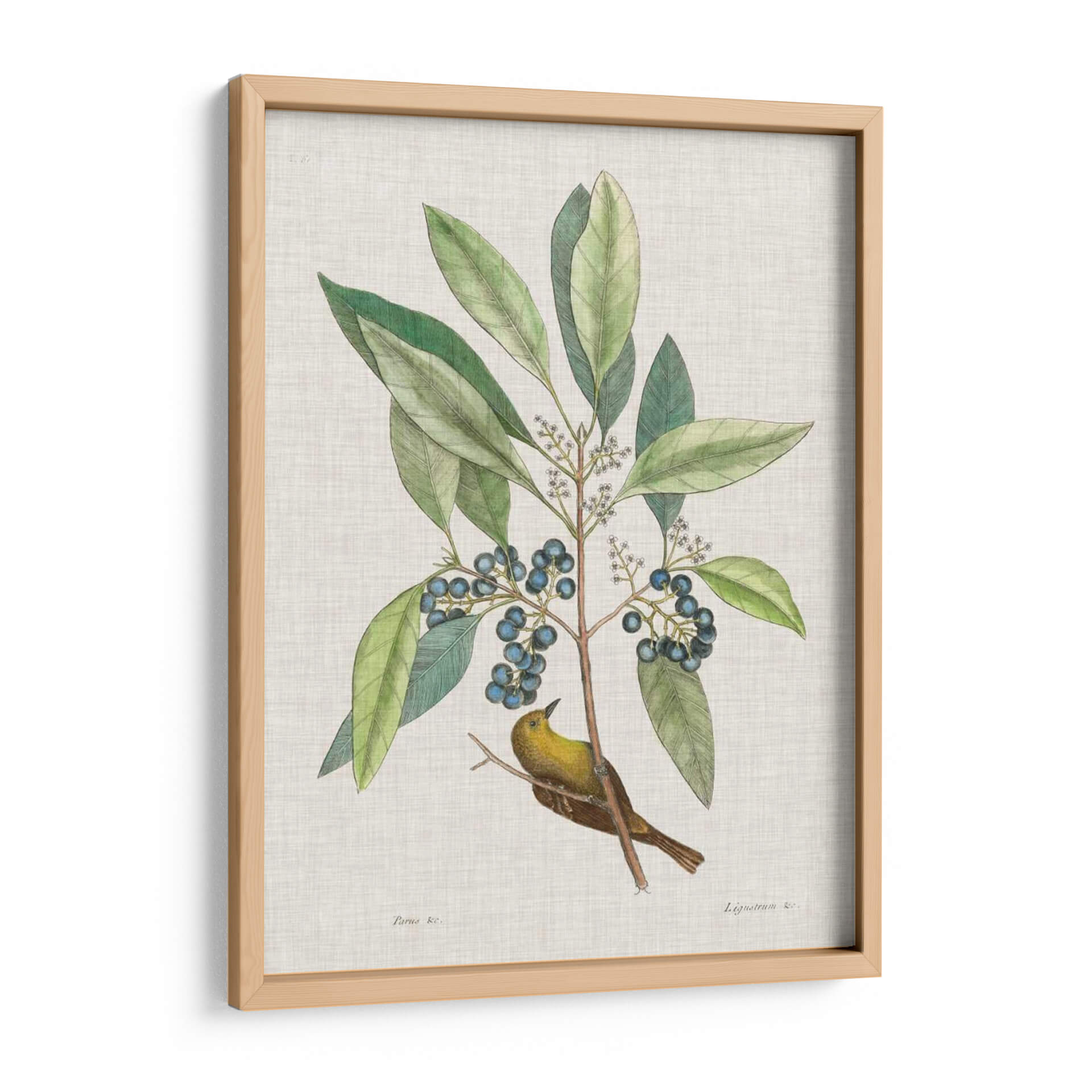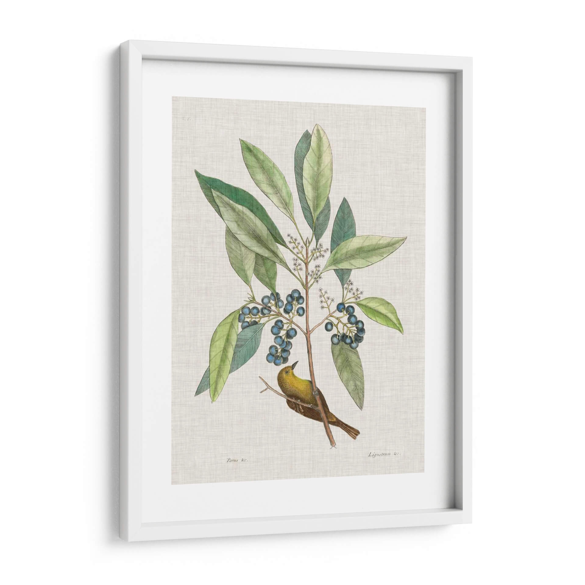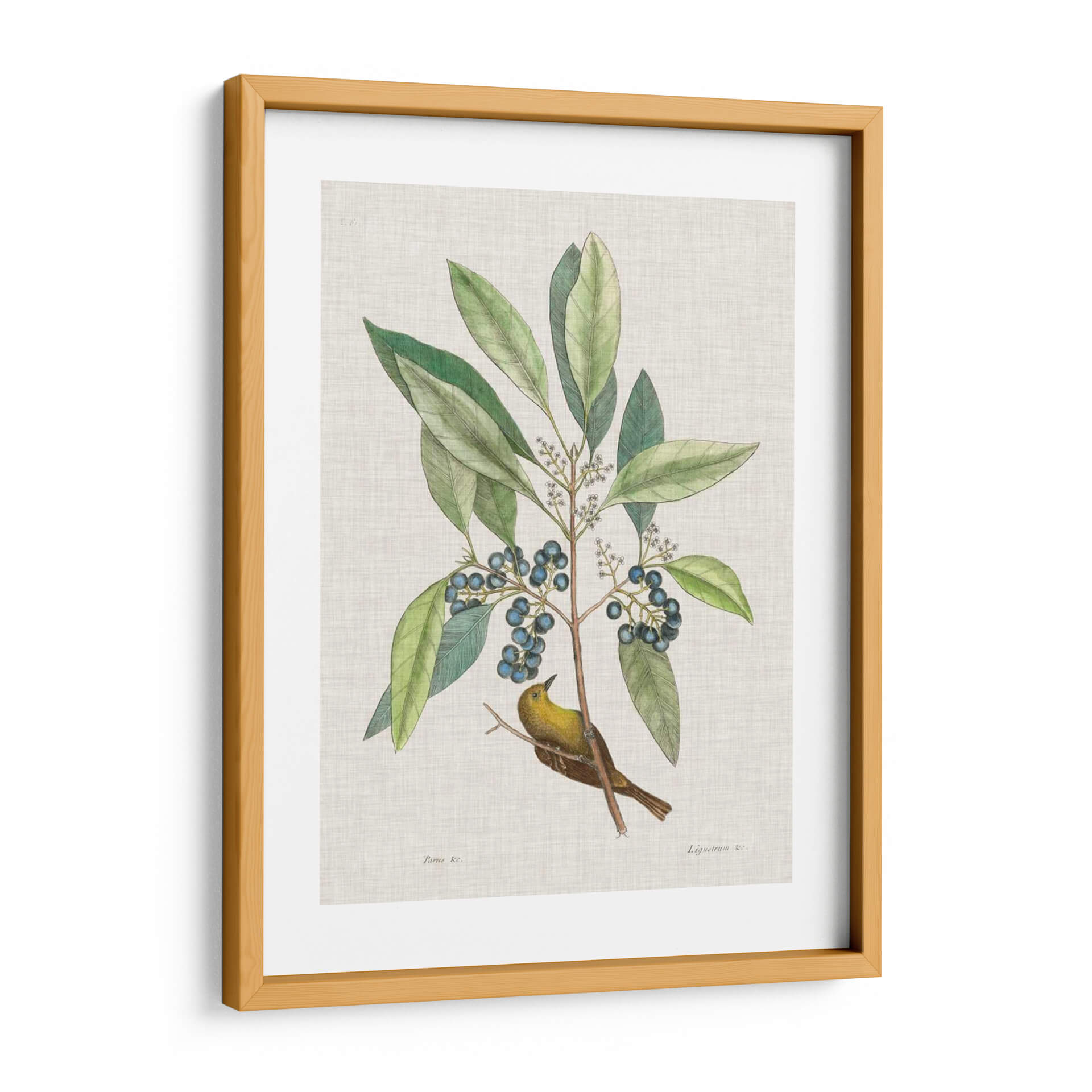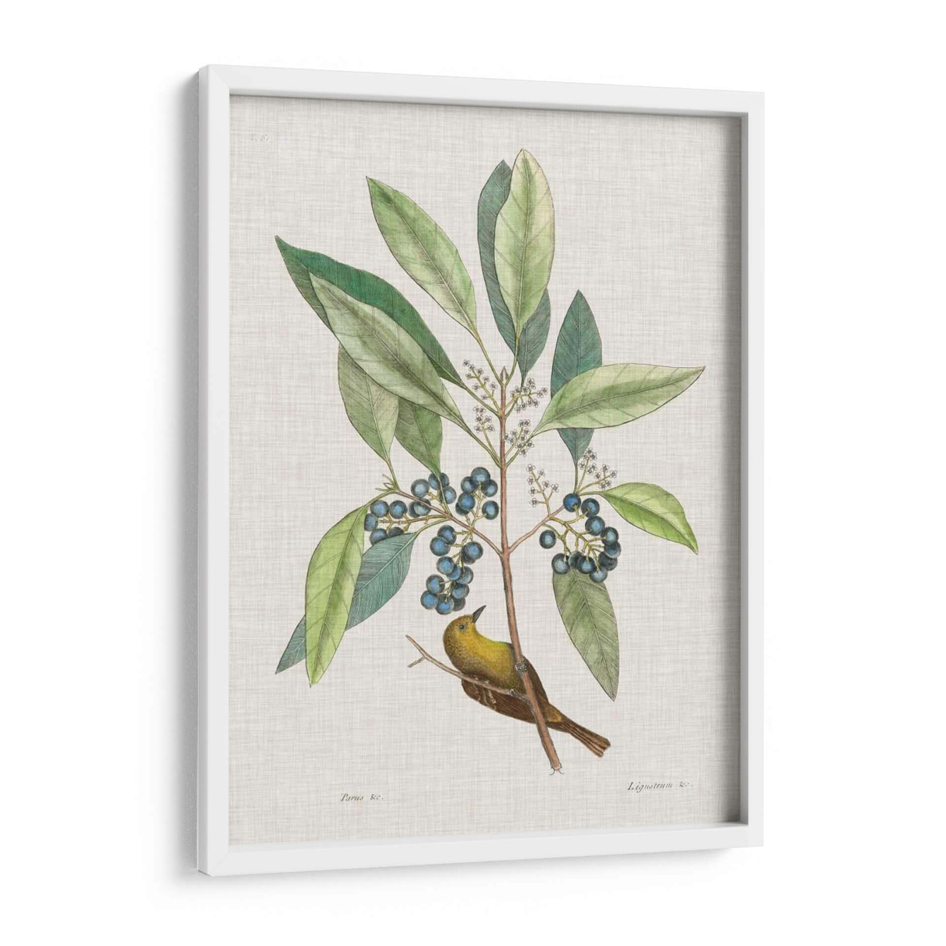 Sumérgete en la belleza atemporal de la naturaleza con "Estudios De La Naturaleza Iv", una obra de arte exquisita que captura la delicadeza de la flora y la fauna. Esta pieza, inspirada en las ilustraciones científicas clásicas, presenta un vibrante pájaro amarillo posado en una rama frondosa cargada de bayas azules. Los verdes profundos de las hojas contrastan armoniosamente con el ocre del ave y el azul intenso de los frutos, creando una paleta de colores rica y equilibrada. El estilo detallado y la composición centrada invitan a la contemplación, evocando una sensación de paz y conexión con el mundo natural. Es el cuadro decorativo perfecto para añadir un toque de elegancia orgánica a cualquier espacio, ya sea una sala de estar, un estudio o un dormitorio. Su diseño clásico y a la vez fresco lo convierte en una adición versátil para decoraciones que van desde lo tradicional hasta lo contemporáneo, aportando serenidad y un encanto natural a tu hogar. Descubre la maestría de Mark Catesby y transforma tus paredes con esta joya botánica y ornitológica.