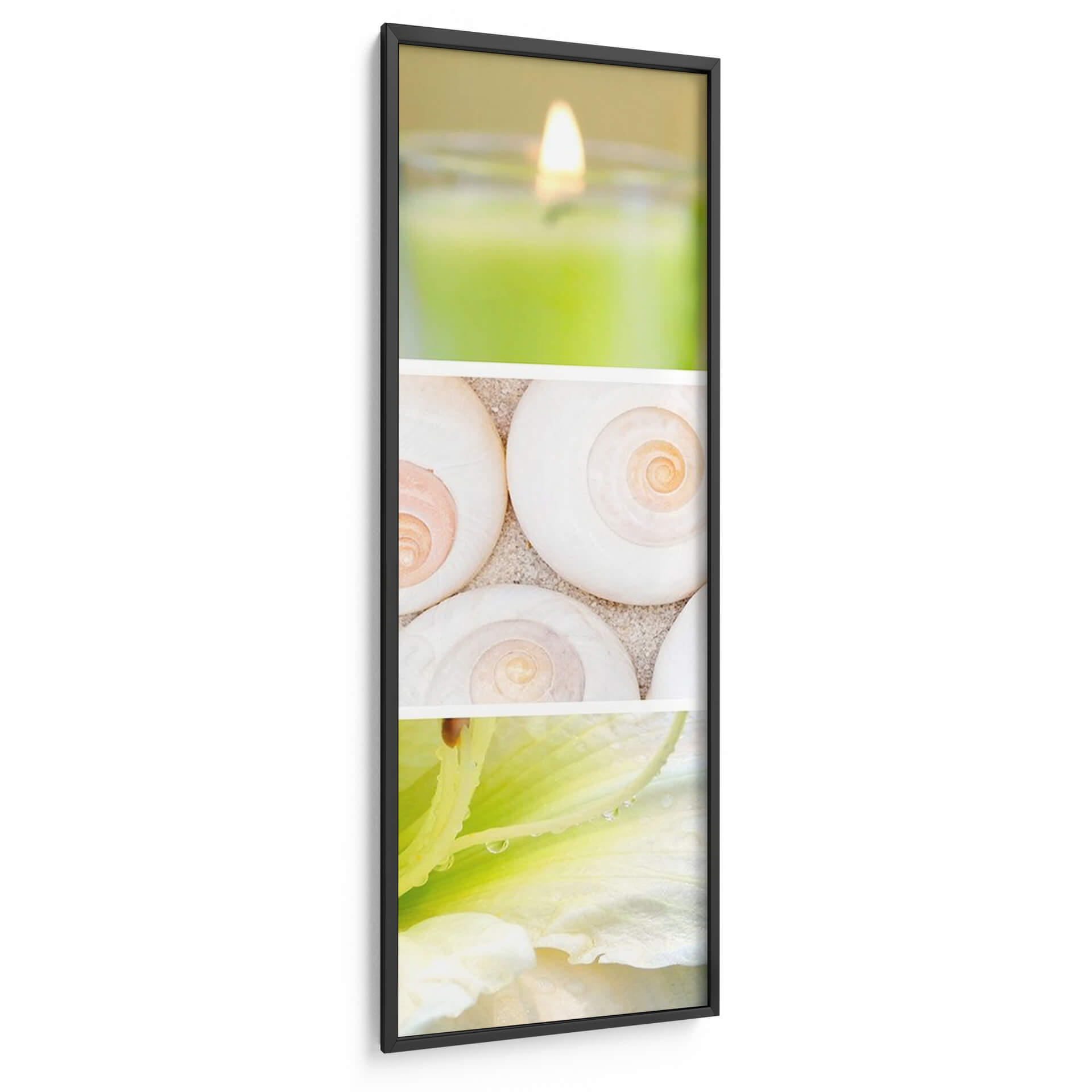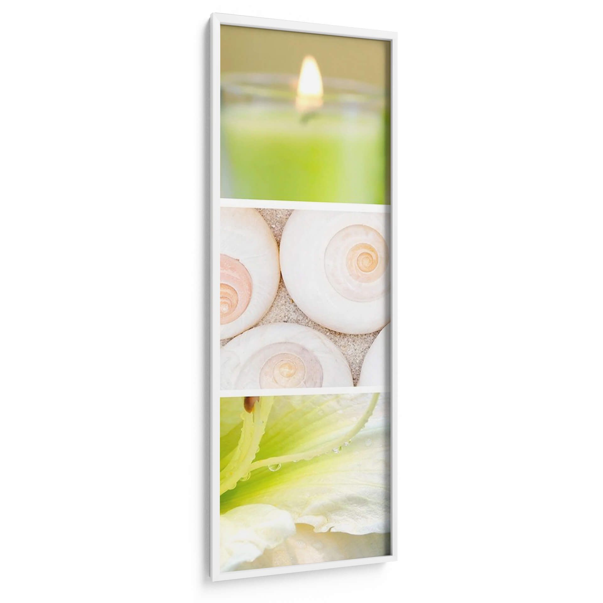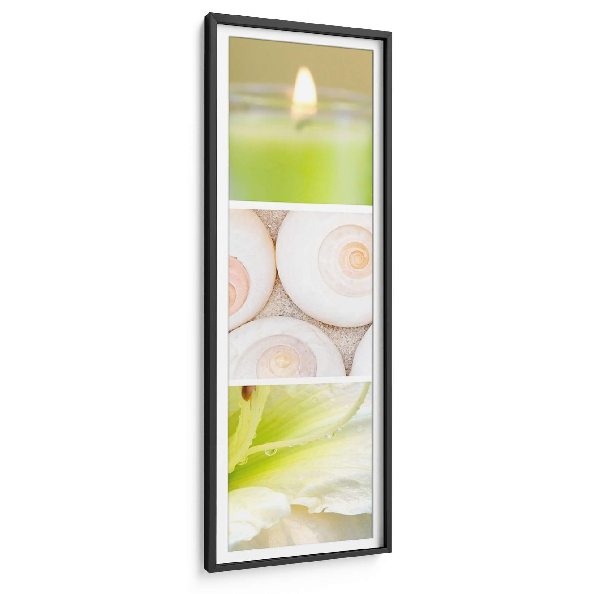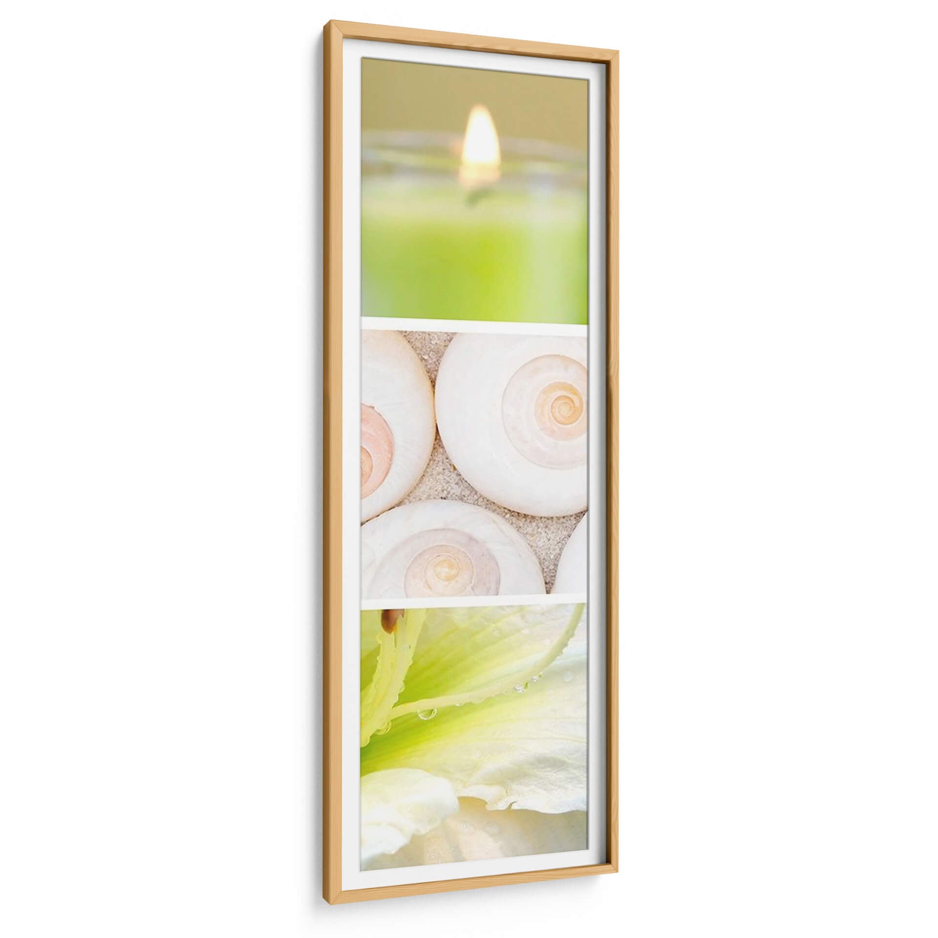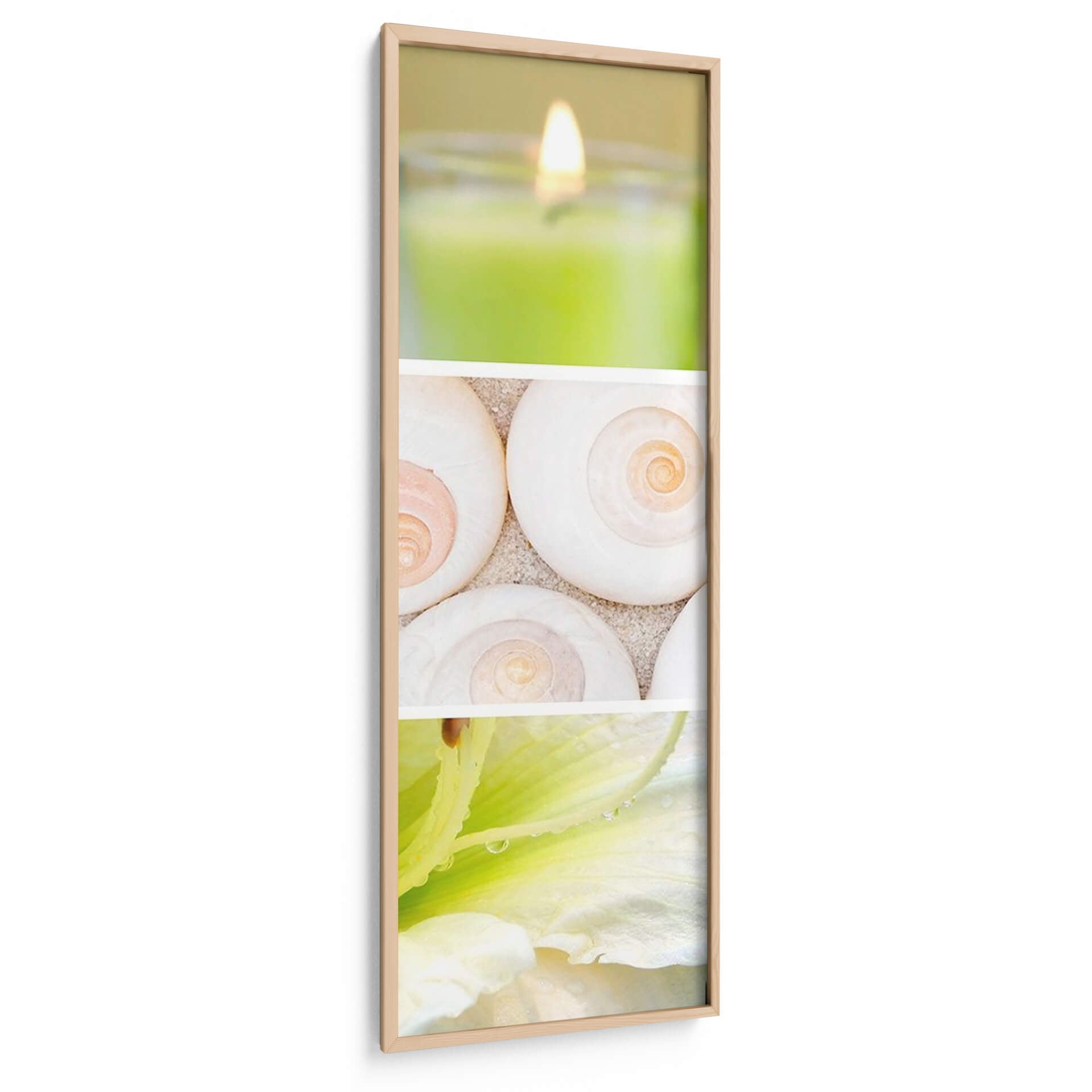 Transforma tu espacio con la serena belleza de "Facetas De La Primavera Ii", una obra de arte cautivadora de Irena Orlov. Esta composición visualmente armoniosa te transporta a un oasis de calma y renovación. La pieza presenta una delicada yuxtaposición de elementos naturales, comenzando con el suave resplandor de una vela encendida, cuyo cálido brillo se difumina en un fondo etéreo. A continuación, descubrimos la fascinante espiral de conchas marinas, dispuestas sobre una arena fina, evocando la tranquilidad del mar y la perfección geométrica de la naturaleza. Finalmente, la obra se sumerge en el detalle macroscópico de un pétalo de flor, adornado con gotas de rocío que capturan la luz, simbolizando la frescura y la vitalidad de la primavera. La paleta de colores, dominada por tonos verdes suaves y cremas, junto con toques cálidos de ámbar de la llama de la vela, crea una atmósfera de paz y relajación. "Facetas De La Primavera Ii" es una invitación a la contemplación, ideal para infundir serenidad en tu dormitorio, aportar un toque de naturaleza elegante a tu sala de estar o crear un rincón de tranquilidad en tu oficina. Este cuadro decorativo es perfecto para quienes buscan una pieza que inspire calma y eleve el espíritu.