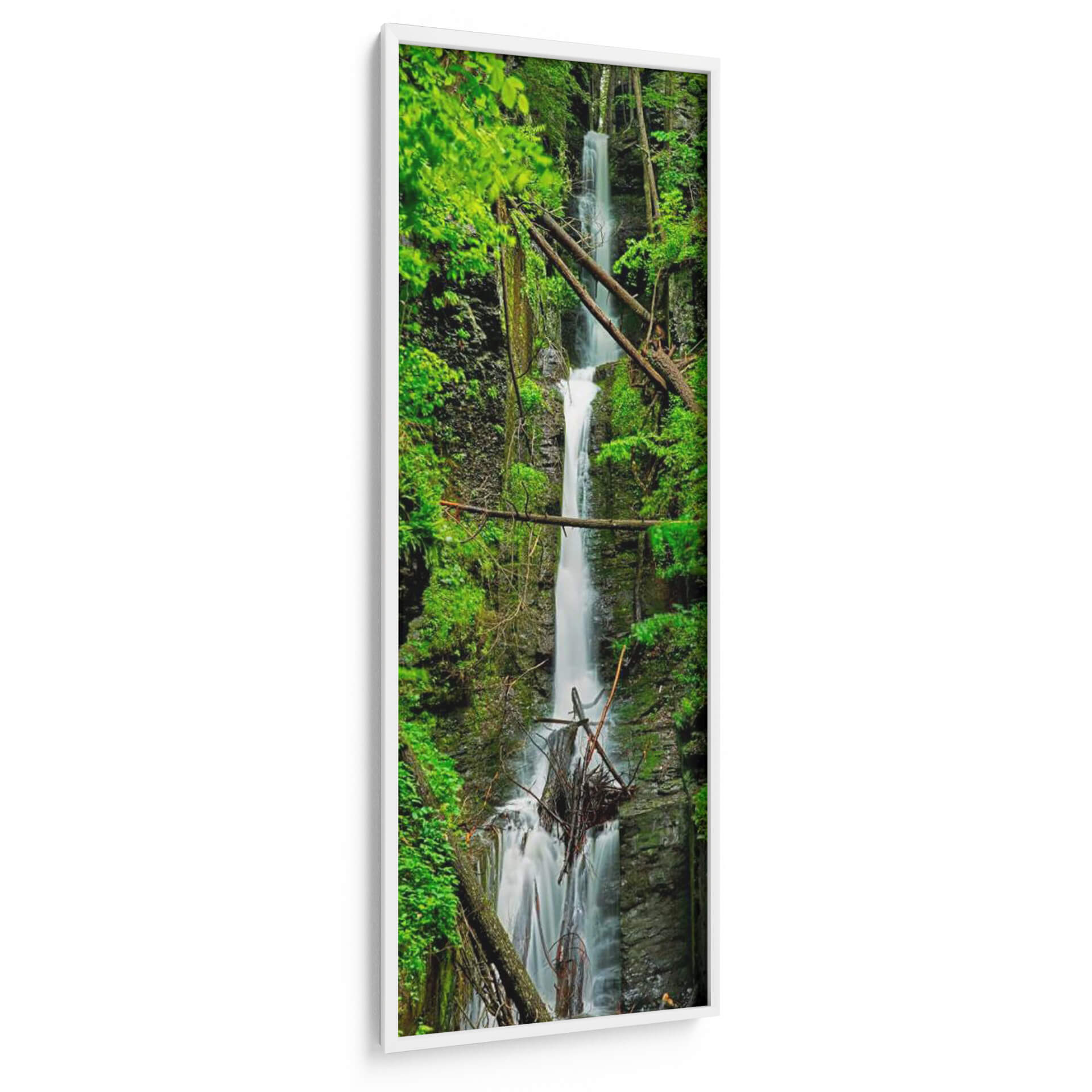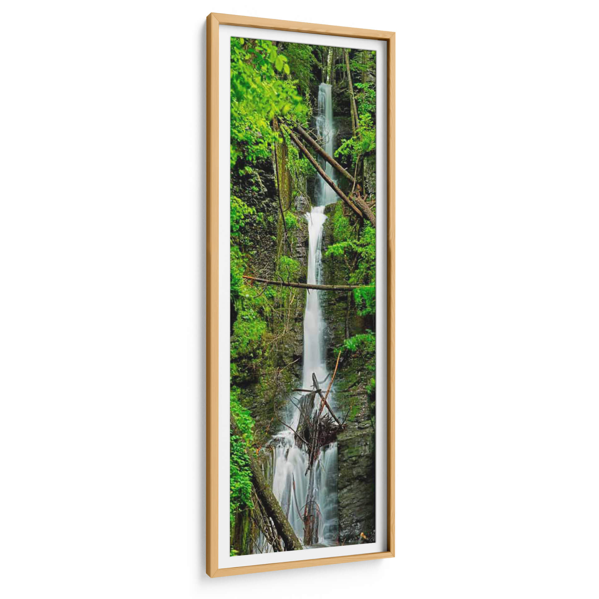 Sumérgete en la serenidad de la naturaleza con "Falls Verticales II", una obra maestra de James McLoughlin que captura la majestuosidad de una cascada en su máxima expresión. Este cuadro decorativo te transporta a un bosque exuberante y vibrante, donde el agua desciende en cascada por rocas cubiertas de vegetación, creando un espectáculo visual de calma y poder natural. La paleta de verdes intensos y las tonalidades de las rocas y el agua se combinan para evocar una atmósfera de frescura y vitalidad, ideal para cualquier espacio que busque una conexión con lo esencial. La composición vertical resalta la altura y el flujo continuo de la cascada, mientras que las ramas caídas y la vegetación densa añaden profundidad y un toque salvaje. "Falls Verticales II" es más que una simple imagen; es una invitación a la contemplación, perfecta para añadir un toque de tranquilidad y belleza natural a tu sala de estar, dormitorio u oficina. Transforma tus paredes en una ventana a la naturaleza virgen con este cautivador cuadro decorativo contemporáneo.
