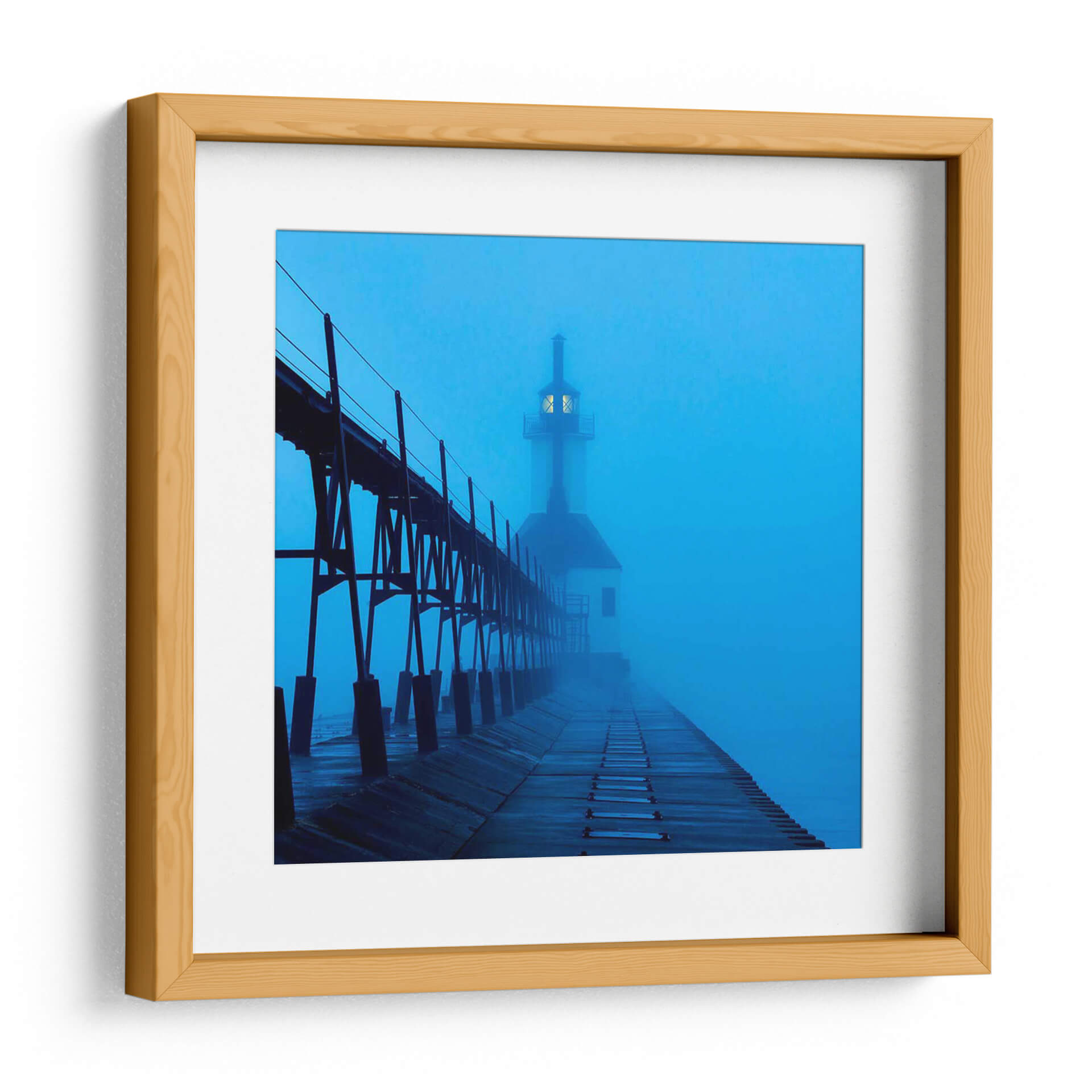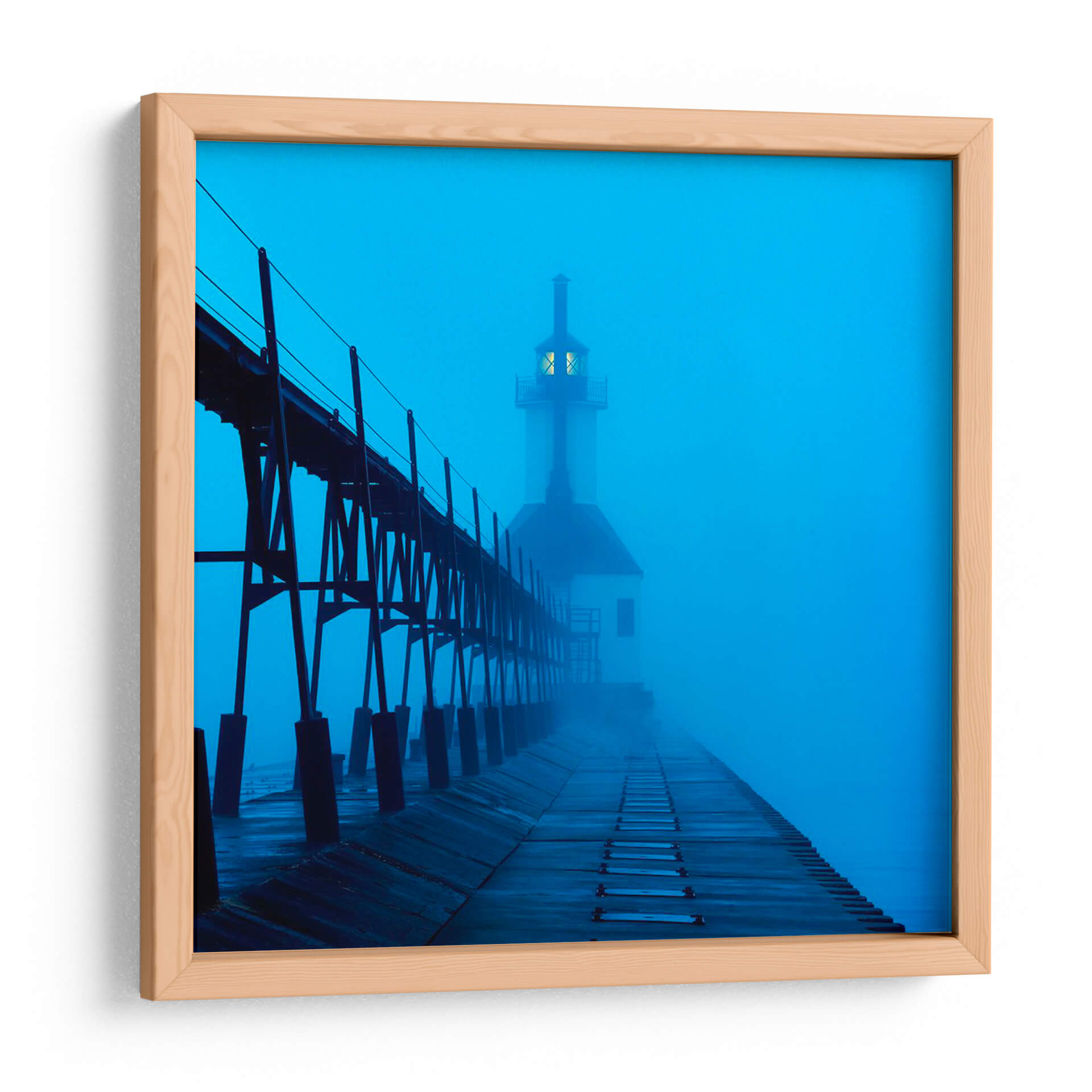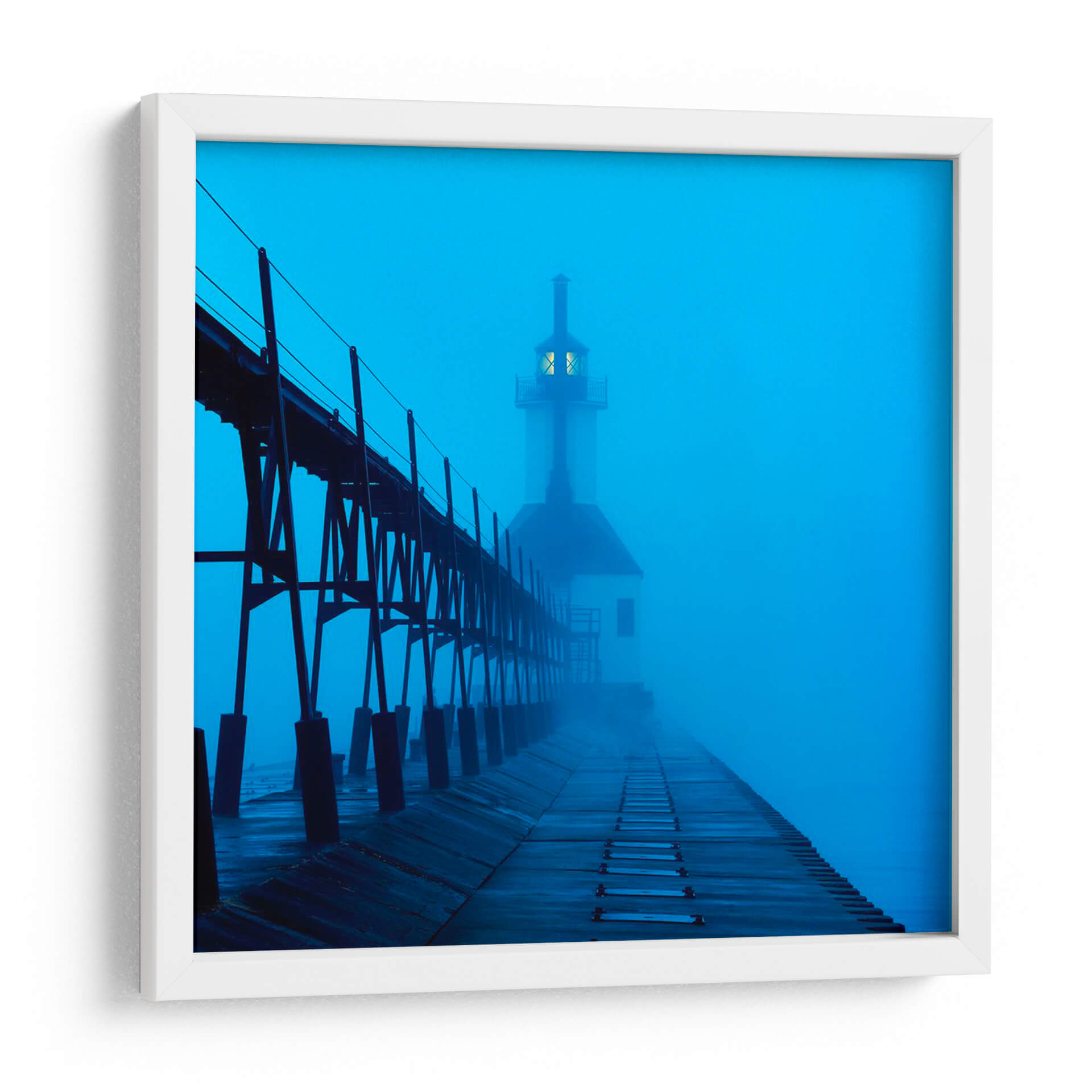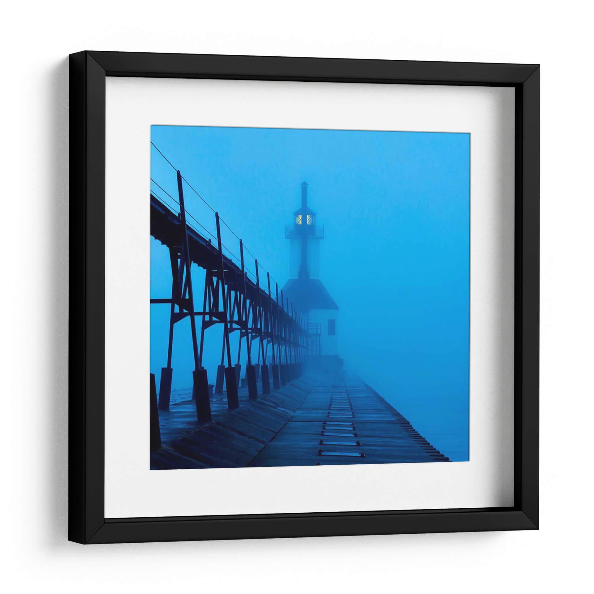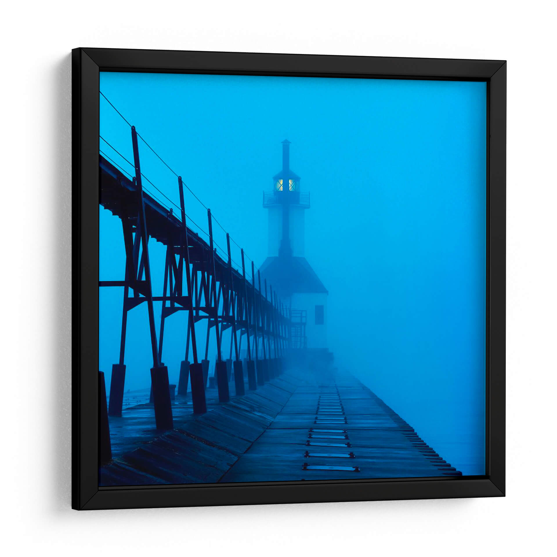 Sumérgete en la atmósfera mística de "Faro En La Noche I", una obra de James McLoughlin que captura la soledad y la esperanza en medio de una densa niebla. Este cuadro decorativo, dominado por profundos tonos azules y el resplandor etéreo de la linterna del faro, evoca una sensación de calma introspectiva y misterio. La composición, con el largo muelle que se pierde en la bruma y la silueta robusta del faro como punto focal, invita a la contemplación y a la imaginación. Ideal para espacios que buscan un toque de serenidad y elegancia, como un salón moderno, un estudio o un dormitorio, esta pieza es una ventana a un momento suspendido en el tiempo. La iluminación sutil del faro actúa como un guía, simbolizando la perseverancia y la luz en la oscuridad, un mensaje poderoso que añade profundidad a cualquier decoración. La paleta de colores fríos crea un ambiente envolvente y tranquilo, perfecto para crear un santuario personal. Transforma tu hogar con este evocador paisaje marino.