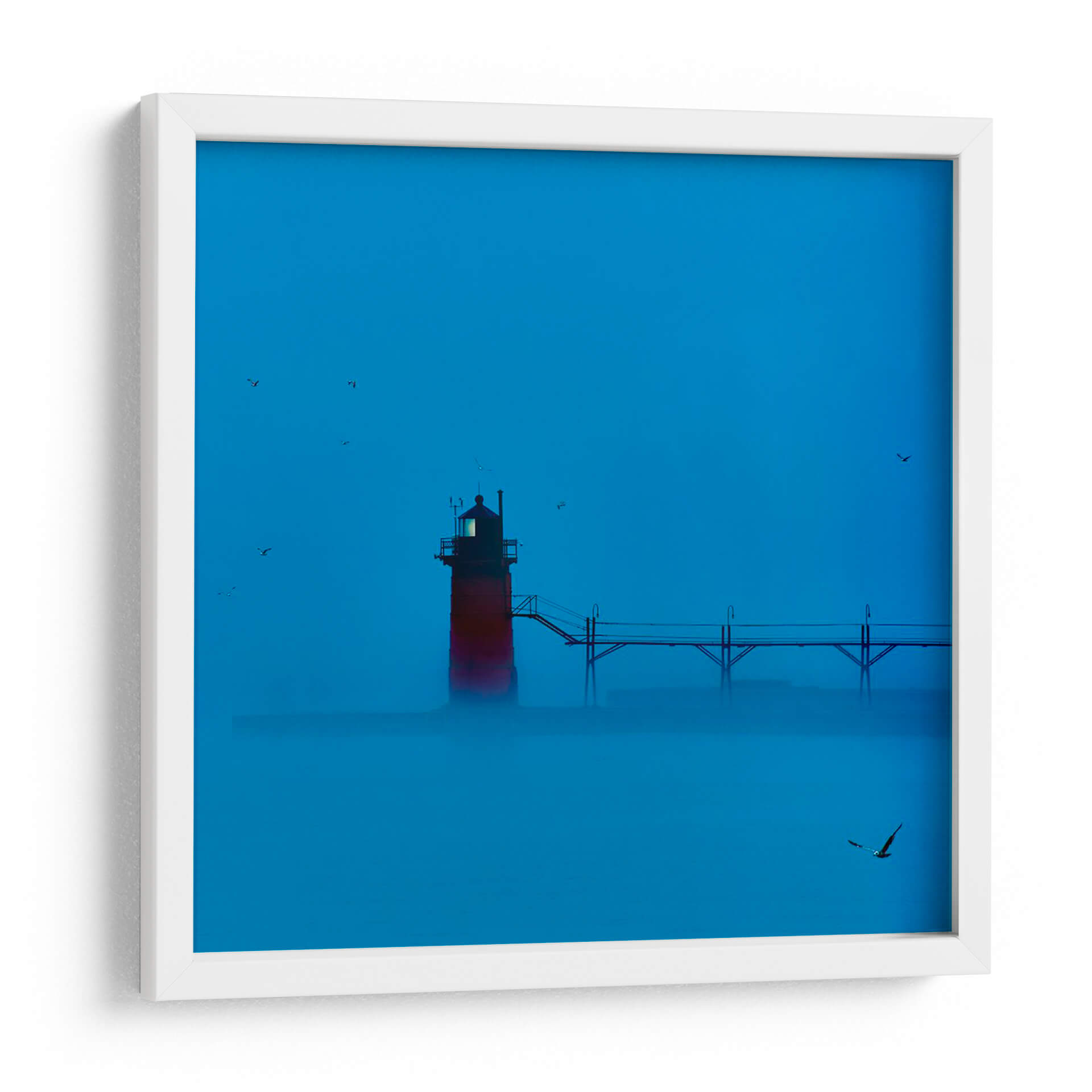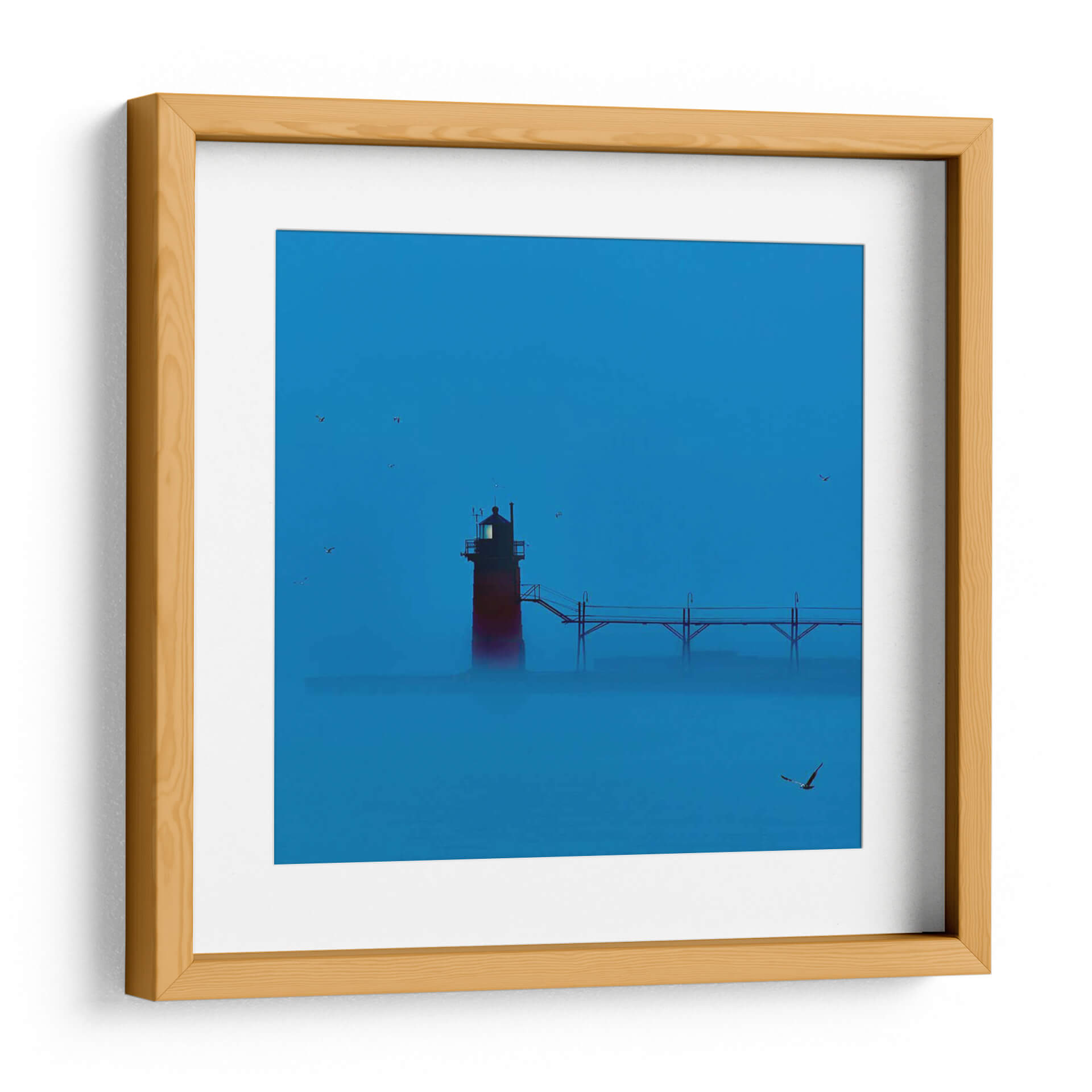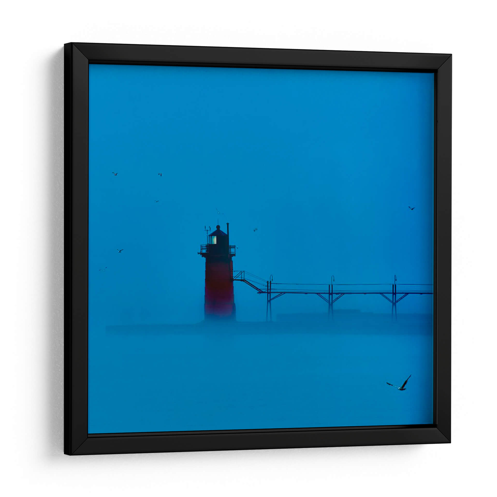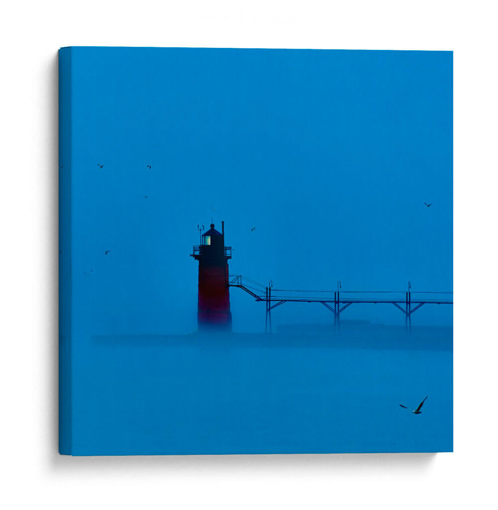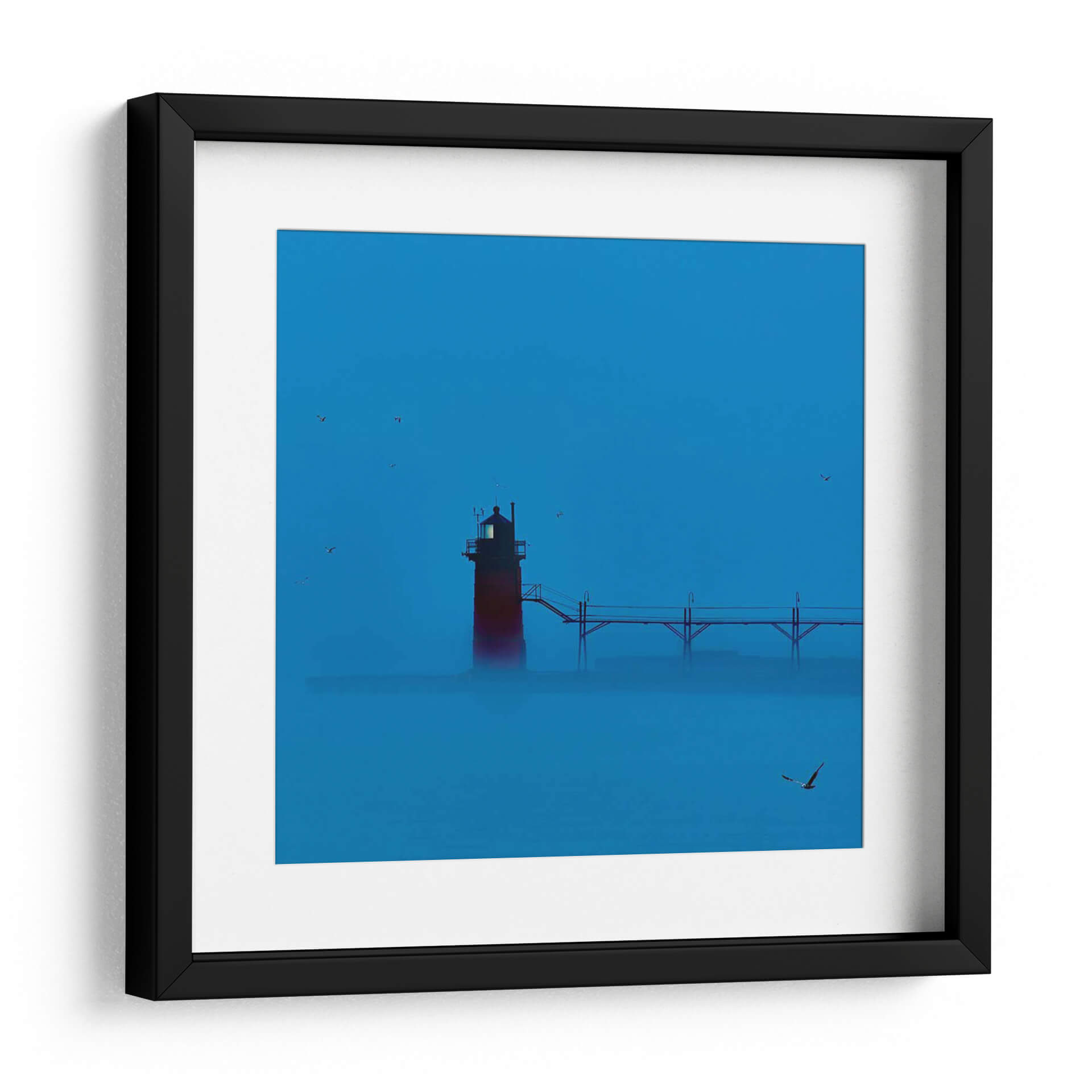 Sumérgete en la serena majestuosidad de "Faro En La Noche Ii", una obra maestra de James McLoughlin que captura la esencia solitaria y el poder protector de un faro en medio de la oscuridad. Esta pieza se caracteriza por su audaz uso del color, con un profundo azul eléctrico que envuelve el cielo y el mar, creando una atmósfera de misterio y tranquilidad. El faro, con su silueta en rojo vibrante, se alza imponente, su luz tenue rompiendo la penumbra y sirviendo como un faro de esperanza y guía. La pasarela que se extiende hacia él añade una capa de narrativa visual, sugiriendo un viaje o una conexión. Pequeñas siluetas de aves en vuelo y una bruma etérea que difumina los contornos contribuyen a una sensación de calma y aislamiento contemplativo. "Faro En La Noche Ii" es ideal para añadir un toque de introspección y elegancia a cualquier espacio, ya sea un salón moderno, un estudio tranquilo o un dormitorio que busque un refugio de paz. Este cuadro decorativo invita a la reflexión y es perfecto para quienes aprecian la belleza de la naturaleza y la fuerza simbólica de los elementos marinos.