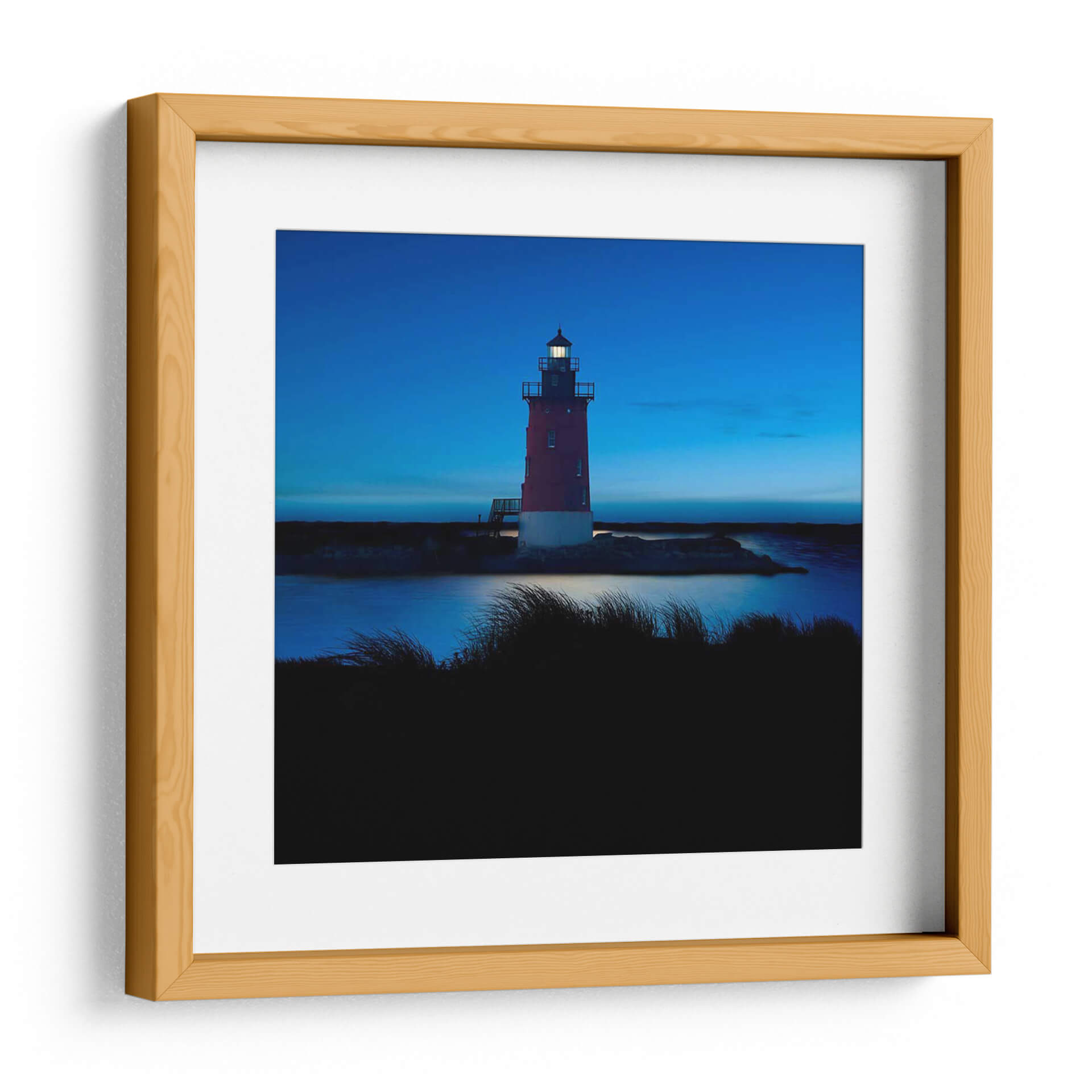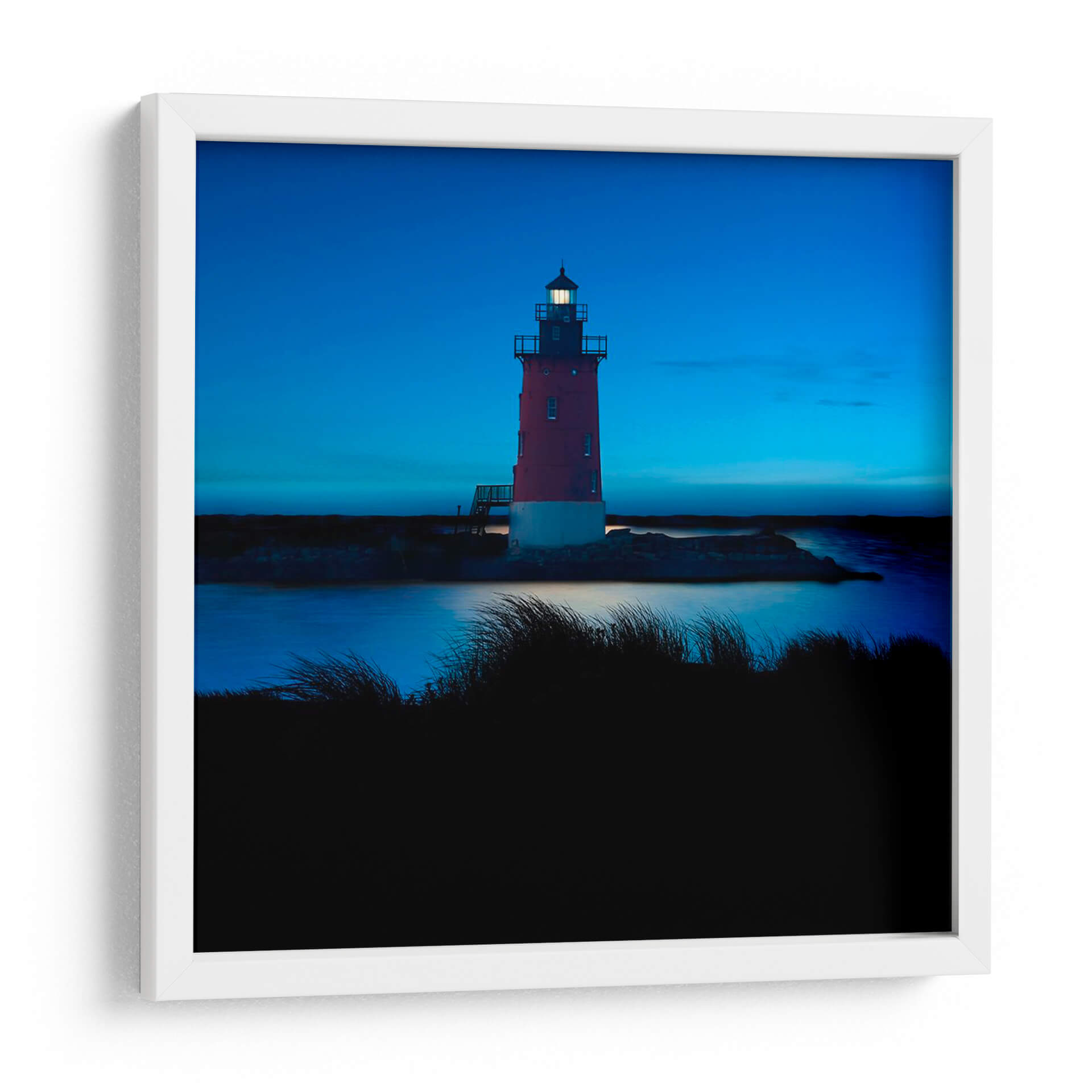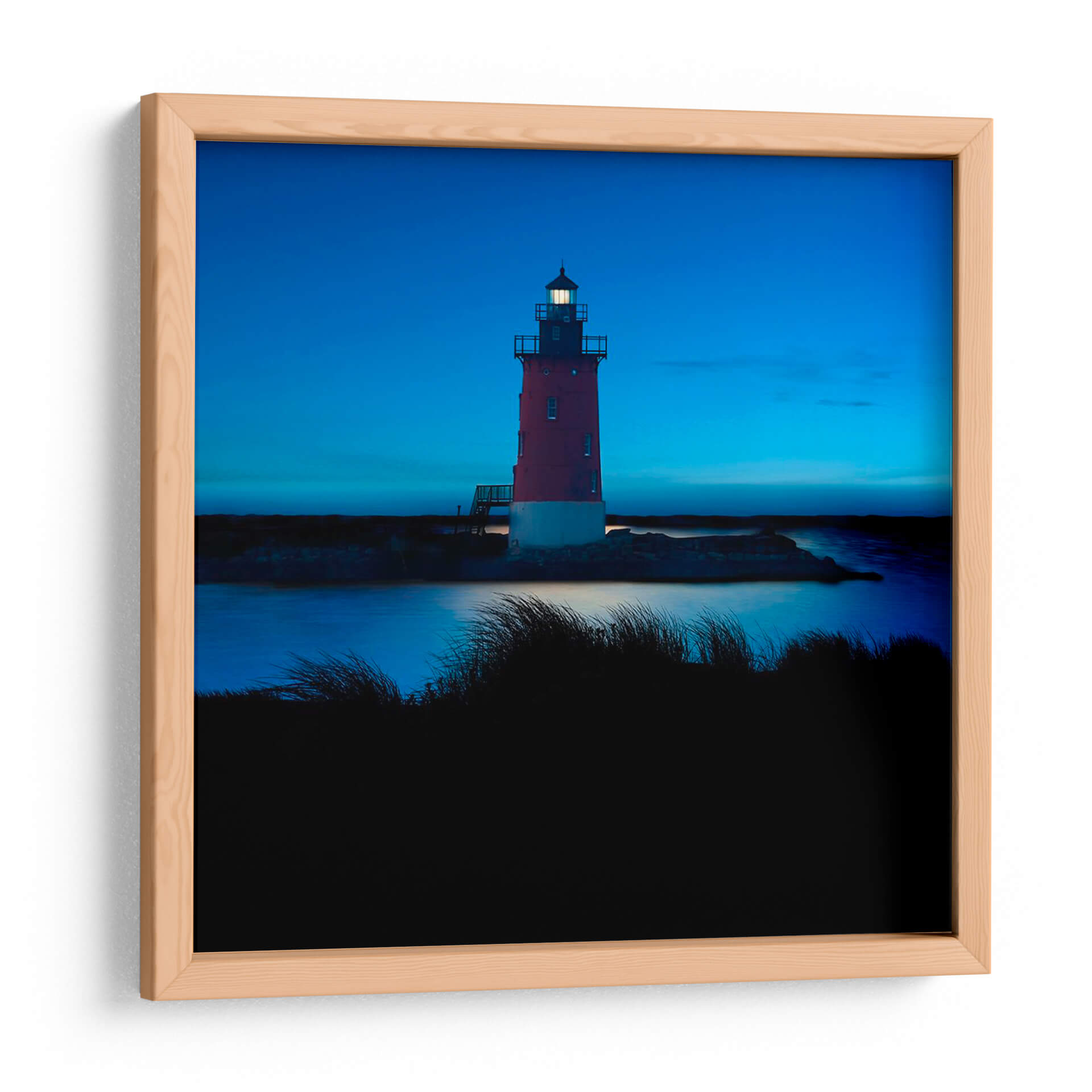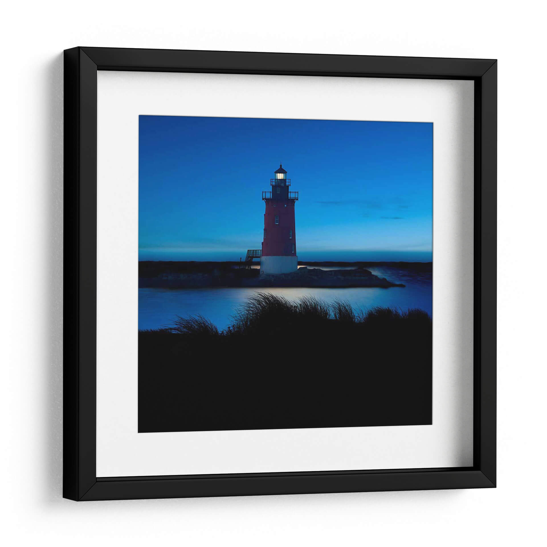 Adéntrate en la serena oscuridad con "Faro En La Noche Iv", una obra maestra de James McLoughlin que captura la majestuosidad solitaria de un faro al anochecer. La vibrante torre roja se alza con determinación contra un cielo de un azul profundo e intenso, salpicado por los últimos vestigios de luz diurna. El agua circundante refleja el resplandor del faro y el cielo, creando una atmósfera de calma y misterio. La composición se ve realzada por la silueta de la vegetación en primer plano, que añade profundidad y un toque terroso a la escena marina. Este cuadro decorativo es perfecto para infundir una sensación de tranquilidad y resiliencia en cualquier espacio. Imagina la paz que aportaría a tu dormitorio, o cómo serviría como un punto focal contemplativo en tu estudio u oficina. La iluminación dramática y los tonos fríos invitan a la reflexión, convirtiendo esta pieza en un elemento esencial para quienes buscan añadir un toque de naturaleza serena y poder silencioso a su decoración. Ideal para amantes de los paisajes costeros y aquellos que aprecian la belleza en la soledad y la perseverancia.