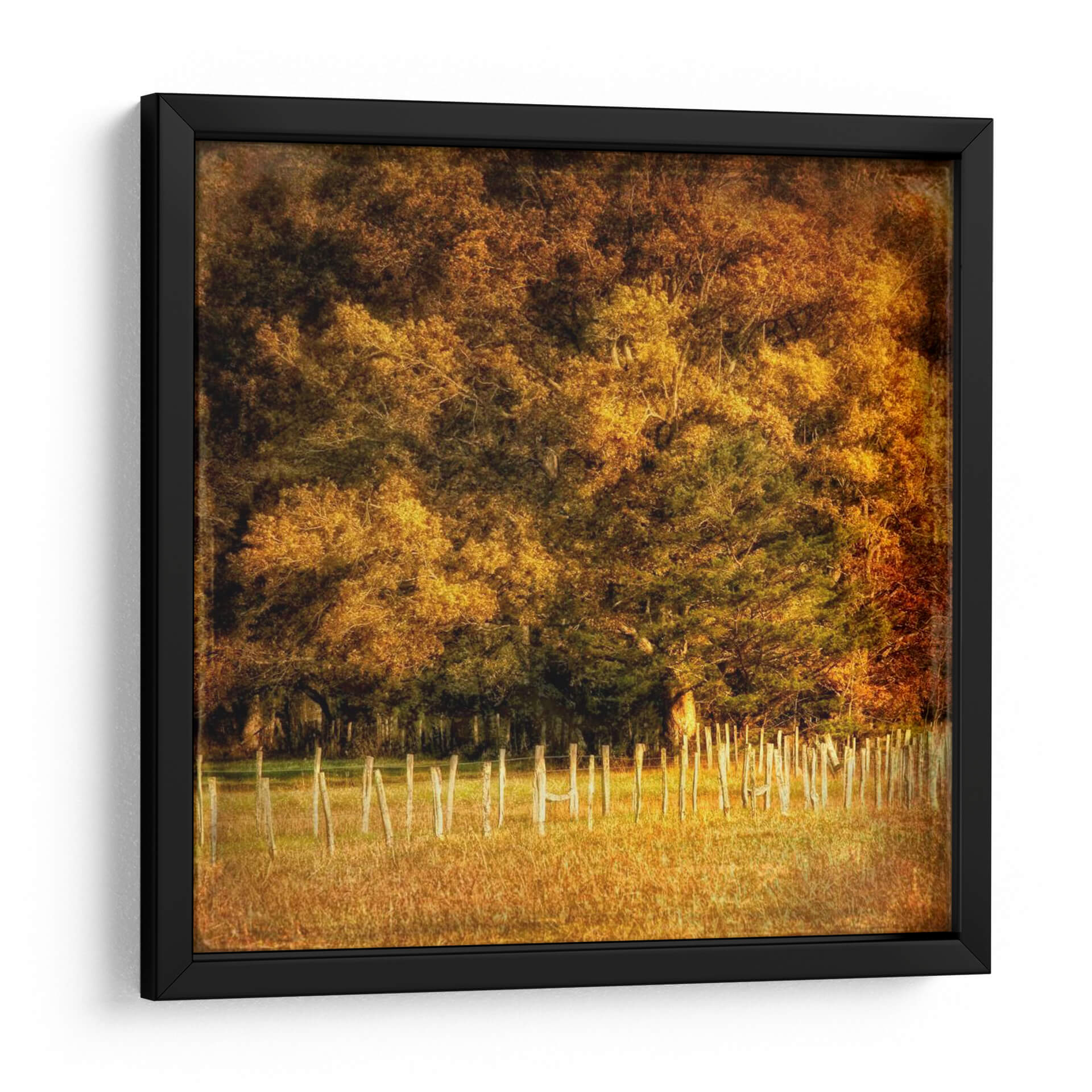 Sumérgete en la calidez y la nostalgia del otoño con "Fila De La Cerca", una obra de arte que captura la esencia de una escena rural bañada por la luz dorada de la tarde. Este cuadro decorativo presenta un paisaje sereno donde una valla rústica de madera delimita un prado cubierto de hierba seca, extendiéndose hacia un denso y vibrante bosque otoñal. Los árboles, cargados de follaje en tonos ocres, dorados y verdes profundos, crean una atmósfera envolvente y acogedora. La composición, con la valla actuando como un elemento de perspectiva, guía la mirada hacia la majestuosidad de la naturaleza. La paleta de colores cálidos evoca una sensación de paz y tranquilidad, perfecta para añadir un toque de serenidad a cualquier espacio. Ideal para salones, dormitorios o estudios, este lienzo transformará tu hogar en un refugio de calma y belleza natural. "Fila De La Cerca" es más que una simple imagen; es una invitación a pausar y disfrutar de la belleza efímera de las estaciones.