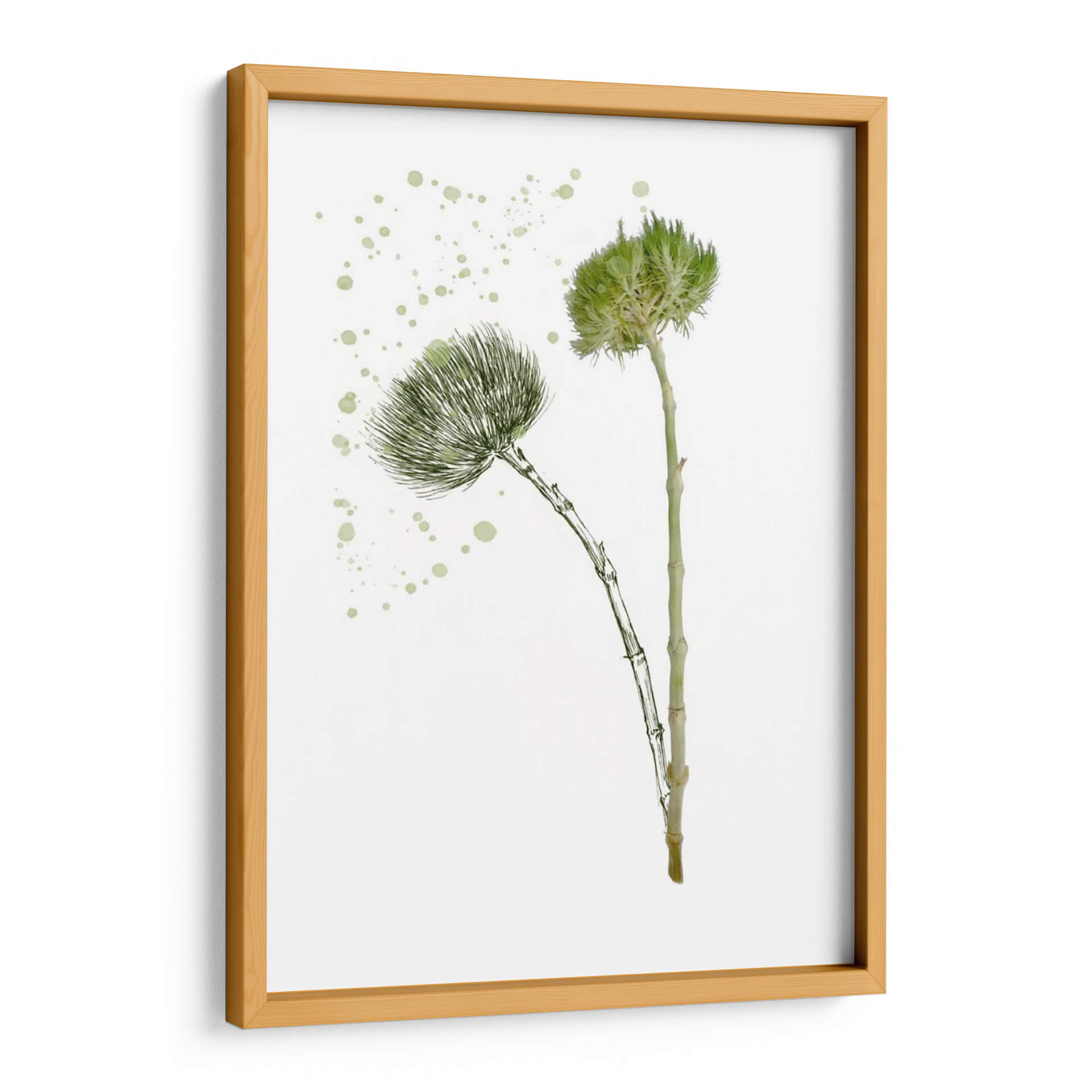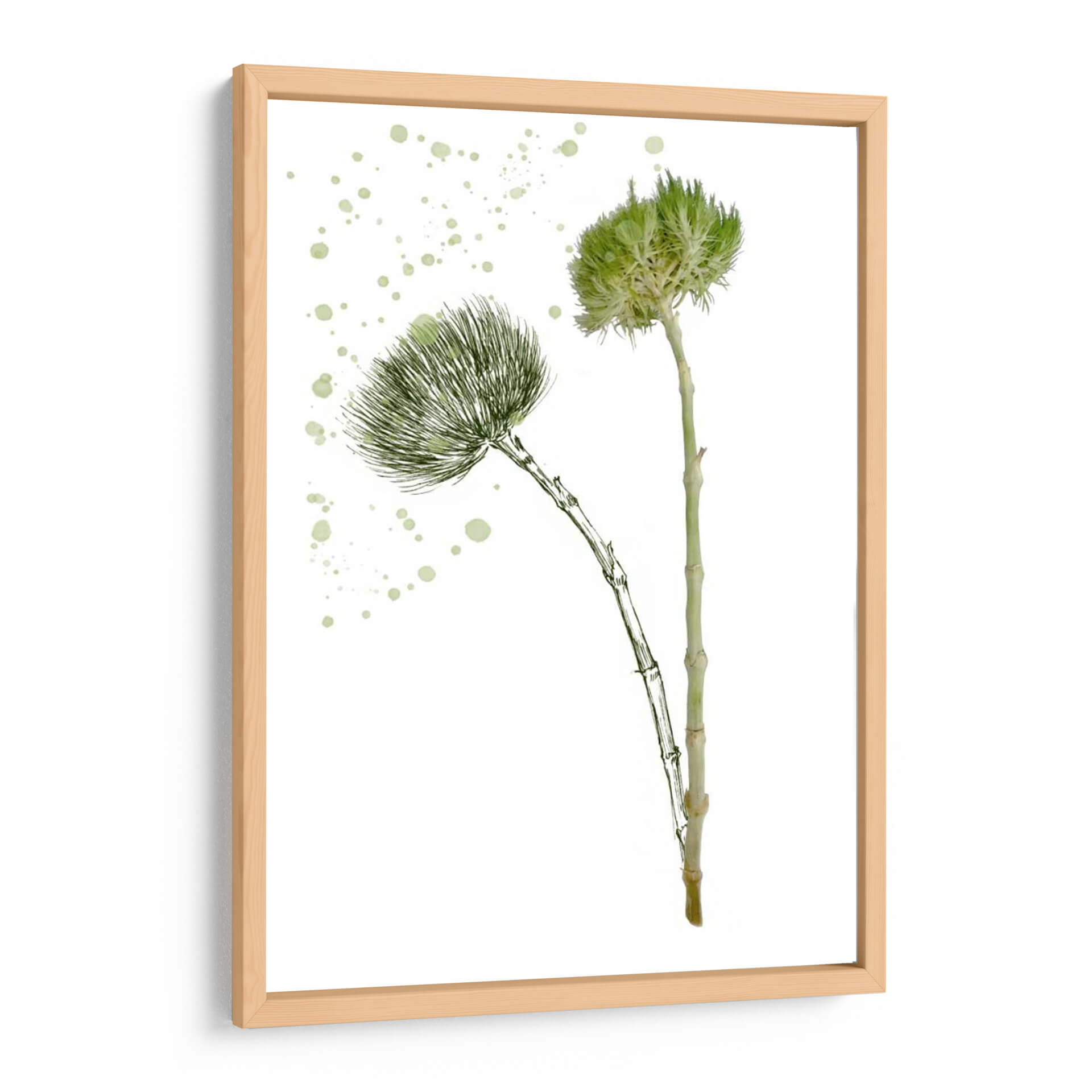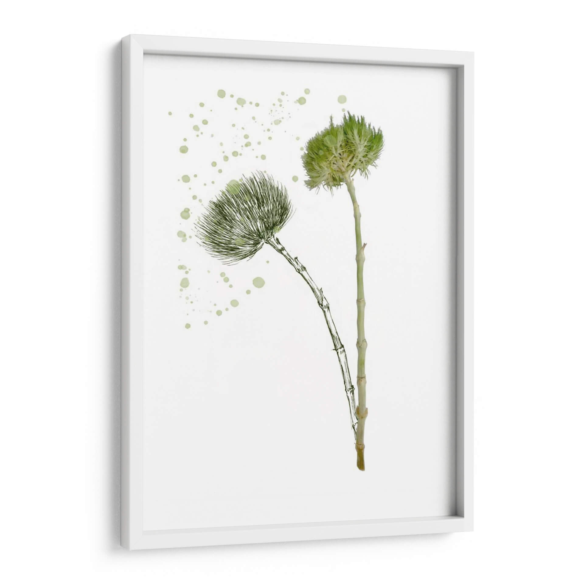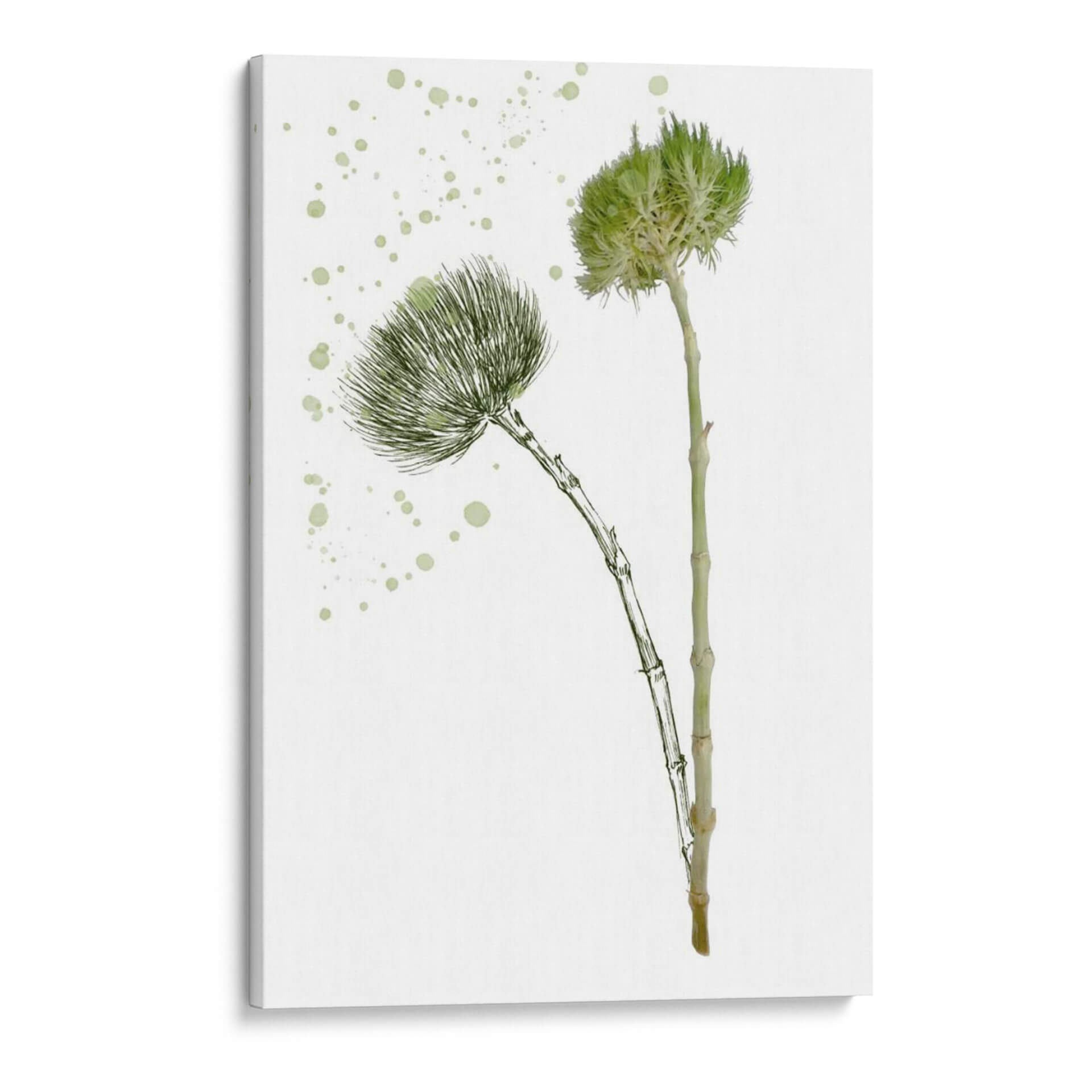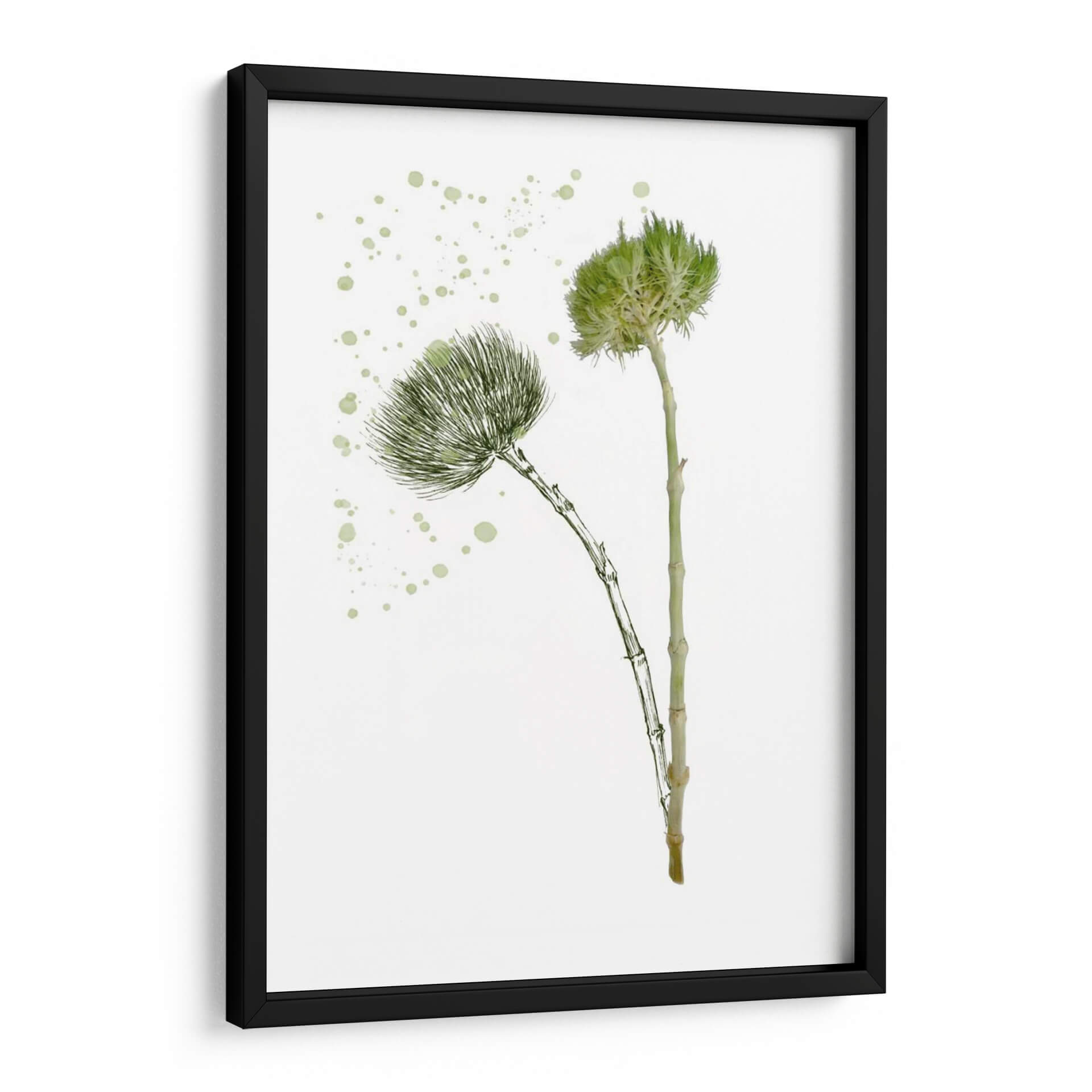 Transforma tu espacio con la delicadeza y la frescura de 'Flor De Botánica V', una obra de arte que captura la esencia de la naturaleza con un toque contemporáneo. Esta pieza, creada por la talentosa artista Melissa Wang, presenta dos delicadas flores botánicas en tonos verdes vibrantes, dibujadas con un trazo fino y elegante sobre un fondo blanco puro. El estilo se inspira en la botánica clásica, pero se actualiza con una técnica moderna que evoca la ligereza y la vitalidad de la flora. Las sutiles salpicaduras de color verde pálido añaden un elemento dinámico y artístico, sugiriendo el movimiento y la espontaneidad de un jardín en flor. La composición minimalista y centrada en los detalles florales hace que este cuadro decorativo sea versátil, ideal para añadir un toque de serenidad y belleza natural a cualquier habitación. Perfecta para salones modernos, dormitorios acogedores u oficinas que buscan un ambiente de calma y renovación. 'Flor De Botánica V' no es solo una imagen, es una invitación a conectar con la naturaleza y a embellecer tu hogar con arte que inspira y eleva.