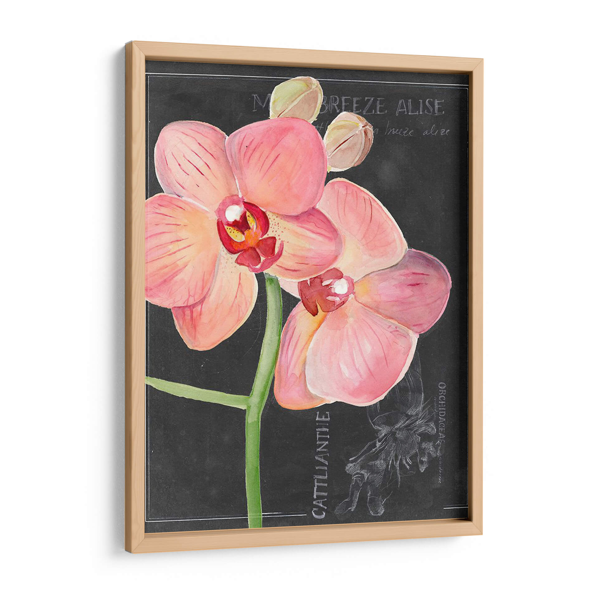 Transforma tu espacio con la delicadeza y el encanto de "Flor De La Pizarra I", una obra de arte contemporáneo de Jennifer Paxton Parker. Este cautivador cuadro decorativo presenta un primer plano de orquídeas en tonos rosados y coral vibrantes, contrastando elegantemente sobre un fondo oscuro, reminiscentes de una pizarra. La técnica de acuarela o pintura digital utilizada aporta una textura suave y orgánica, destacando la belleza natural de las flores y sus capullos. La composición se centra en la delicadeza de los pétalos y la vitalidad de sus centros rojos y amarillos, evocando una sensación de calma, elegancia y un toque de sofisticación botánica. Las sutiles anotaciones y el nombre científico impresos añaden un aire académico y refinado a la pieza, haciéndola ideal para espacios que buscan un punto de interés visual sereno pero impactante. Perfecta para tu sala de estar, dormitorio o estudio, esta pieza aportará vida y un aire de tranquilidad natural a cualquier rincón. Añade un toque de color y naturaleza a tu decoración interior con esta exquisita representación floral, diseñada para resonar con amantes del arte y la botánica.