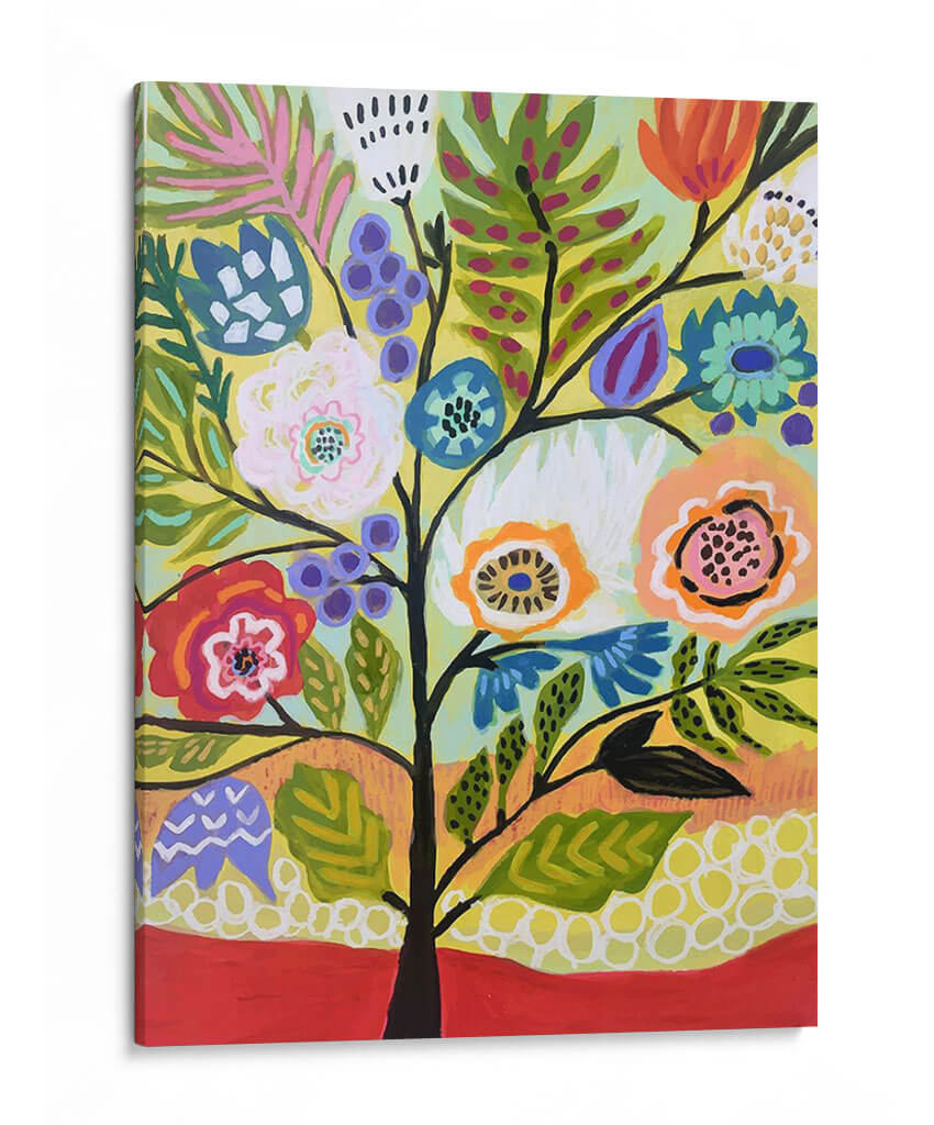Sumérgete en un estallido de color y vitalidad con "Flor Tree II", una obra de arte contemporáneo que celebra la belleza exuberante de la naturaleza. Esta pieza vibrante, creada por Karen Fields, presenta un árbol estilizado cargado de flores y follaje en una paleta de colores alegre y audaz. Los tonos amarillos cálidos del fondo contrastan maravillosamente con las explosiones de rojo, naranja, rosa, azul y verde que adornan las ramas, creando una composición dinámica y llena de energía. La técnica de pintura, con pinceladas visibles y texturas que aportan profundidad, dota a la obra de una cualidad artesanal y moderna. Cada flor es una explosión de detalle, desde los pétalos delicados hasta los centros intrincados, invitando a una contemplación pausada. "Flor Tree II" es más que una simple decoración; es una ventana a un jardín imaginario, un reflejo de la alegría y la vitalidad que la naturaleza puede inspirar. Ideal para iluminar cualquier espacio, desde una sala de estar moderna hasta un dormitorio acogedor o una oficina creativa, este cuadro decorativo añadirá un toque de optimismo y estilo único. Transforma tu hogar con esta pieza inspiradora que captura la esencia de la primavera y la exuberancia floral en un diseño contemporáneo y cautivador.