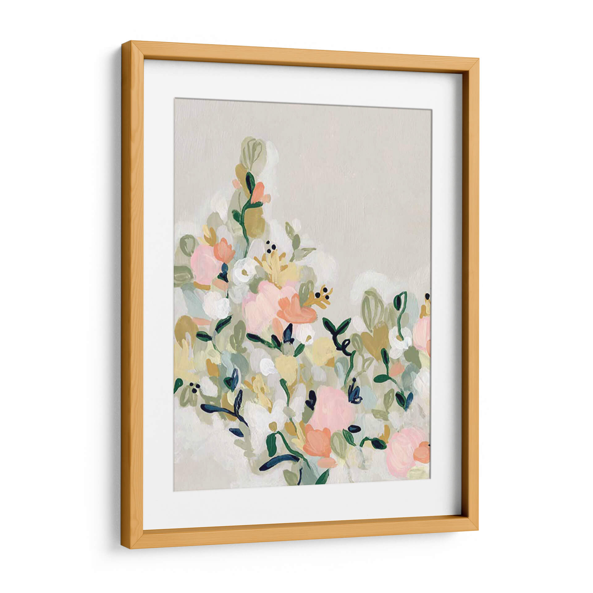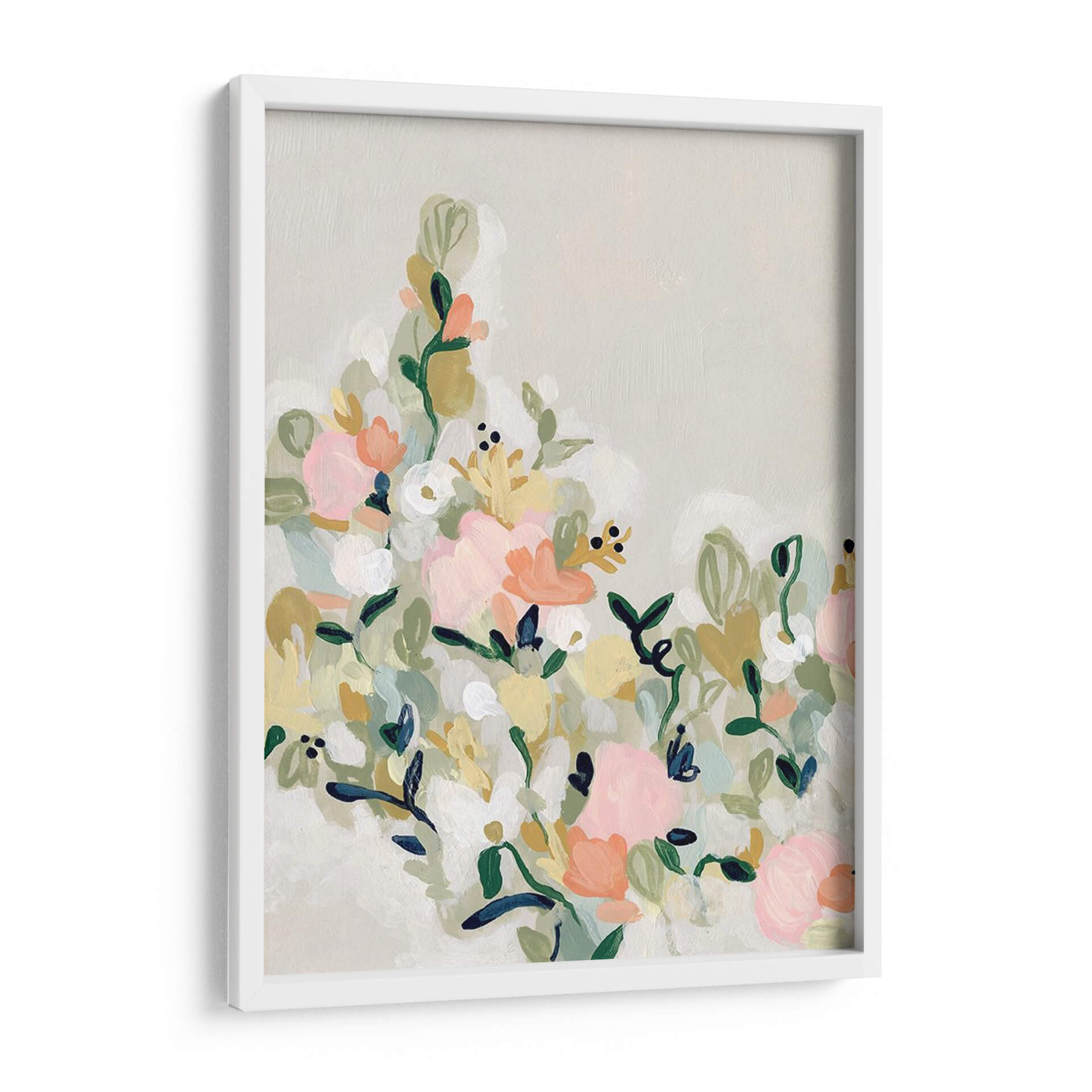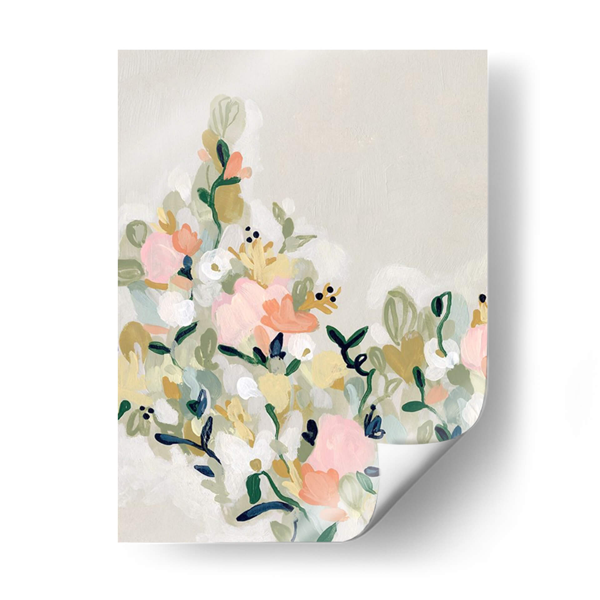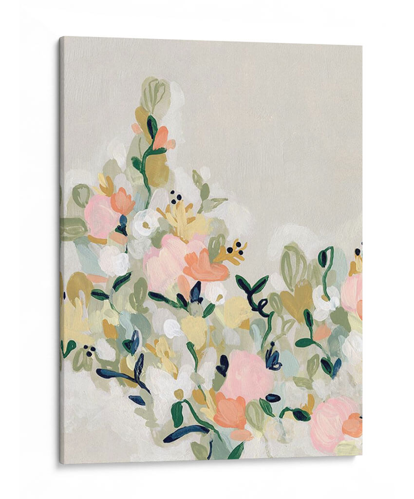 Sumérgete en la delicadeza y el encanto de "Floradores De Sonrojos Ii", una obra de arte contemporáneo que captura la esencia de un jardín en plena floración con un toque etéreo. La artista June Erica Vess nos presenta un lienzo donde pinceladas sueltas y orgánicas dan vida a un vibrante despliegue floral. Predominan los tonos pastel, con suaves rosas, melocotones y amarillos que se entrelazan con verdes botánicos y toques de blanco puro, creando una atmósfera de serenidad y alegría sutil. La composición, aunque densa en detalles, mantiene una ligereza visual gracias a su fondo neutro y las formas fluidas de las flores y hojas. Este cuadro decorativo es ideal para infundir calidez y un aire de frescura primaveral en cualquier estancia, desde una sala de estar moderna hasta un dormitorio acogedor o un estudio inspirador. Su estilo abstracto y expresivo permite que cada espectador interprete la belleza a su manera, convirtiéndola en una pieza única que dialoga con el espacio y la emoción. "Floradores De Sonrojos Ii" es más que una decoración; es una invitación a la contemplación y al disfrute de la belleza efímera de la naturaleza, aportando un toque de sofisticación y dulzura a tu hogar u oficina. Una pieza que evoca sentimientos de paz y optimismo, perfecta para quienes buscan arte que eleve el espíritu y embellezca su entorno con elegancia discreta.