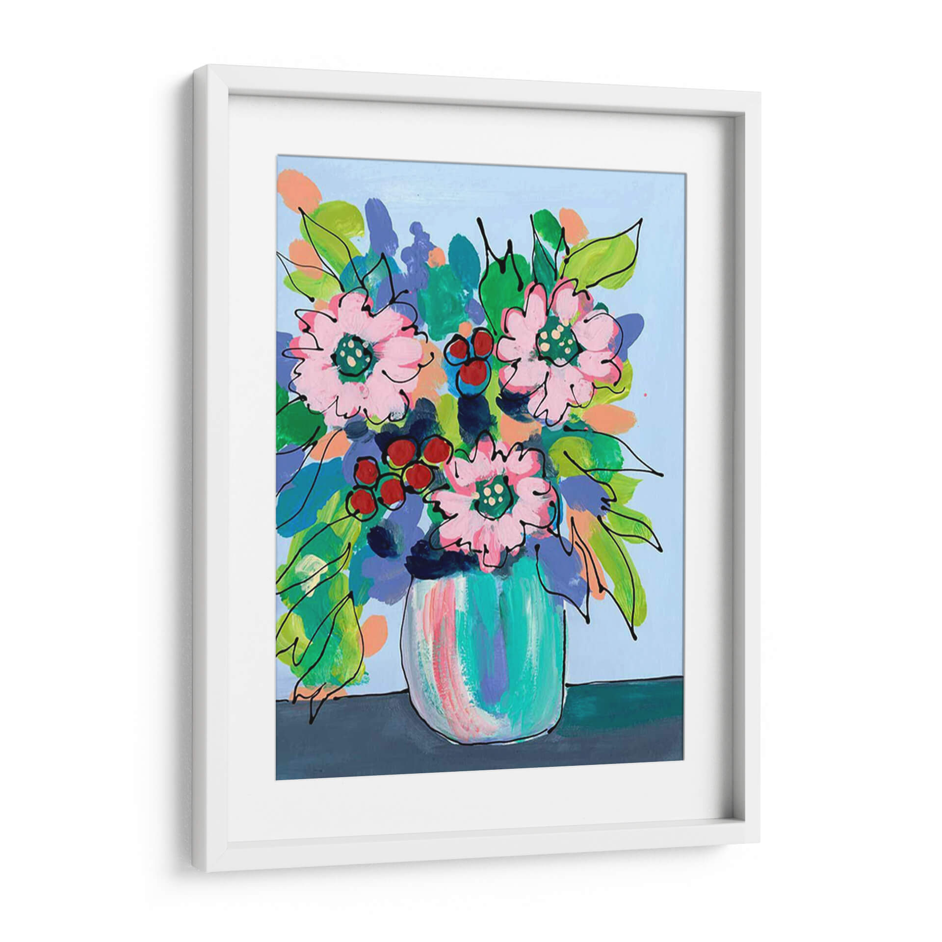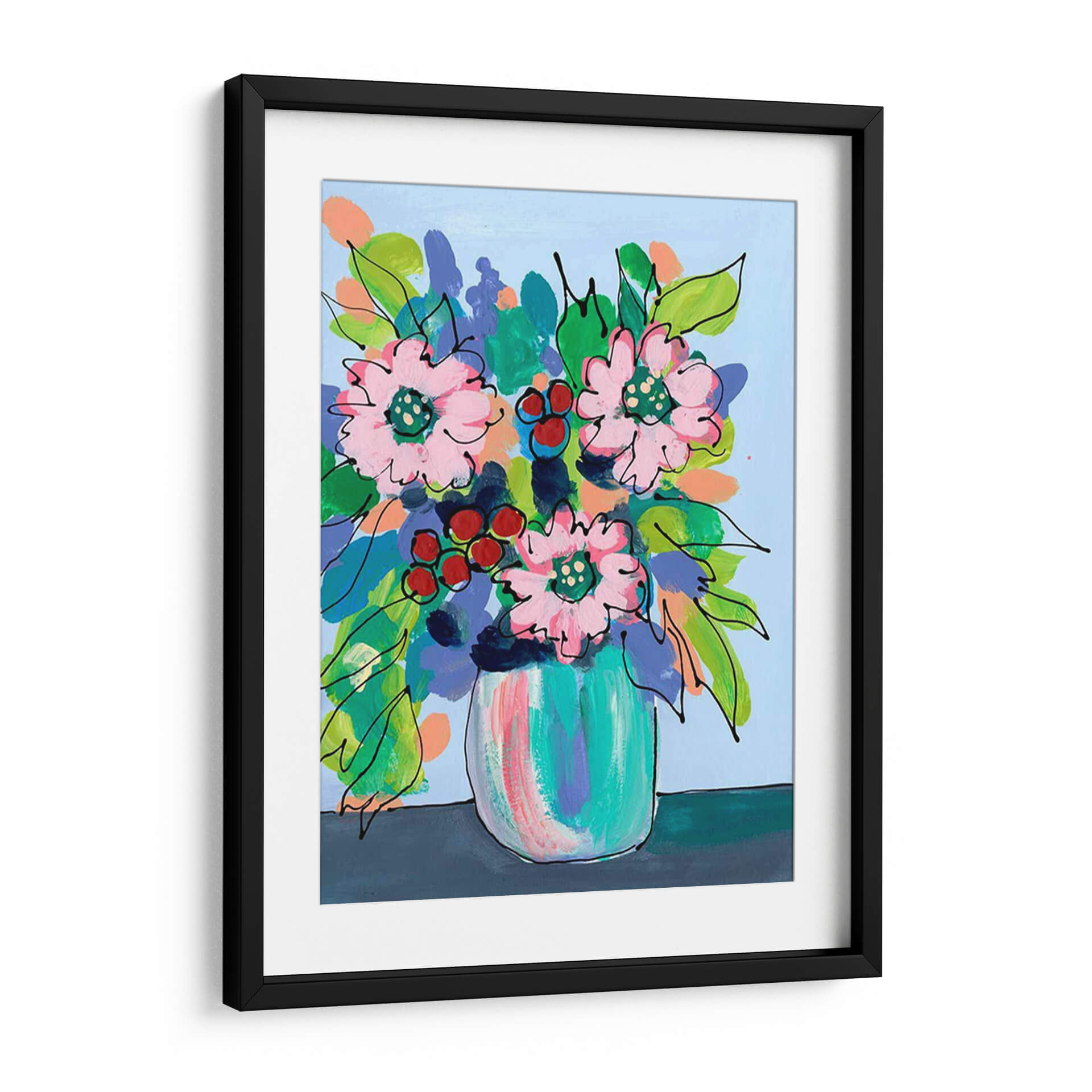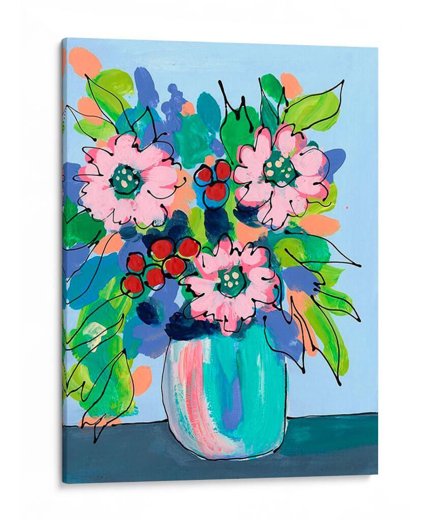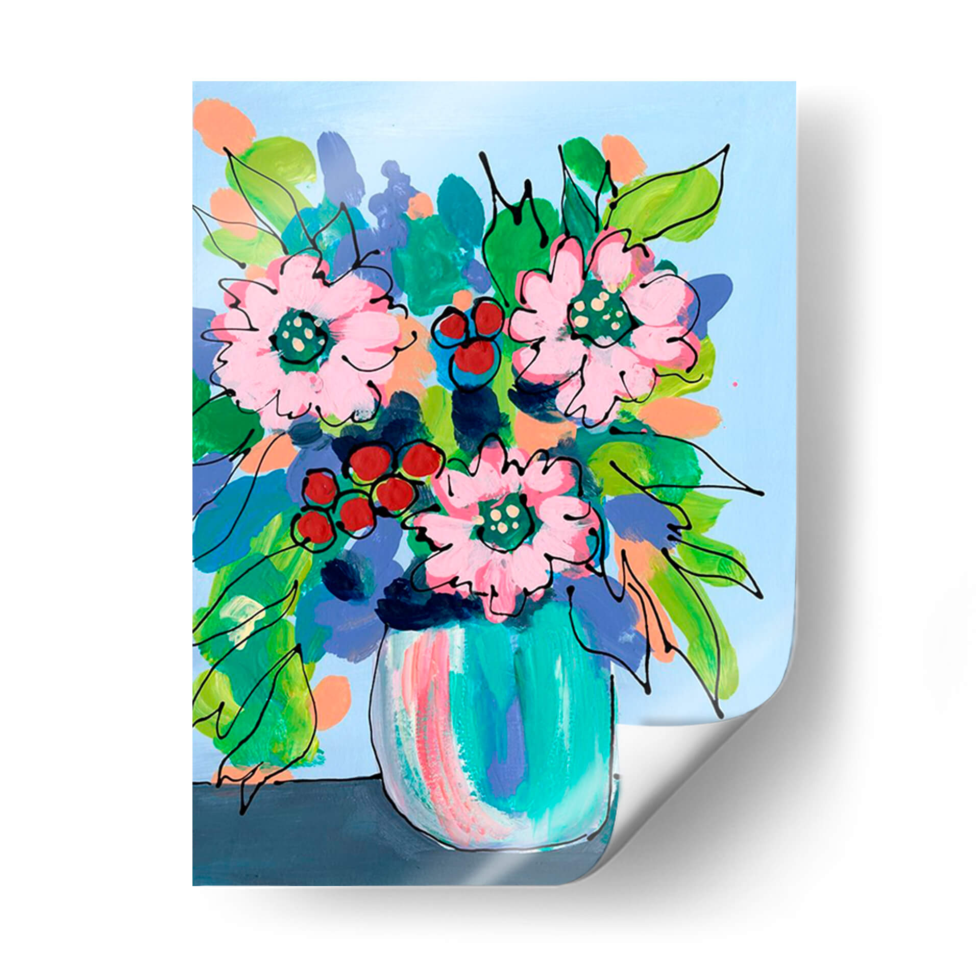 Inyecta vitalidad y un toque de alegría artística a tu hogar con "Floral Rowdy I", una vibrante obra de arte de Regina Moore. Este cautivador cuadro decorativo presenta un arreglo floral dinámico, donde las flores de pétalos rosados y vibrantes centros verdes contrastan audazmente con un follaje exuberante en tonos de azul, verde y toques de naranja. La composición juguetona y las pinceladas audaces transmiten una energía efervescente, perfecta para animar cualquier espacio. El jarrón turquesa, pintado con trazos sueltos y llenos de color, añade un elemento moderno y chic a la escena. El fondo de un suave cielo azul proporciona un lienzo sereno que permite que los elementos florales destaquen con toda su fuerza. "Floral Rowdy I" es ideal para espacios que buscan un punto focal lleno de color y personalidad, como una sala de estar contemporánea, un comedor luminoso o incluso un estudio creativo. Su estilo abstracto y expresivo lo convierte en una pieza versátil que puede complementar una variedad de decoraciones, desde las más sencillas hasta las más audaces. Deja que la frescura y el carácter de esta obra transformen tu entorno y reflejen tu gusto por el arte contemporáneo y lleno de vida.