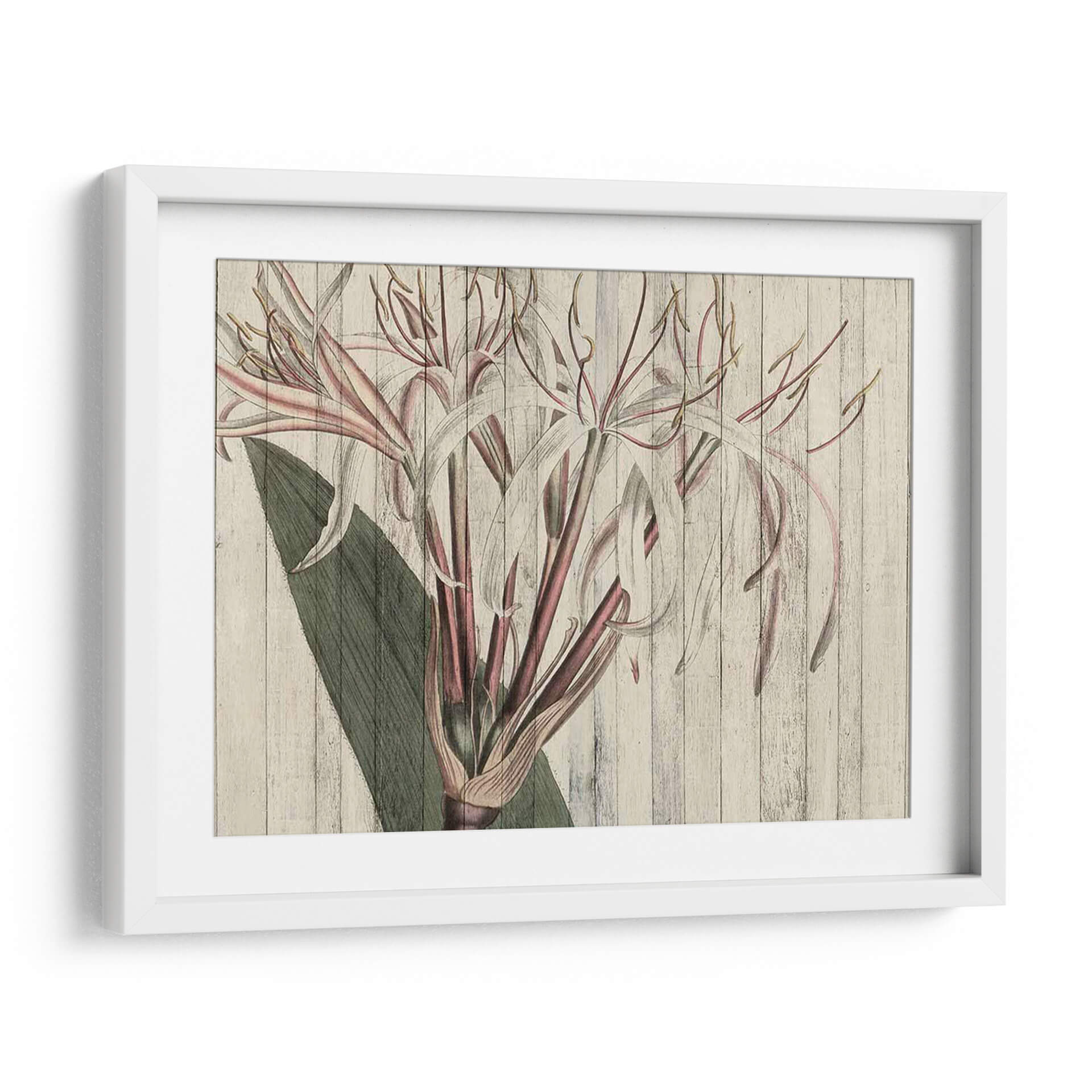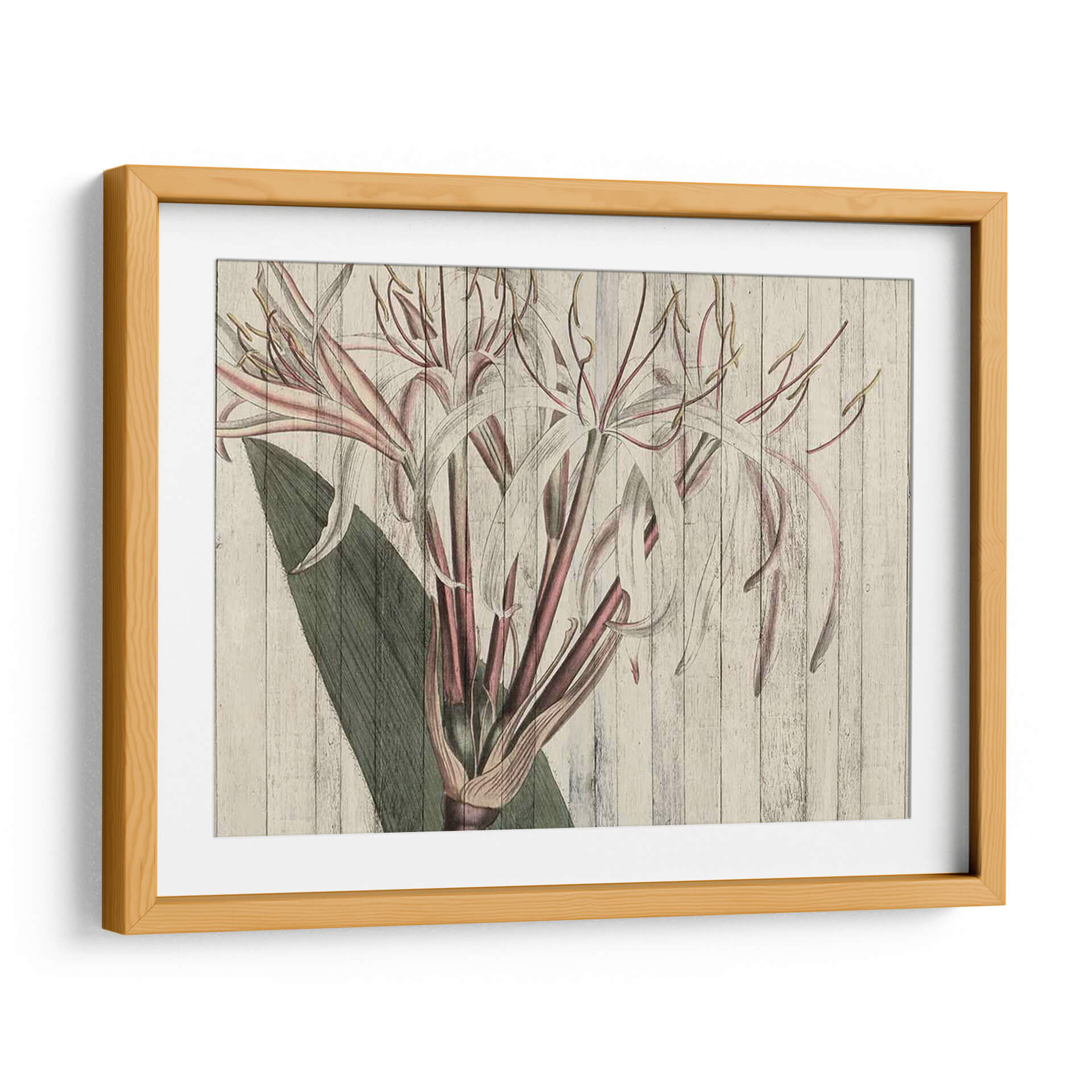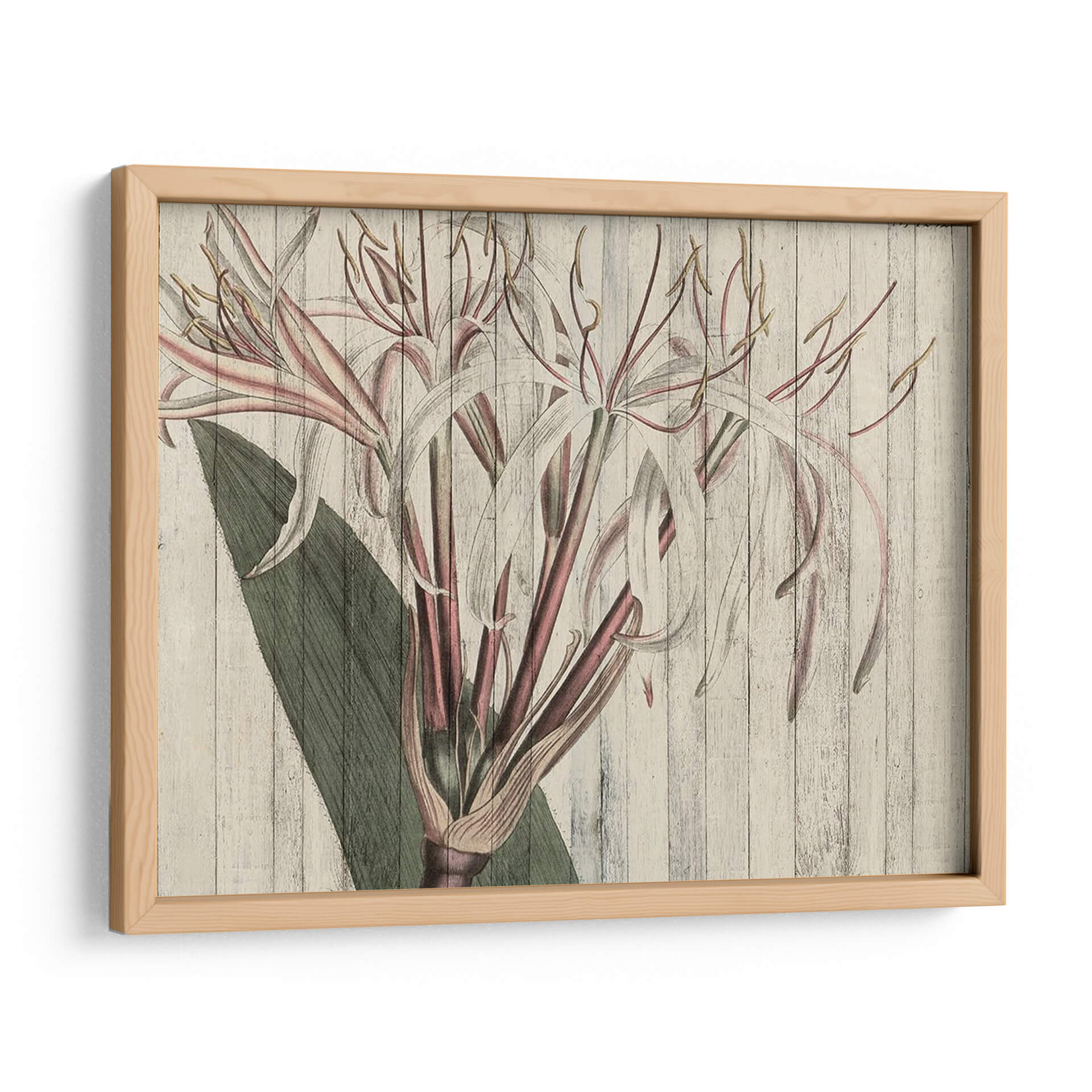 Transforma tu espacio con la delicada belleza de "Floral Rústico I", una obra de arte inspirada en la botánica que evoca la elegancia atemporal de la naturaleza. Este cuadro decorativo presenta una detallada ilustración de flores exóticas, con pétalos blancos y rosados que se despliegan con gracia sobre un fondo de tablones de madera rústica. Los tonos suaves y la composición equilibrada crean una atmósfera de calma y sofisticación, ideal para quienes buscan añadir un toque de serenidad y estilo a su hogar u oficina. La paleta de colores, dominada por blancos, rosados pálidos, verdes profundos y matices tierra, se integra perfectamente en una variedad de estilos decorativos, desde el rústico moderno hasta el escandinavo o el bohemio. La meticulosa representación de cada detalle floral, desde los estambres delicados hasta las hojas exuberantes, invita a la contemplación y añade profundidad visual a cualquier habitación. Este lienzo es más que una simple decoración; es una ventana a la belleza natural que aporta una sensación de paz y conexión con el entorno. Perfecto para salones, dormitorios, estudios o recibidores, "Floral Rústico I" es la elección perfecta para infundir a tu entorno un aire de refinamiento botánico y encanto clásico.