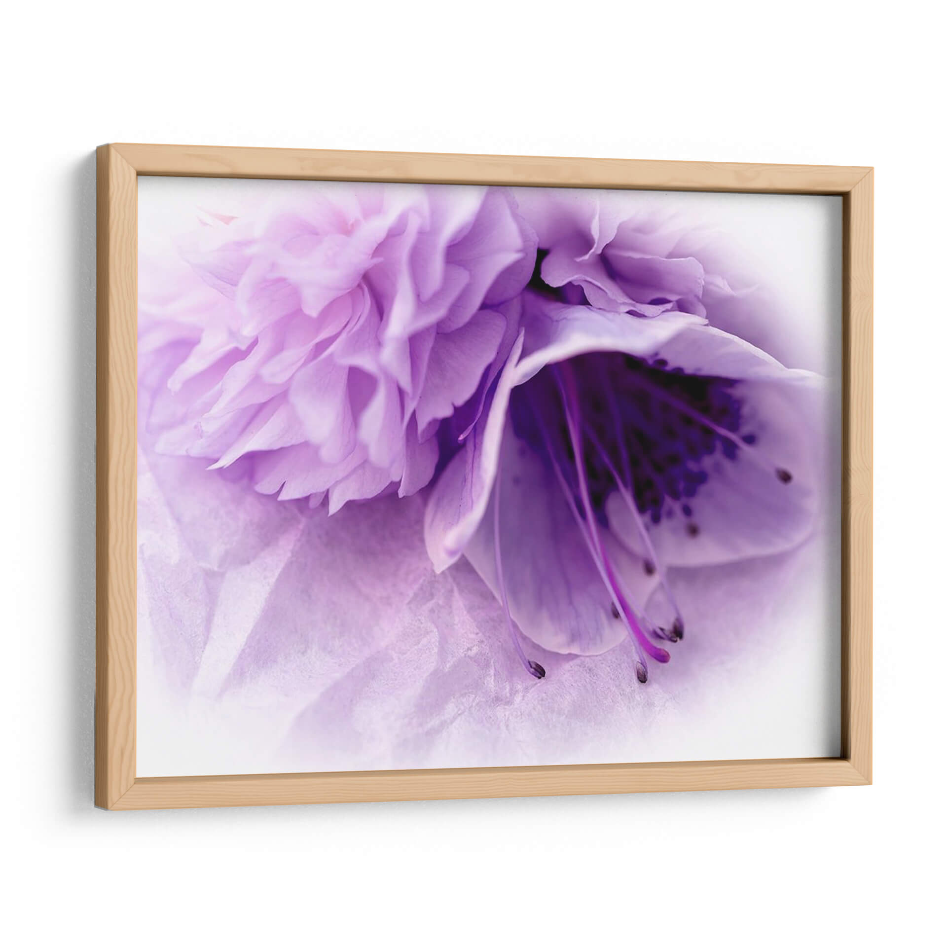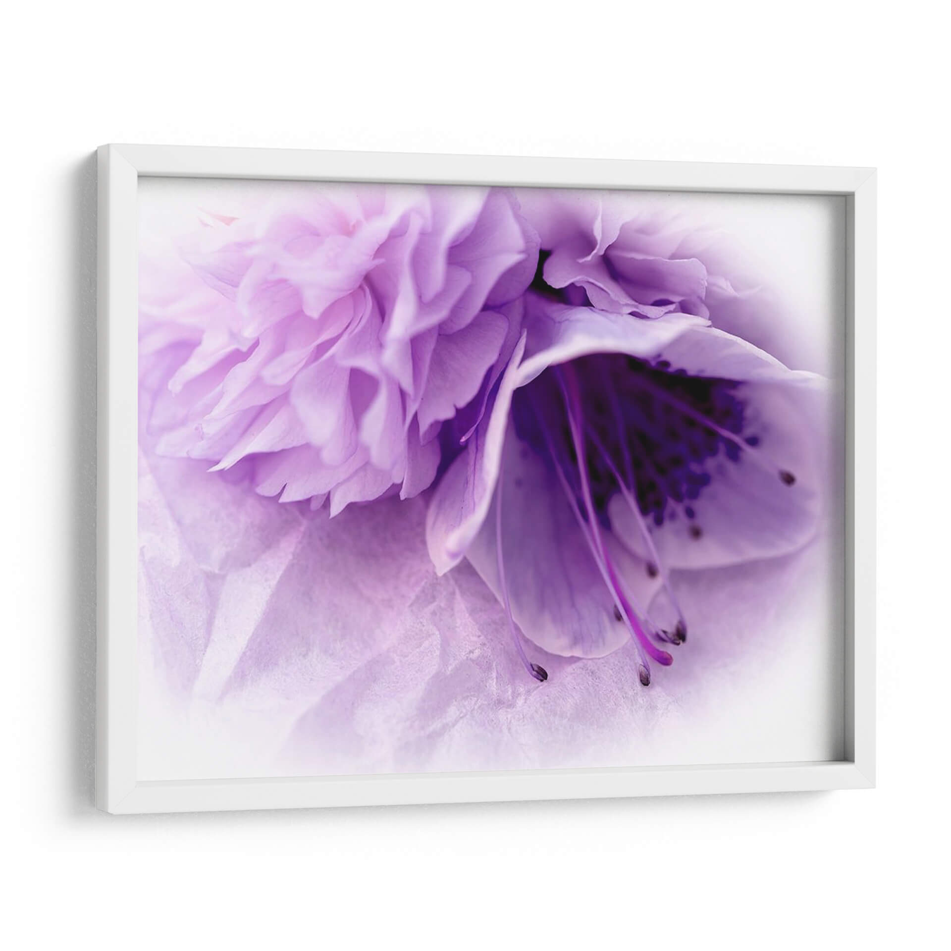 Sumérgete en la delicada belleza de "Florales De Ensueño En Violeta III", una obra maestra floral que captura la esencia de la naturaleza con un toque etéreo y sofisticado. Este cuadro decorativo presenta un primer plano íntimo de una flor en tonos violetas y lavandas, cuyas pétalos suaves y texturizados se despliegan en una composición cautivadora. La paleta de colores, dominada por suaves gradaciones de violeta, crea una atmósfera de serenidad y ensueño, invitando a la contemplación y la calma. El juego de luces y sombras realza la profundidad y el detalle de la flor, desde sus intrincados estambres hasta la delicada caída de sus pétalos. Ideal para espacios que buscan un acento de color sutil pero impactante, esta pieza es perfecta para dormitorios, salas de estar o incluso estudios, aportando un aire de elegancia floral y tranquilidad. La obra de Paul McCreery trasciende la mera representación para convertirse en una experiencia visual, evocando la fragilidad y la resiliencia de la belleza natural. Añade un toque de sofisticación y serenidad a tu hogar con este cuadro decorativo de ensueño, una ventana a un jardín de fantasía que inspira paz y admiración.
