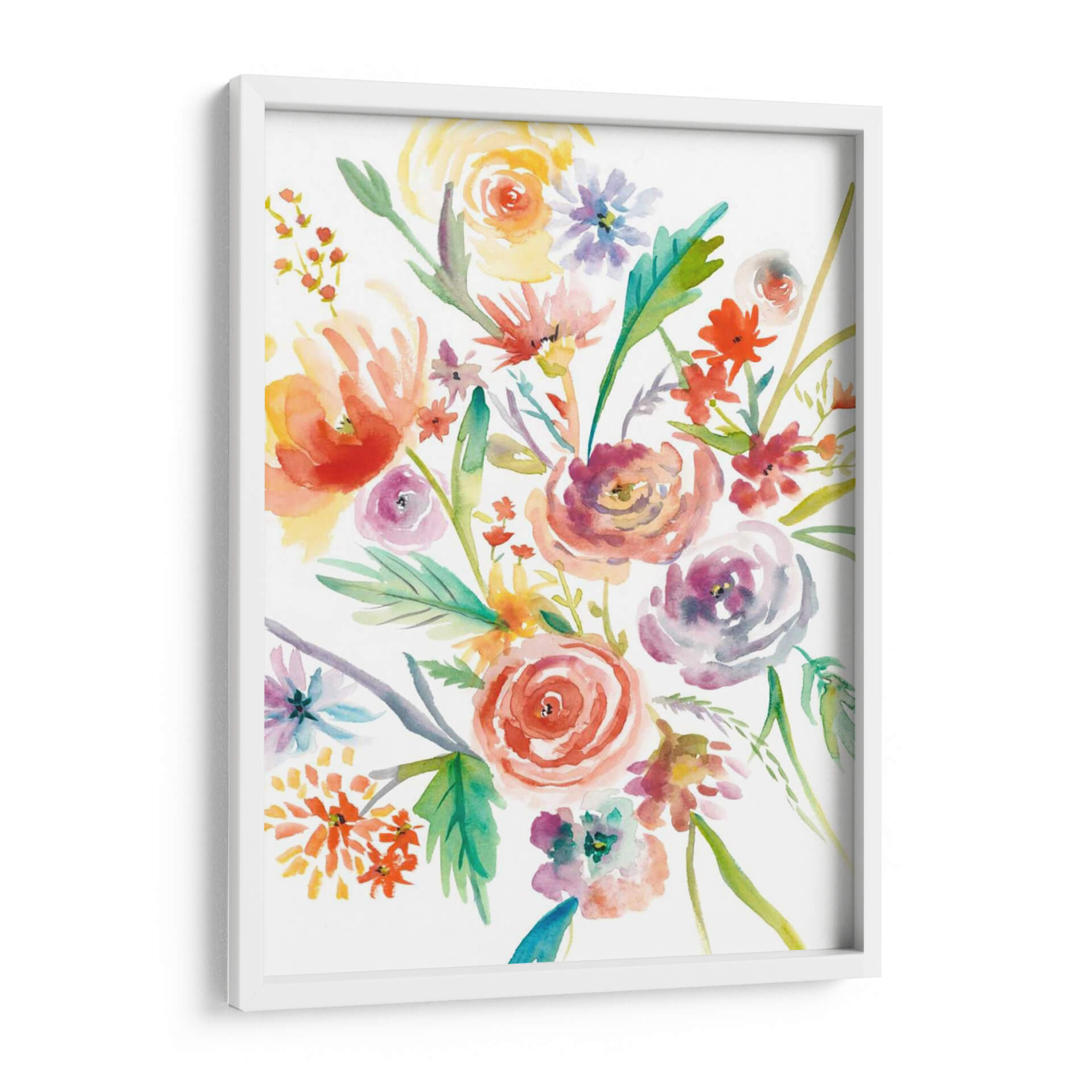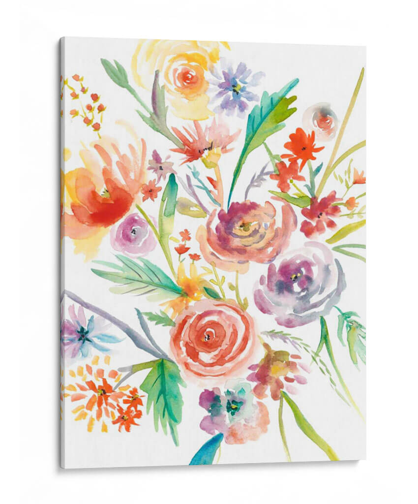 Sumérgete en la delicadeza y el color con "Florales Flotantes I", una obra de arte de Chariklia Zarris que captura la esencia de un jardín vibrante en plena floración. Esta pieza, ejecutada con una técnica que evoca la ligereza y la transparencia de la acuarela, presenta un despliegue de flores en tonos pastel y vibrantes que parecen danzar sobre un fondo neutro. Los pétalos se entrelazan en una composición orgánica y fluida, invitando a la contemplación y a la serenidad. Los naranjas, rosas, morados y amarillos se mezclan armónicamente, creando una atmósfera alegre y optimista, pero a la vez sutil y elegante. Los toques de verde de las hojas y tallos aportan frescura y vitalidad, equilibrando la paleta cromática. Este cuadro decorativo es ideal para añadir un toque de naturaleza y sofisticación a cualquier espacio, desde una sala de estar luminosa hasta un dormitorio acogedor o una oficina que busque inspiración. Su estilo contemporáneo y su ejecución delicada lo convierten en una pieza versátil, capaz de complementar tanto decoraciones modernas como más clásicas, aportando siempre un punto de luz y color. "Florales Flotantes I" no es solo una obra de arte, es una invitación a la belleza efímera y a la alegría de los pequeños detalles.