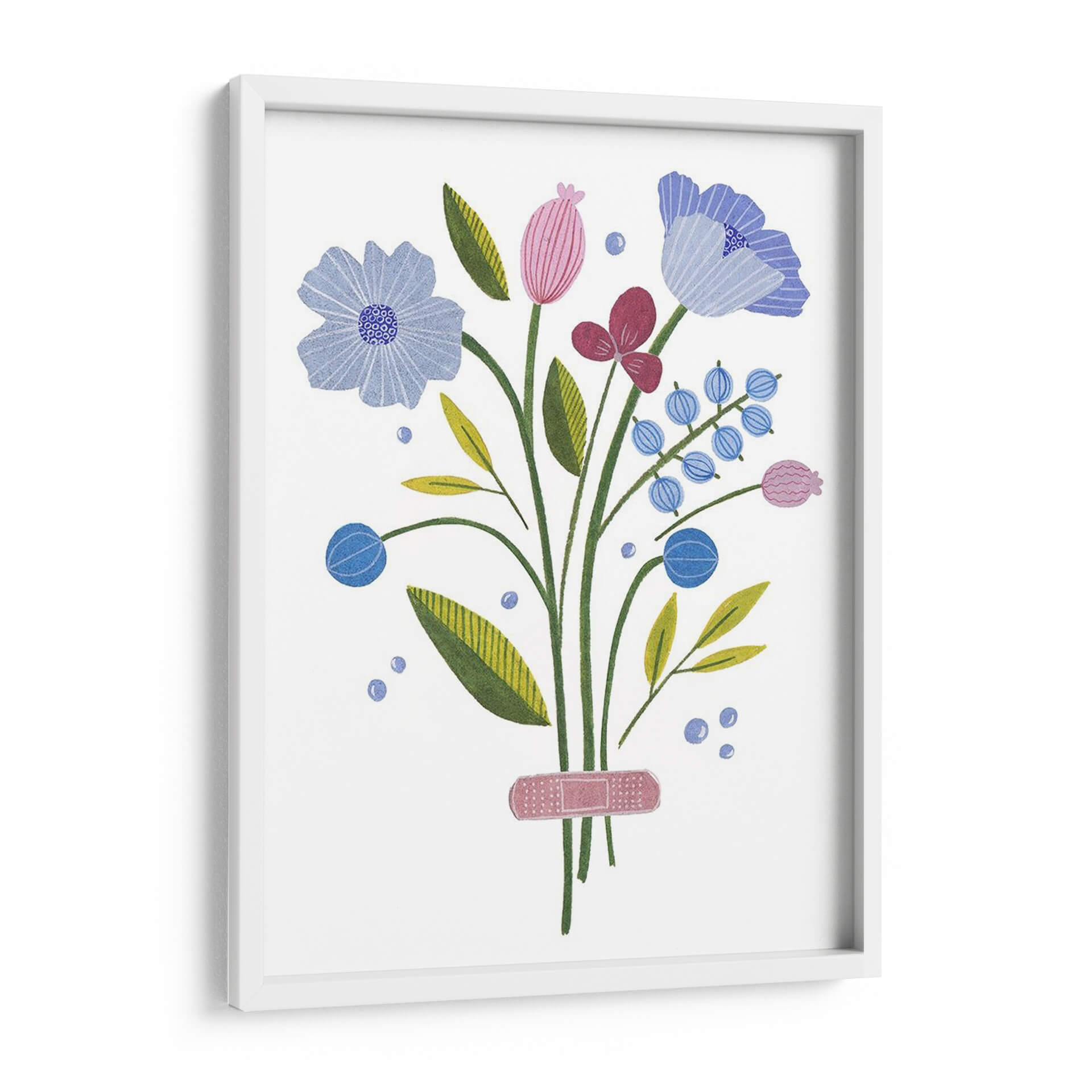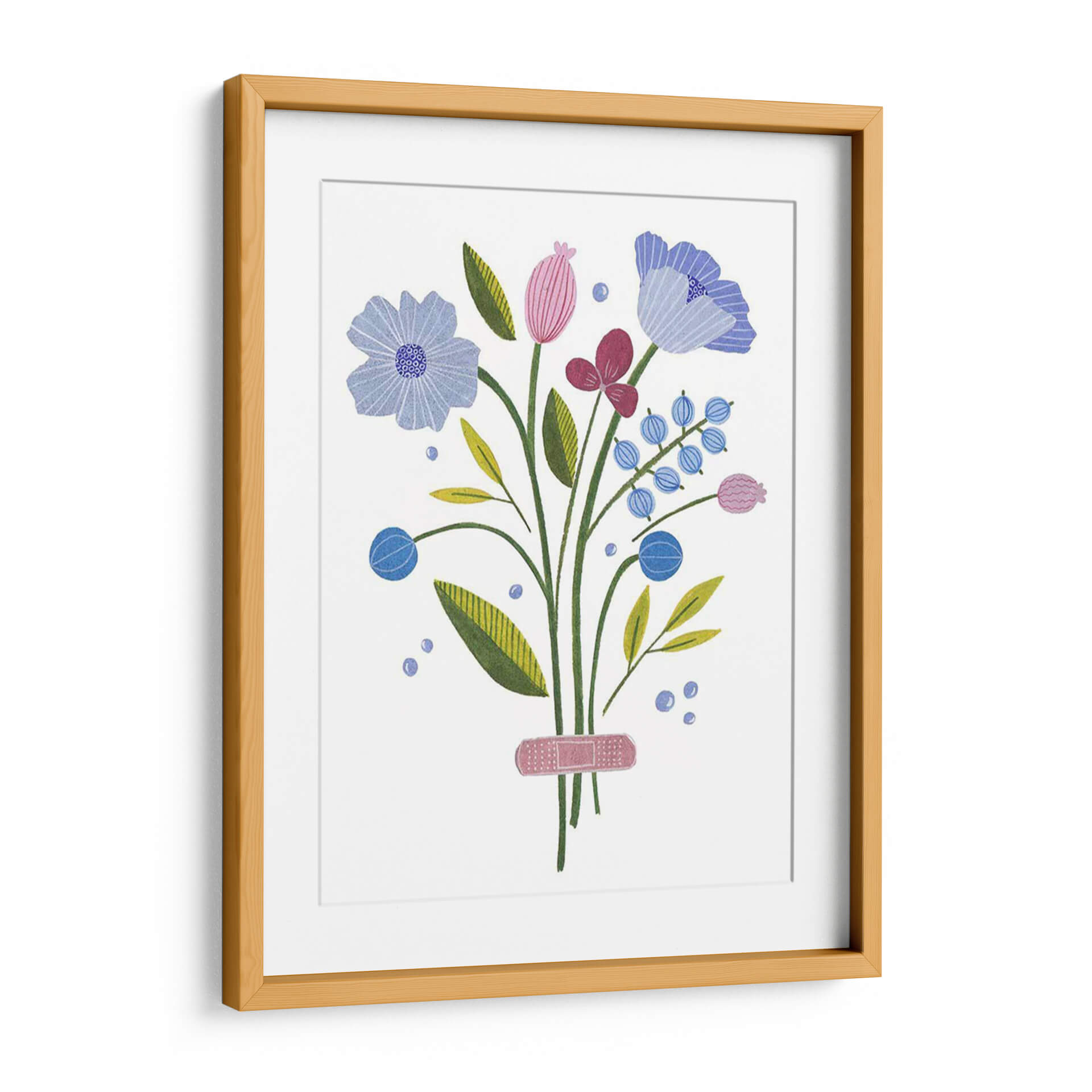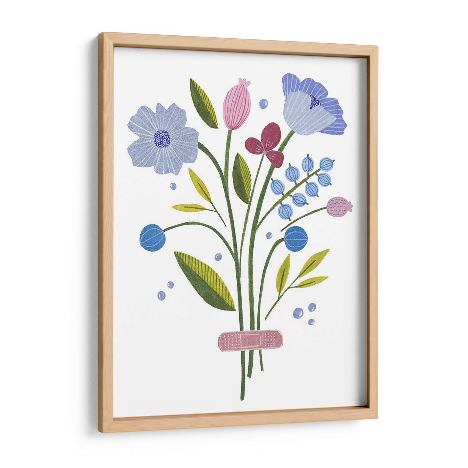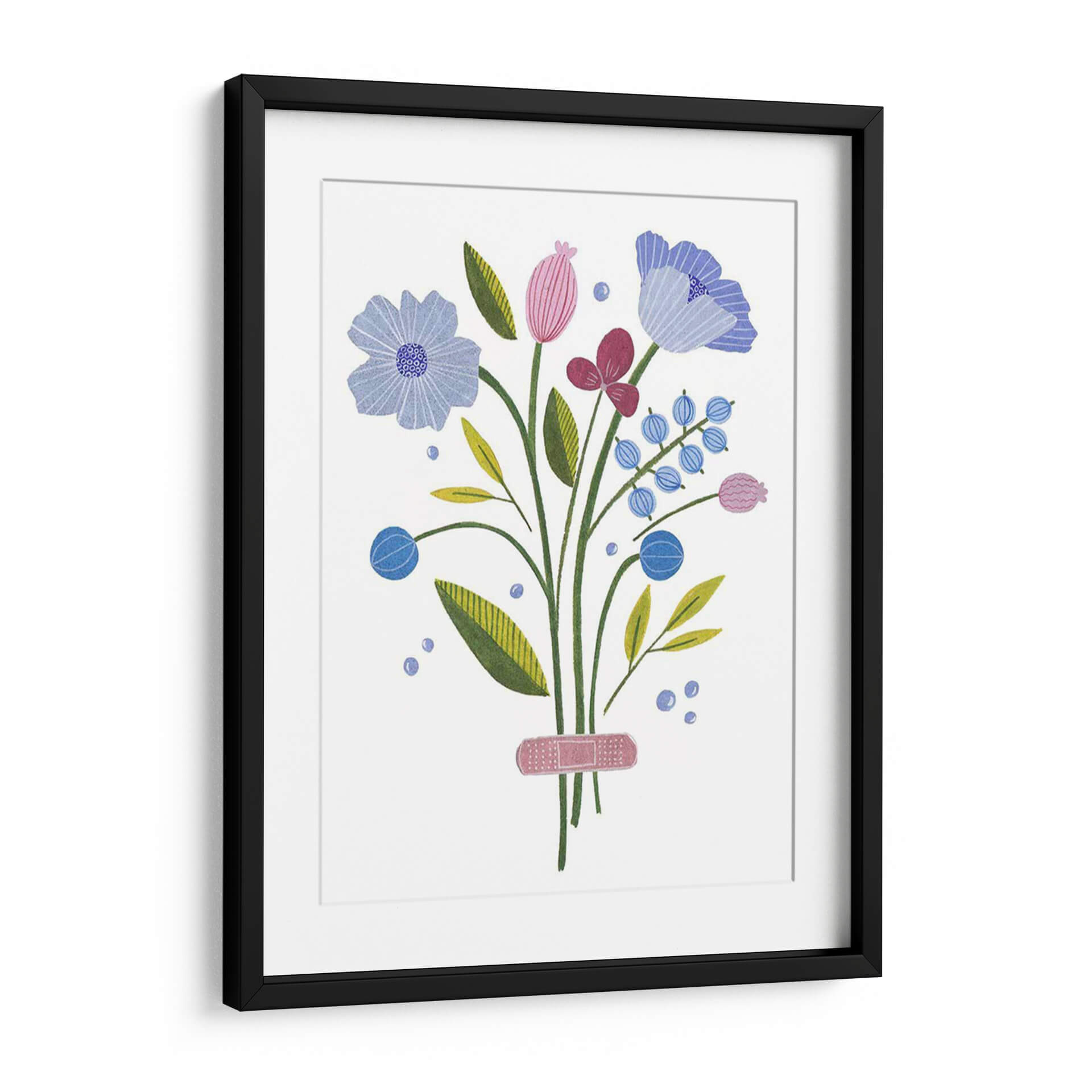 Sumérgete en la delicadeza y el optimismo de "Floreciendo De Nuevo Yo", una obra de arte de Melissa Wang que celebra la resiliencia y el renacimiento. Este cuadro decorativo presenta un vibrante ramo de flores en tonos pastel, donde suaves azules, rosas pálidos y toques de burdeos se entrelazan con verdes hoja y delicados capullos. La composición, con un estilo que evoca la ilustración botánica moderna y un toque lúdico, se centra en la belleza intrínseca de la naturaleza en proceso de curación y crecimiento. La presencia de una tirita en la base del ramo añade un elemento conceptual inesperado, simbolizando la recuperación, la superación y la fuerza interior que florece incluso tras la adversidad. Ideal para espacios que buscan transmitir serenidad, esperanza y un toque de color suave, como dormitorios, estudios o salas de estar, este lienzo es una invitación a contemplar la belleza de la renovación. Su estética encantadora y su mensaje inspirador lo convierten en una adición perfecta para cualquier hogar que valore el arte con alma y significado profundo. Un recordatorio visual de que, tras cualquier herida, la vida y la belleza pueden volver a florecer con renovada vitalidad.