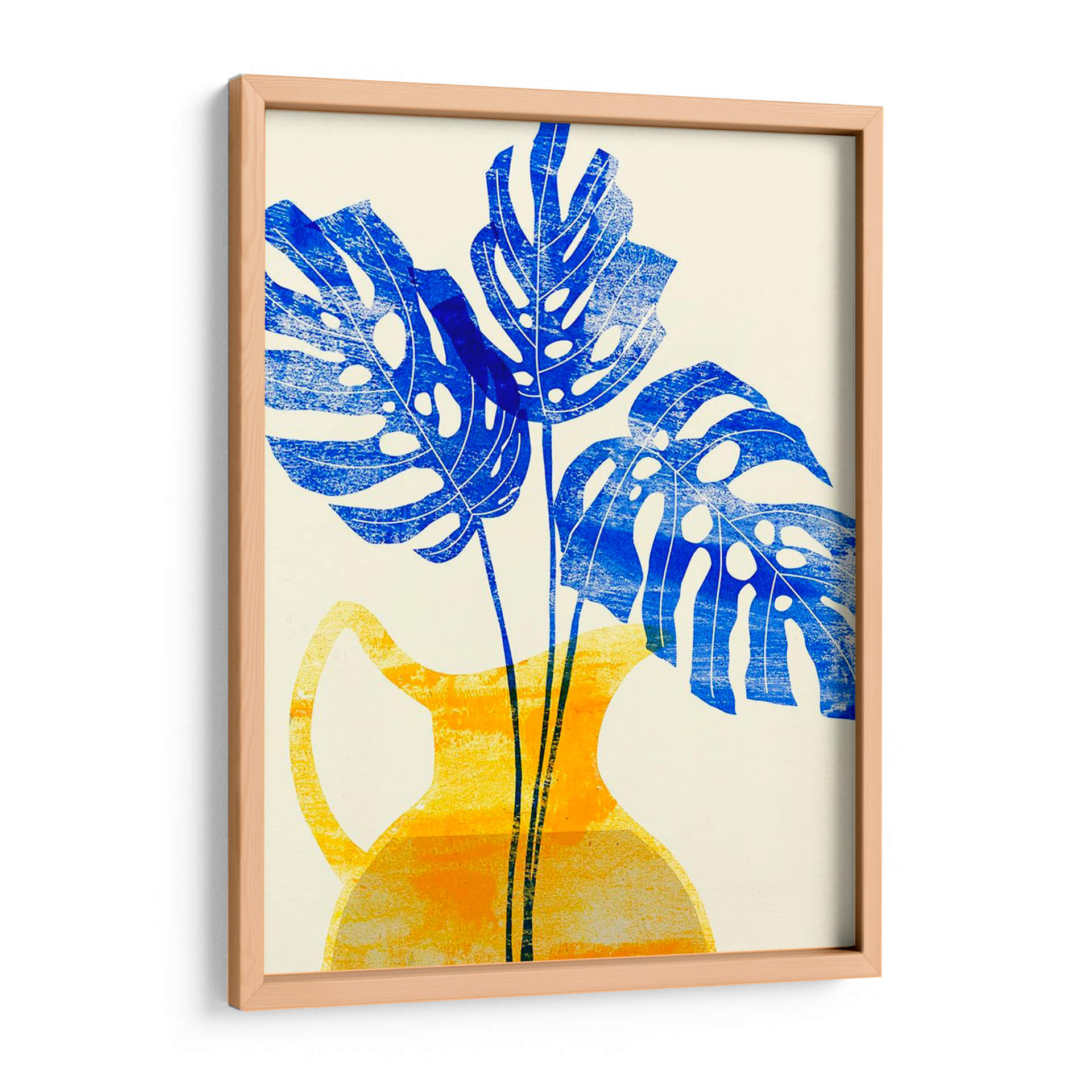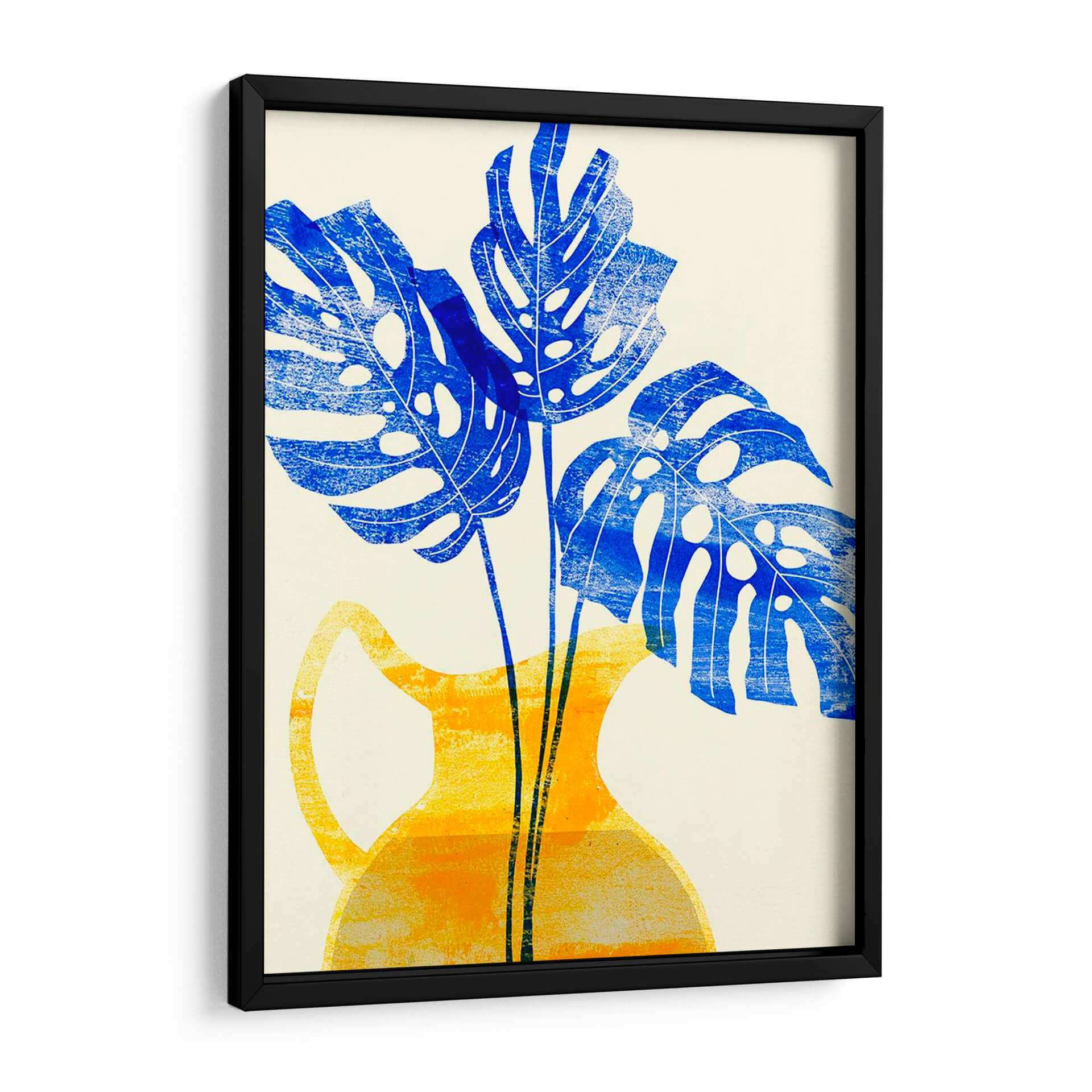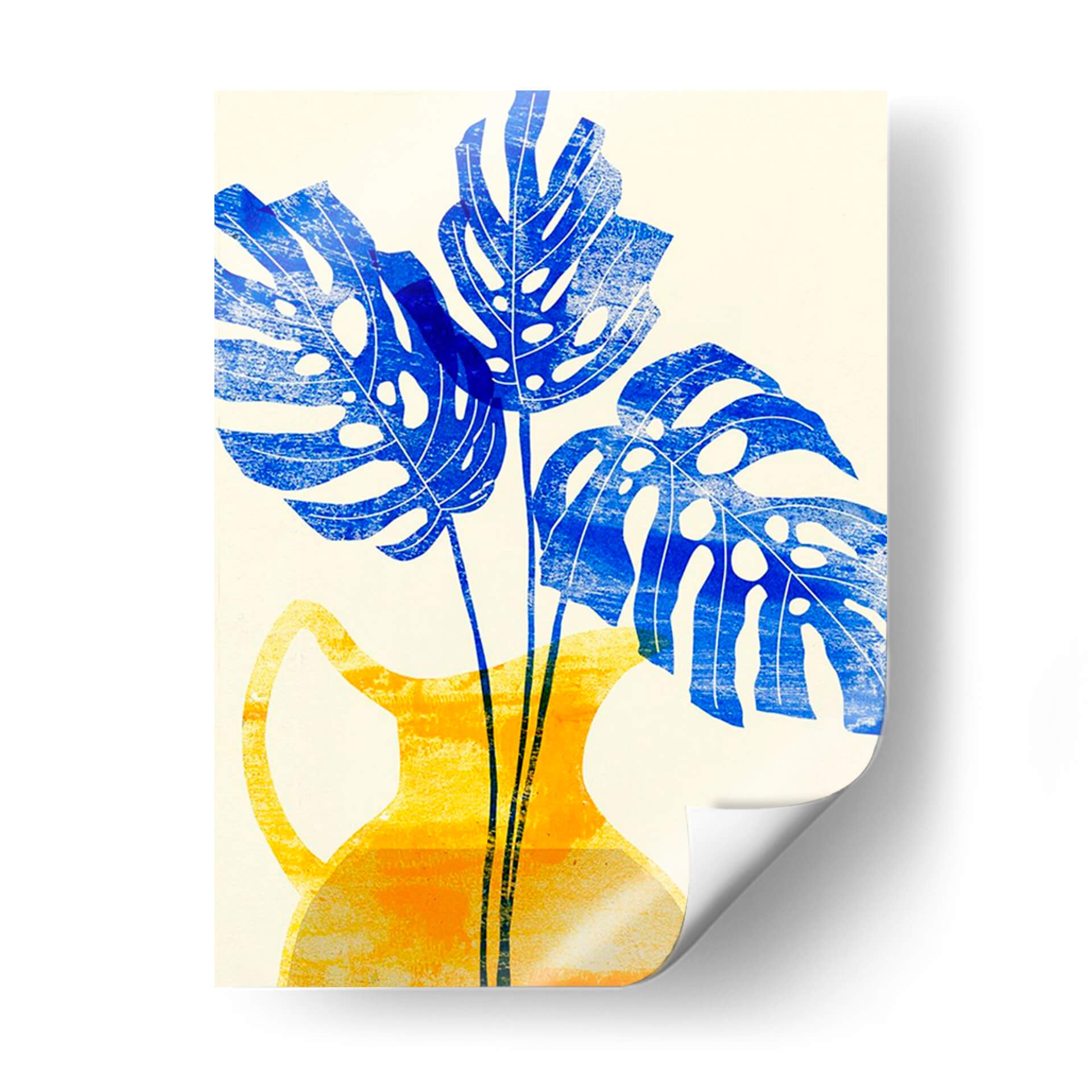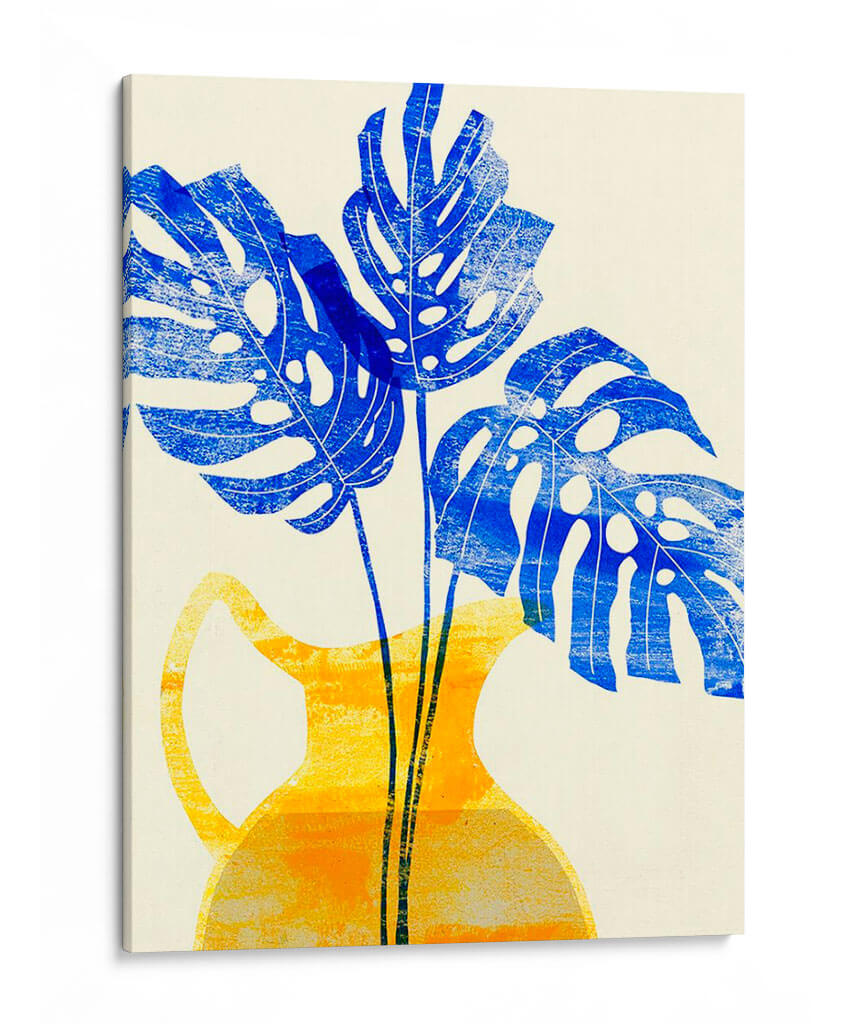 Embellece tu hogar con el vibrante cuadro decorativo "Florero Amarillo Iii" de Melissa Wang. Esta obra de arte cautiva con su audaz representación de hojas de monstera en un intenso azul cobalto, contrastando elegantemente con un jarrón de estilo contemporáneo en tonos amarillos y anaranjados. La composición, con sus formas estilizadas y texturas sutiles, evoca una sensación de frescura y vitalidad, aportando un toque de naturaleza moderna a cualquier espacio. Ideal para salones, comedores u oficinas que buscan un acento de color y diseño. La técnica, que recuerda a una xilografía o serigrafía, añade una cualidad artesanal y única a la pieza, invitando a la contemplación. "Florero Amarillo Iii" es más que una simple decoración de pared; es una declaración de estilo que fusiona lo orgánico con lo geométrico, creando un ambiente lleno de energía y sofisticación. Transforma tus paredes con esta pieza distintiva que promete ser un punto focal y una fuente de inspiración diaria. Una adición perfecta para amantes del arte contemporáneo y la decoración que celebra la botánica con un giro artístico moderno.