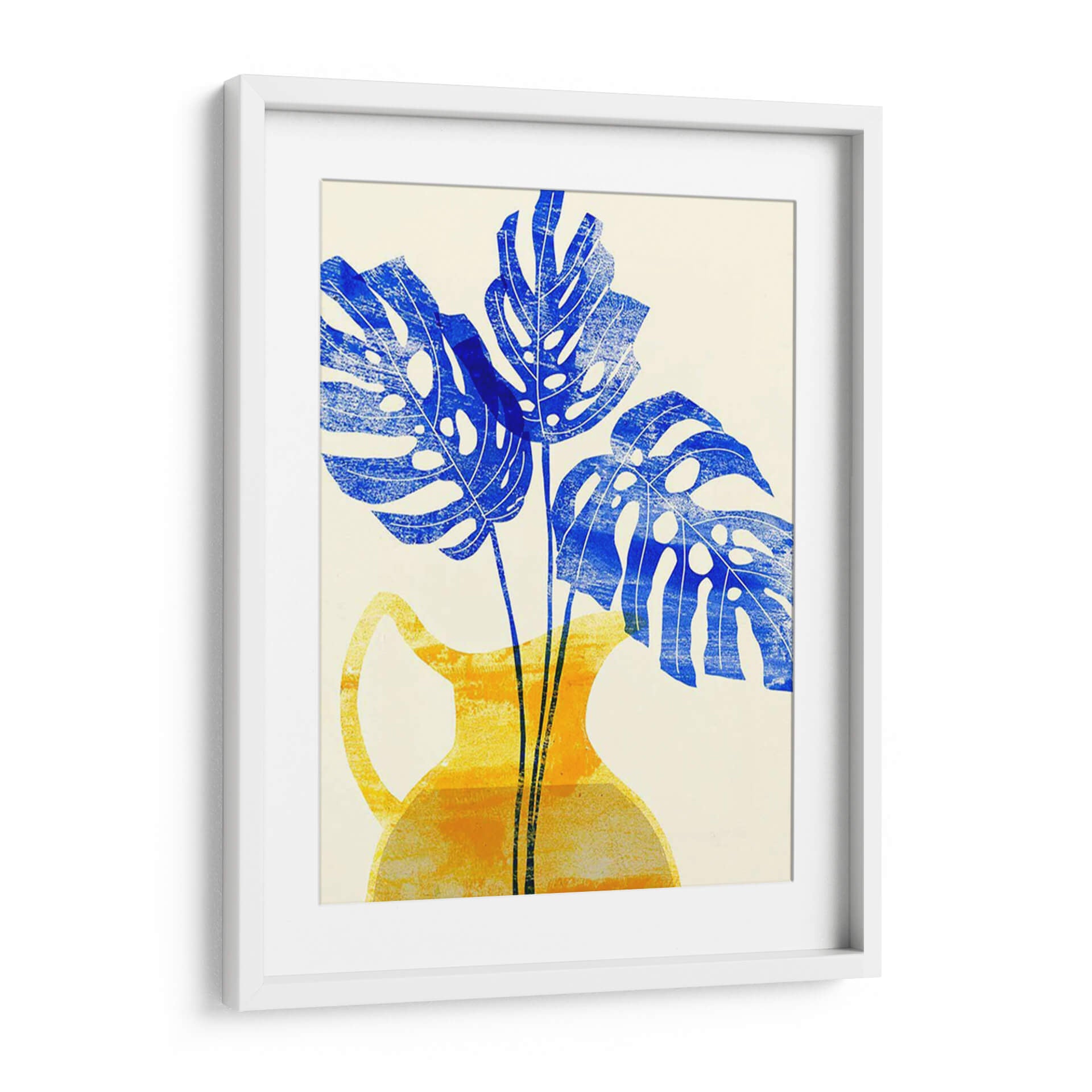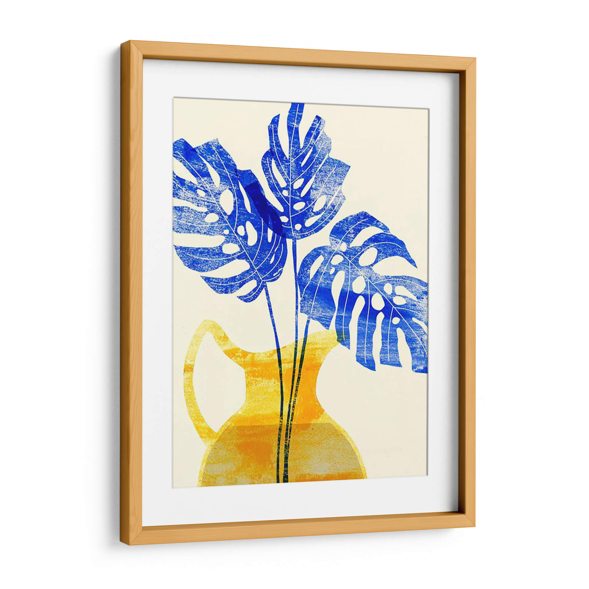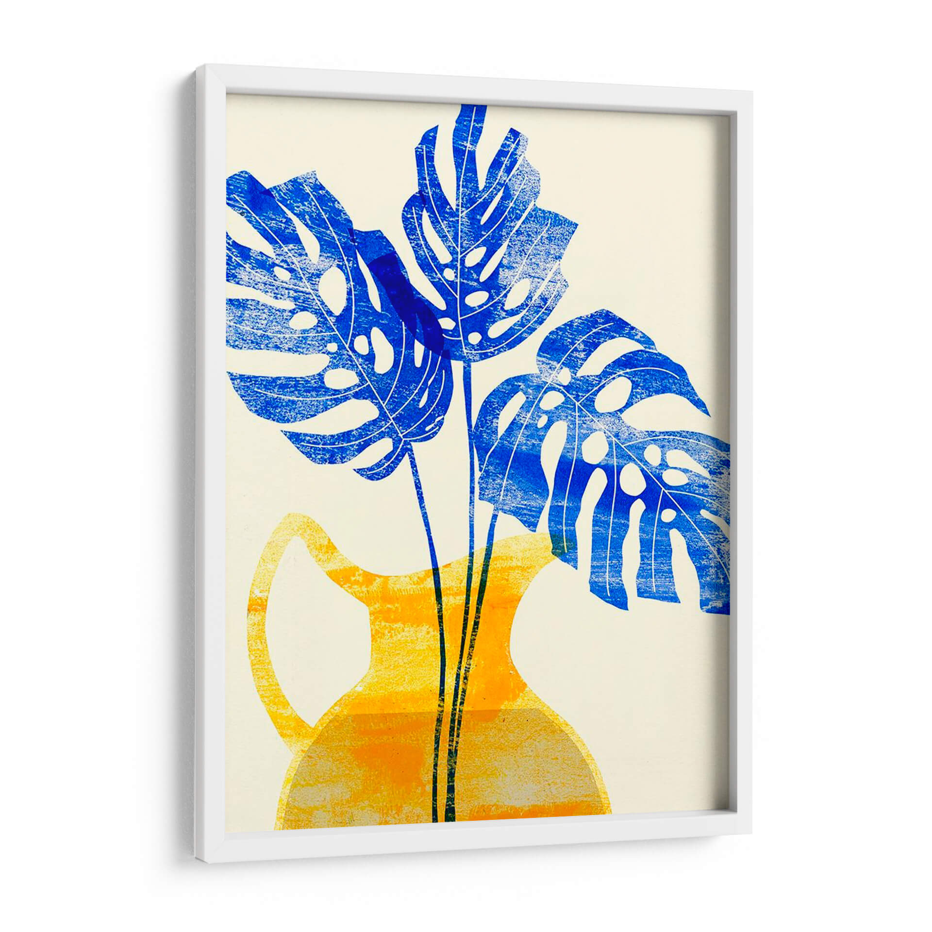 Embellece tu hogar con el vibrante cuadro decorativo "Florero Amarillo Iii" de Melissa Wang. Esta obra de arte cautiva con su audaz representación de hojas de monstera en un intenso azul cobalto, contrastando elegantemente con un jarrón de estilo contemporáneo en tonos amarillos y anaranjados. La composición, con sus formas estilizadas y texturas sutiles, evoca una sensación de frescura y vitalidad, aportando un toque de naturaleza moderna a cualquier espacio. Ideal para salones, comedores u oficinas que buscan un acento de color y diseño. La técnica, que recuerda a una xilografía o serigrafía, añade una cualidad artesanal y única a la pieza, invitando a la contemplación. "Florero Amarillo Iii" es más que una simple decoración de pared; es una declaración de estilo que fusiona lo orgánico con lo geométrico, creando un ambiente lleno de energía y sofisticación. Transforma tus paredes con esta pieza distintiva que promete ser un punto focal y una fuente de inspiración diaria. Una adición perfecta para amantes del arte contemporáneo y la decoración que celebra la botánica con un giro artístico moderno.