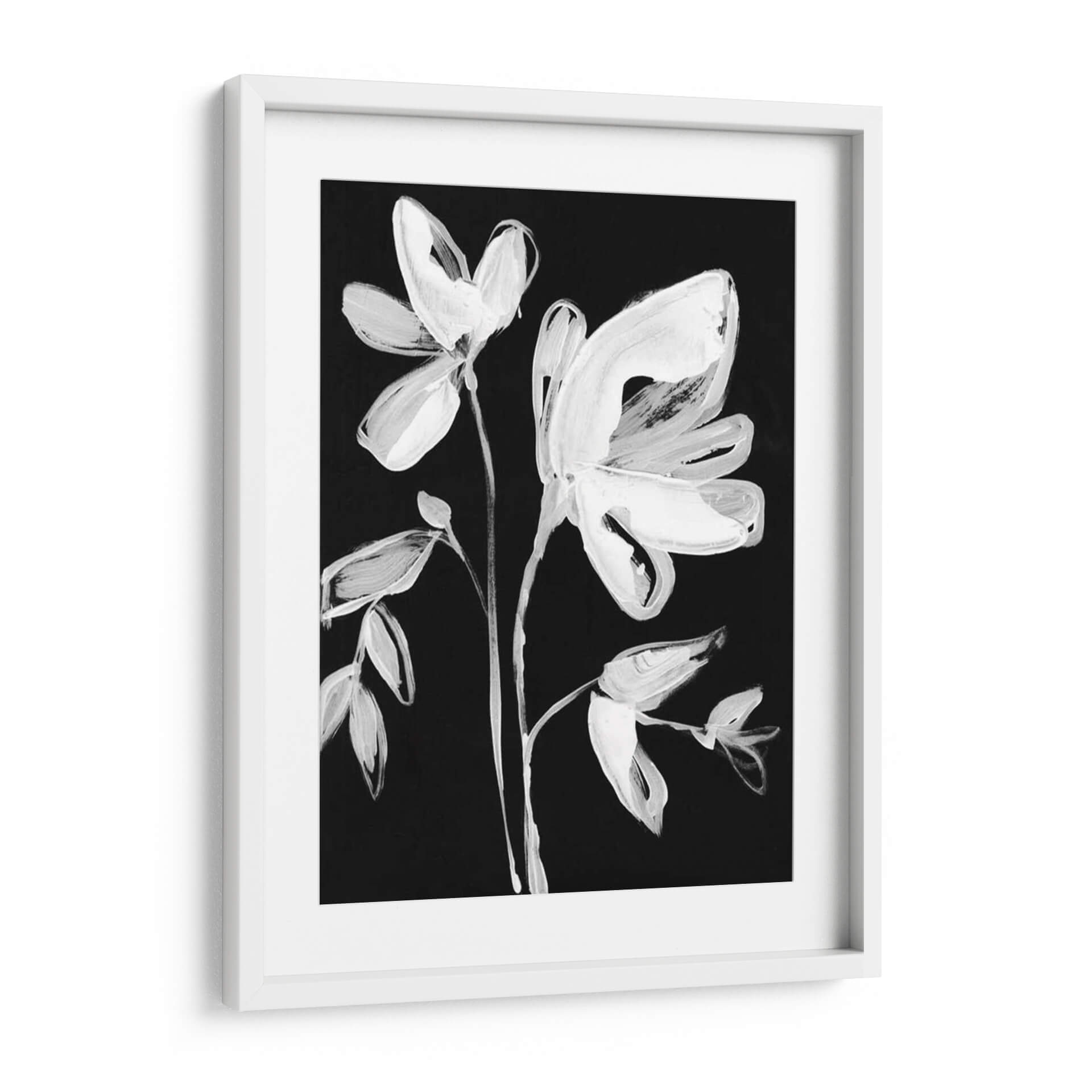 Embellece tu espacio con la delicadeza etérea de "Flores Caprichosas Blancas II", una obra maestra contemporánea de Jennifer Goldberger. Este cuadro decorativo presenta una cautivadora representación de flores en blanco puro sobre un profundo fondo negro, evocando una sensación de elegancia atemporal y serenidad. Las pinceladas sueltas y expresivas capturan la esencia efímera de los pétalos, creando un contraste visual impactante que atrae la mirada. Ideal para quienes buscan añadir un toque de sofisticación natural a su hogar u oficina, esta pieza se integra a la perfección en diversos estilos decorativos, desde el minimalista hasta el moderno o incluso el ecléctico. Su composición vertical y el potente contraste entre blanco y negro la convierten en un punto focal ideal para pasillos, salones o dormitorios, aportando un aire de calma y refinamiento. Descubre la belleza sutil y el poder del minimalismo floral con este exquisito cuadro decorativo.