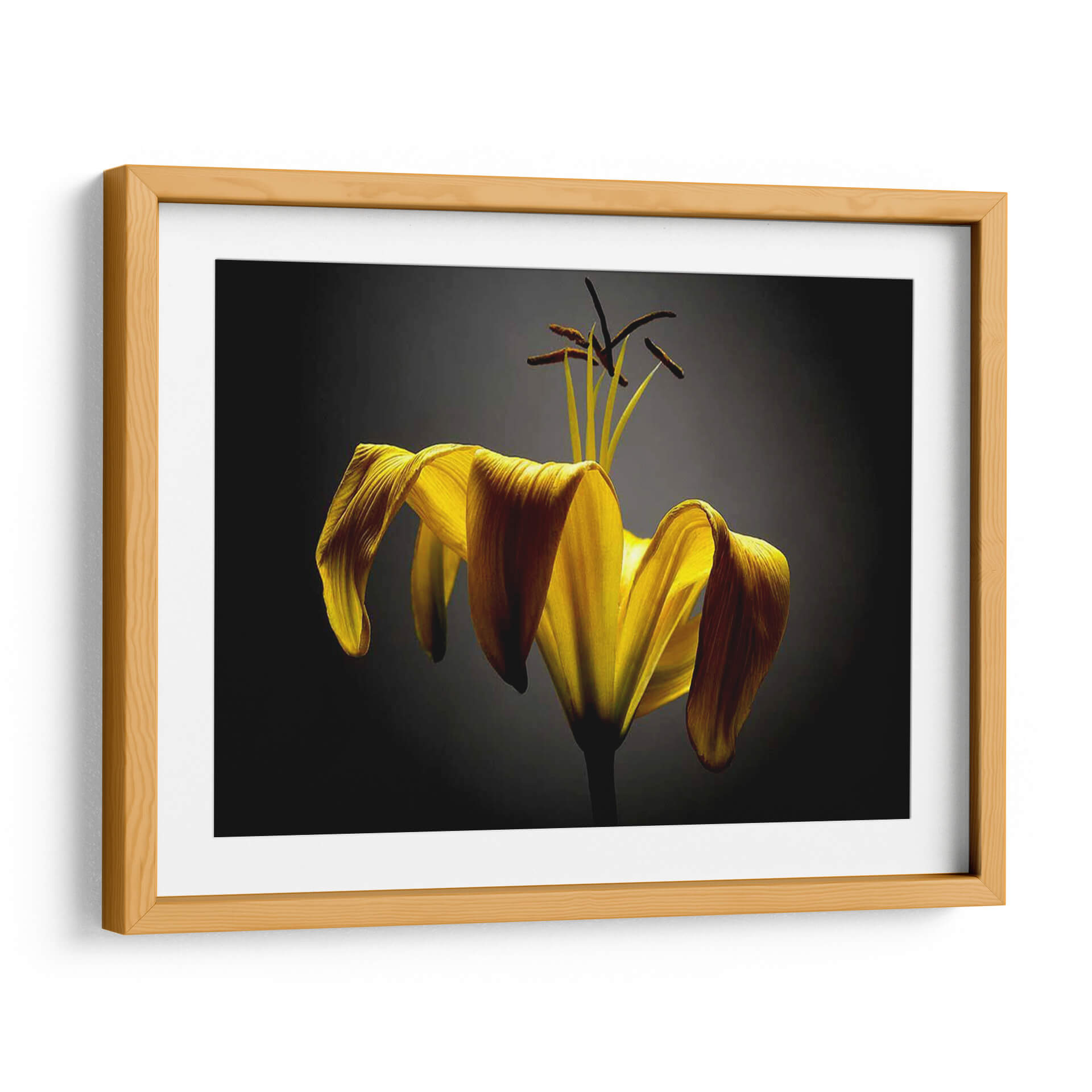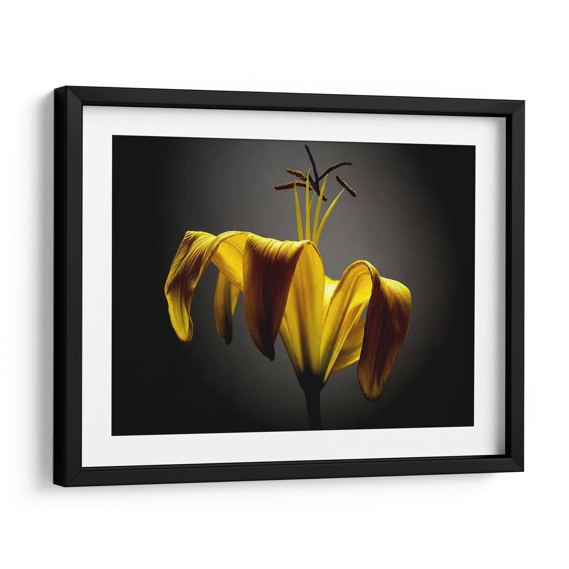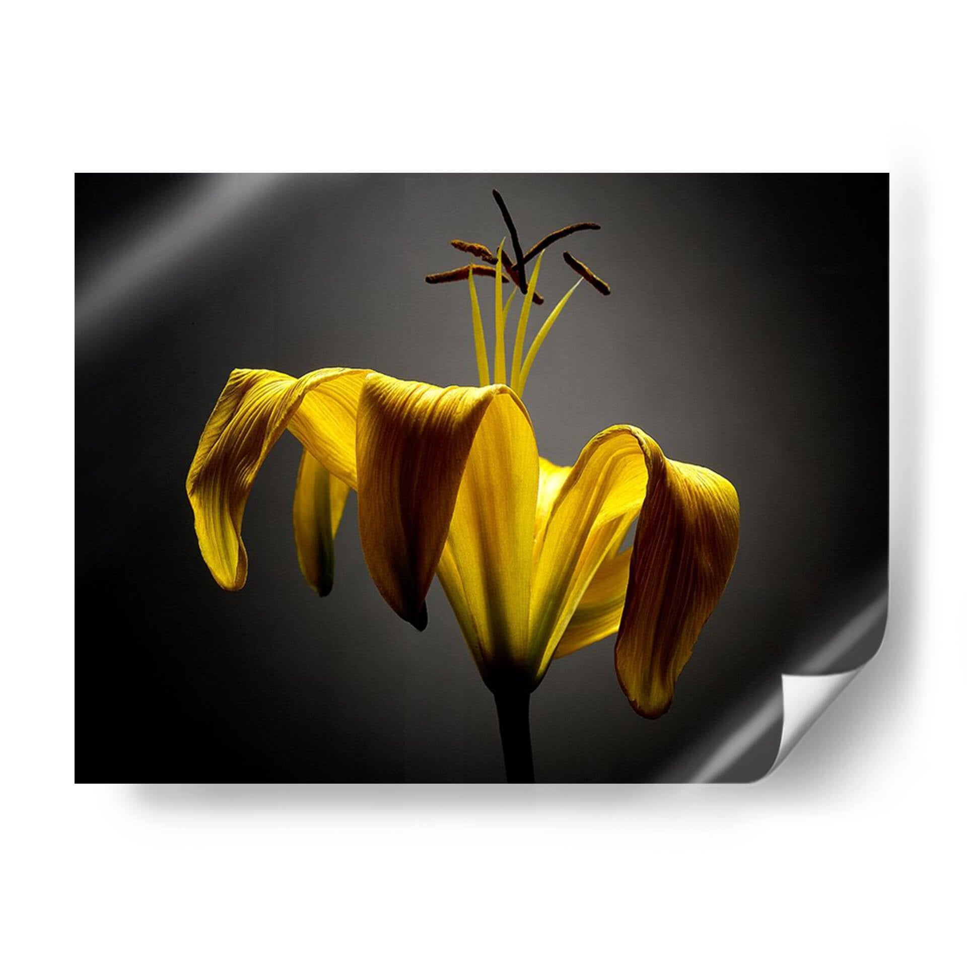 Sumérgete en la belleza melancólica de "Flores De Estudio V", una obra maestra de James McLoughlin que captura la esencia efímera de la naturaleza. Este cuadro decorativo presenta un lirio amarillo vibrante en un estado de delicada decadencia, con pétalos caídos que irradian una calidez dorada contra un fondo de carbón profundo. La iluminación dramática resalta la textura sutil y las suaves curvas de la flor, creando una atmósfera íntima y reflexiva. La composición se centra en la flor, permitiendo que su forma expresiva y su rica paleta de amarillos y marrones dominen el espacio visual. Ideal para añadir un toque de sofisticación botánica a cualquier hogar u oficina, esta pieza evoca una sensación de calma contemplativa y apreciación por la belleza transitoria. Es una adición perfecta para quienes buscan una decoración de pared que inspire introspección y añada un punto focal elegante a salas de estar, dormitorios o estudios. Descubre la poesía visual de las flores capturada en su momento más conmovedor.