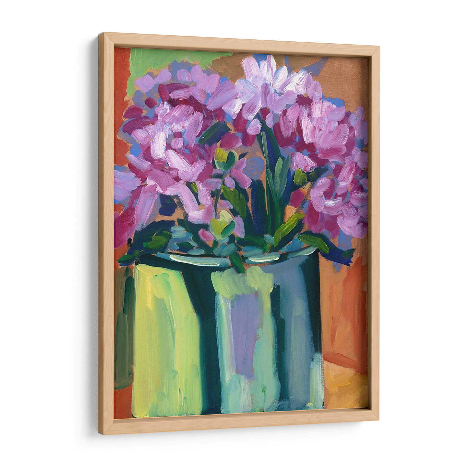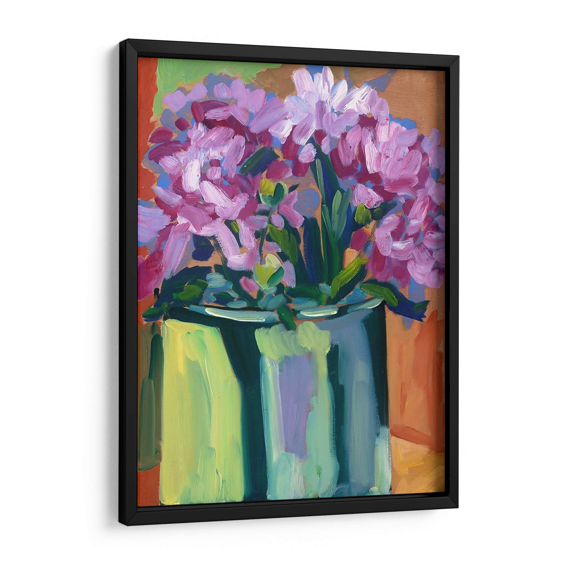 Celebra la frescura y vitalidad de la primavera con "Flores De Primavera Violeta IV", una obra de arte vibrante que captura la esencia de la naturaleza en plena floración. Este cuadro decorativo presenta un exuberante ramo de flores en tonos violeta y rosa, con pinceladas audaces y expresivas que dan vida a cada pétalo y hoja. El artista, Erin McGee Ferrell, utiliza una paleta de colores contrastantes y audaces, combinando los tonos florales con un jarrón en verde azulado y un fondo que evoca tonos tierra y anaranjados, creando una composición dinámica y llena de energía. La técnica impresionista y el estilo contemporáneo hacen que esta pieza sea perfecta para añadir un toque de color y alegría a cualquier espacio. Imagina este cuadro aportando calidez y un aire de renovación a tu sala de estar, un dormitorio o incluso un estudio. Su estilo único lo convierte en un punto focal fascinante, ideal para quienes buscan piezas que inspiren optimismo y belleza natural. Añade "Flores De Primavera Violeta IV" a tu colección y deja que su encanto primaveral ilumine tu hogar con un soplo de aire fresco y arte contemporáneo.