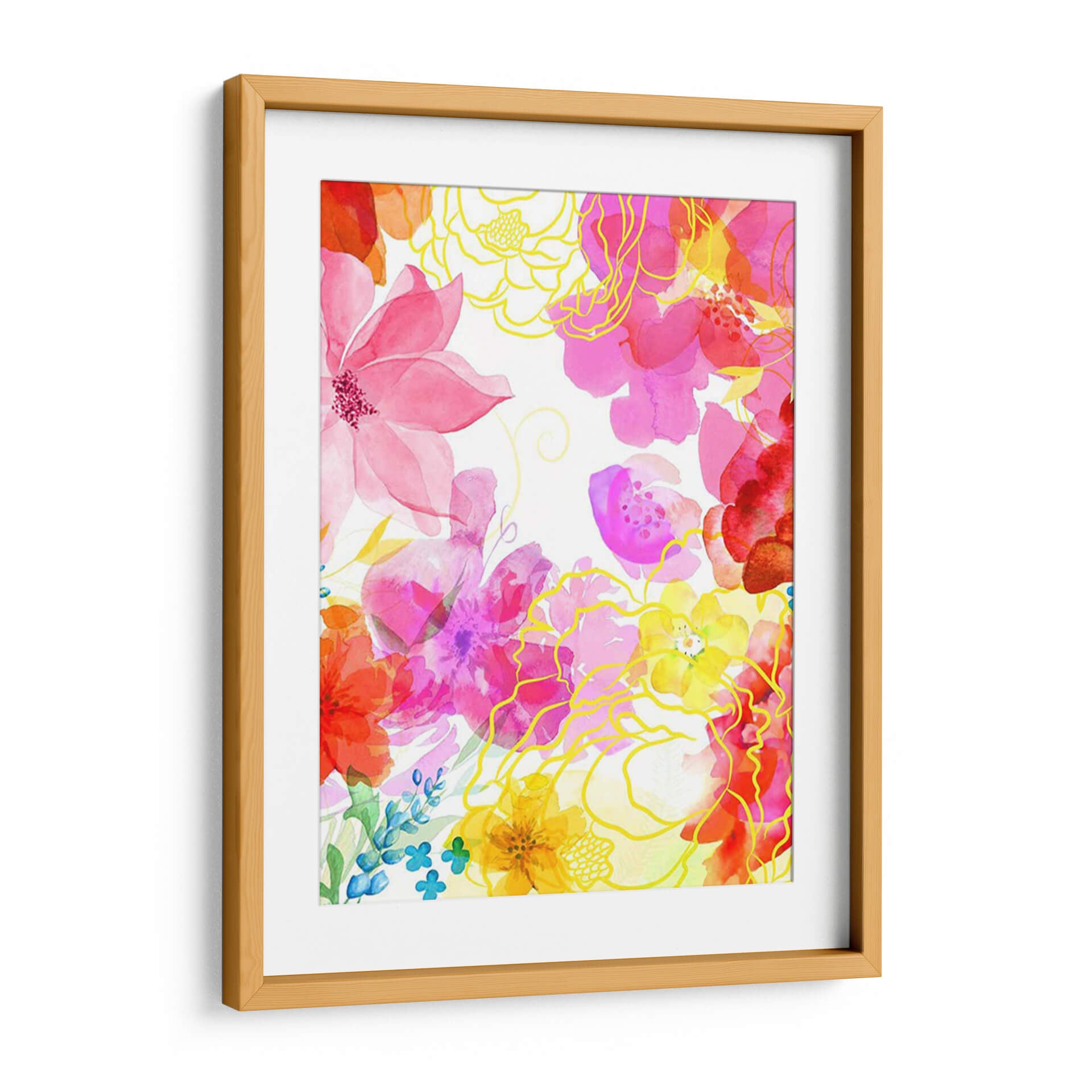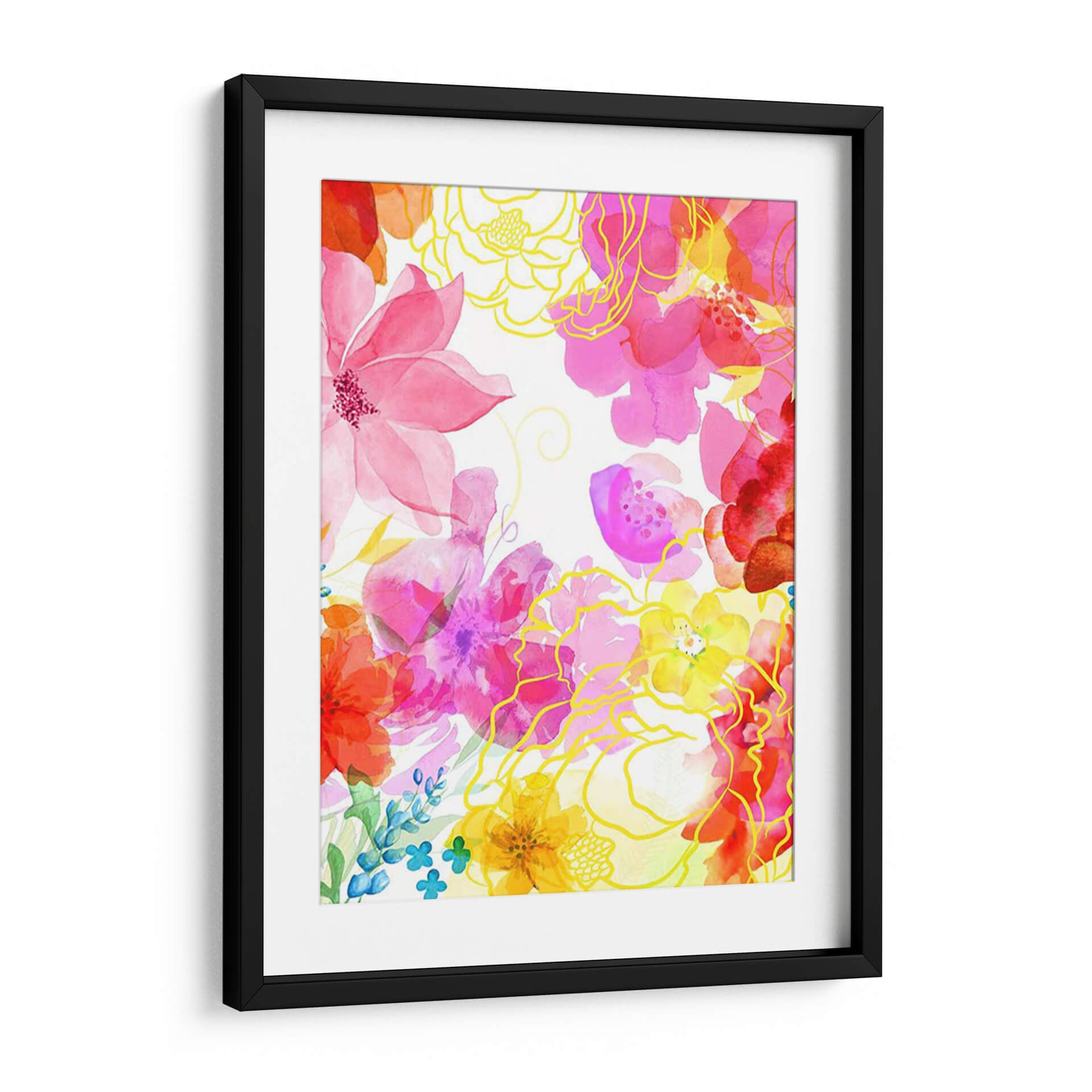 Sumérgete en la vibrante explosión de color y vida que ofrece "Flores En El Sol V", una obra de arte contemporáneo que captura la esencia de un jardín bañado por la luz. La artista Delores Naskrent nos deleita con una composición floral exuberante, donde las delicadas acuarelas se entrelazan con trazos enérgicos de color y contornos amarillos que aportan un toque moderno y dinámico. Predominan los tonos cálidos como el rosa intenso, el naranja vibrante y el amarillo sol, complementados por sutiles toques de azul y púrpura, creando una atmósfera alegre y optimista. Cada pétalo parece danzar sobre un fondo blanco luminoso, invitando a la contemplación y a la celebración de la belleza natural. Este cuadro decorativo es ideal para infundir vitalidad y un toque de frescura a cualquier espacio, desde una sala de estar moderna hasta un dormitorio acogedor o una oficina que necesite inspiración. "Flores En El Sol V" no es solo una pieza decorativa, sino una ventana a un mundo de color y alegría, perfecta para quienes buscan añadir un acento de optimismo y sofisticación a su hogar u oficina.