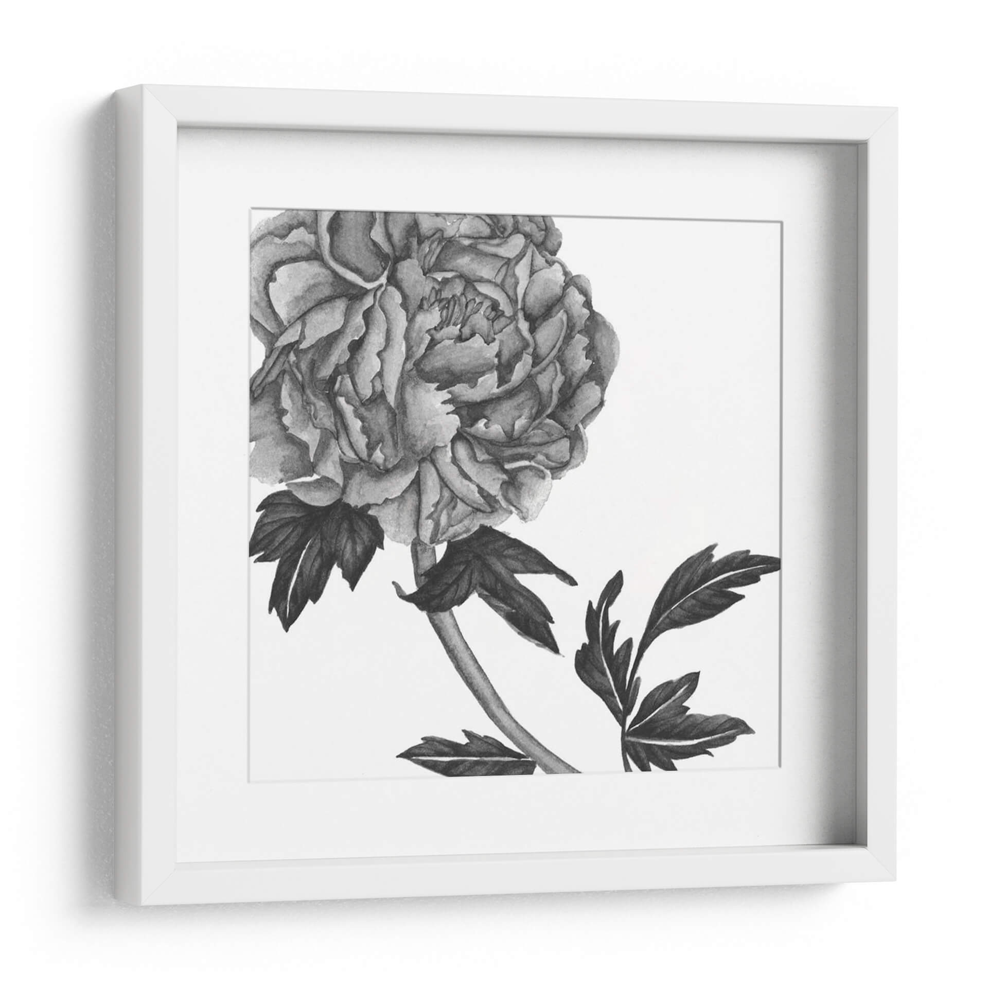 Sumérgete en la delicadeza y elegancia atemporal de "Flores En Gris III", una cautivadora obra de arte de Melissa Wang. Este cuadro decorativo captura la belleza etérea de una peonía en plena floración, representada con una paleta de grises que evoca sofisticación y serenidad. Los detalles intrincados de los pétalos y las hojas, ejecutados con maestría, aportan una profundidad y textura que invitan a la contemplación. La composición, centrada en la flor principal y alargada por un tallo con follaje, crea un equilibrio visual perfecto, dejando un generoso espacio en blanco que realza la figura central y aporta ligereza al conjunto. Ideal para quienes buscan añadir un toque de naturaleza estilizada y calma a su hogar u oficina, este cuadro es una pieza versátil que se integra armónicamente en diversos estilos decorativos, desde el minimalista hasta el más clásico. Su atmósfera serena lo convierte en la elección perfecta para dormitorios, estudios o cualquier espacio donde se desee fomentar la tranquilidad y la belleza sutil. "Flores En Gris III" no es solo una decoración, es una invitación a la pausa y a la apreciación de la forma y la sombra.