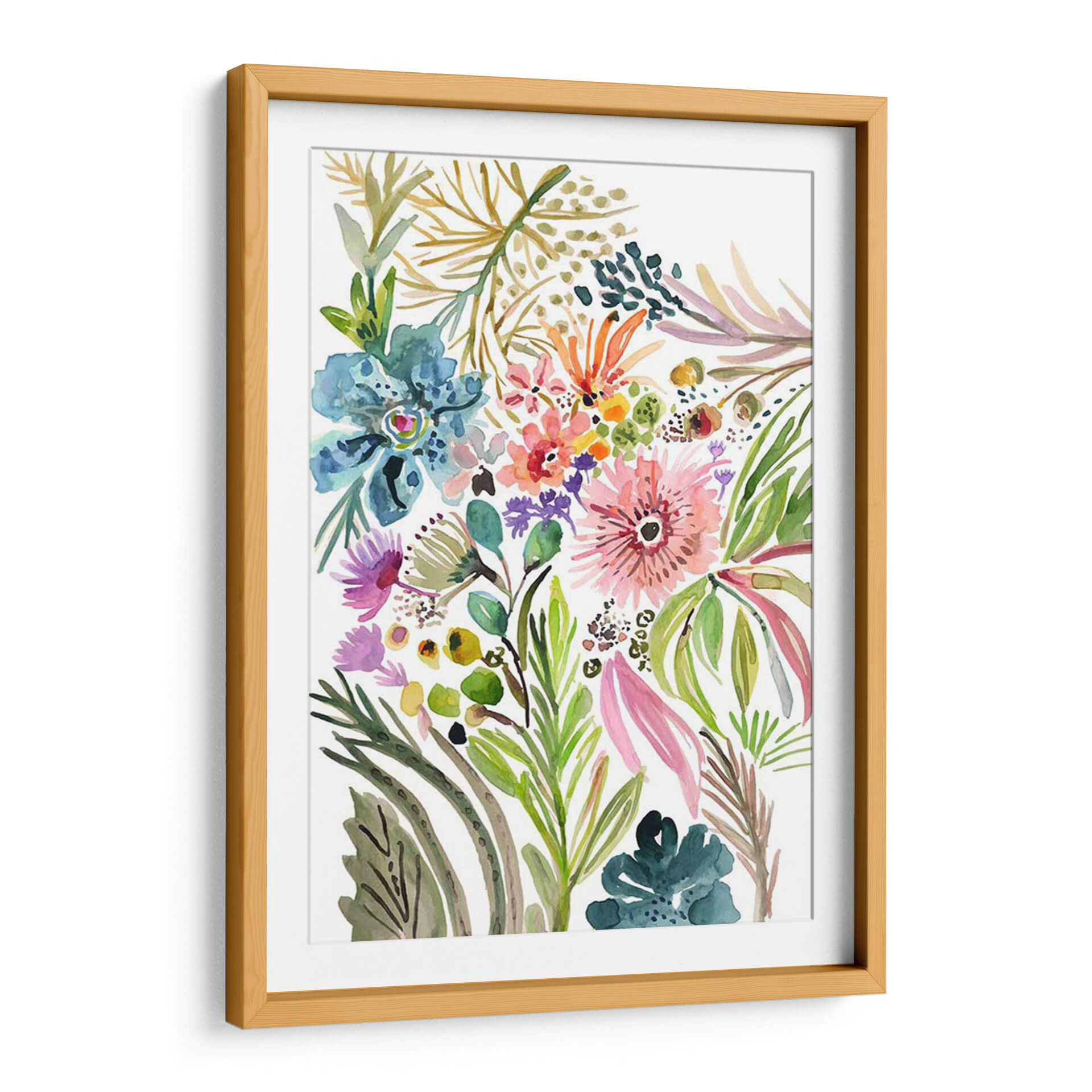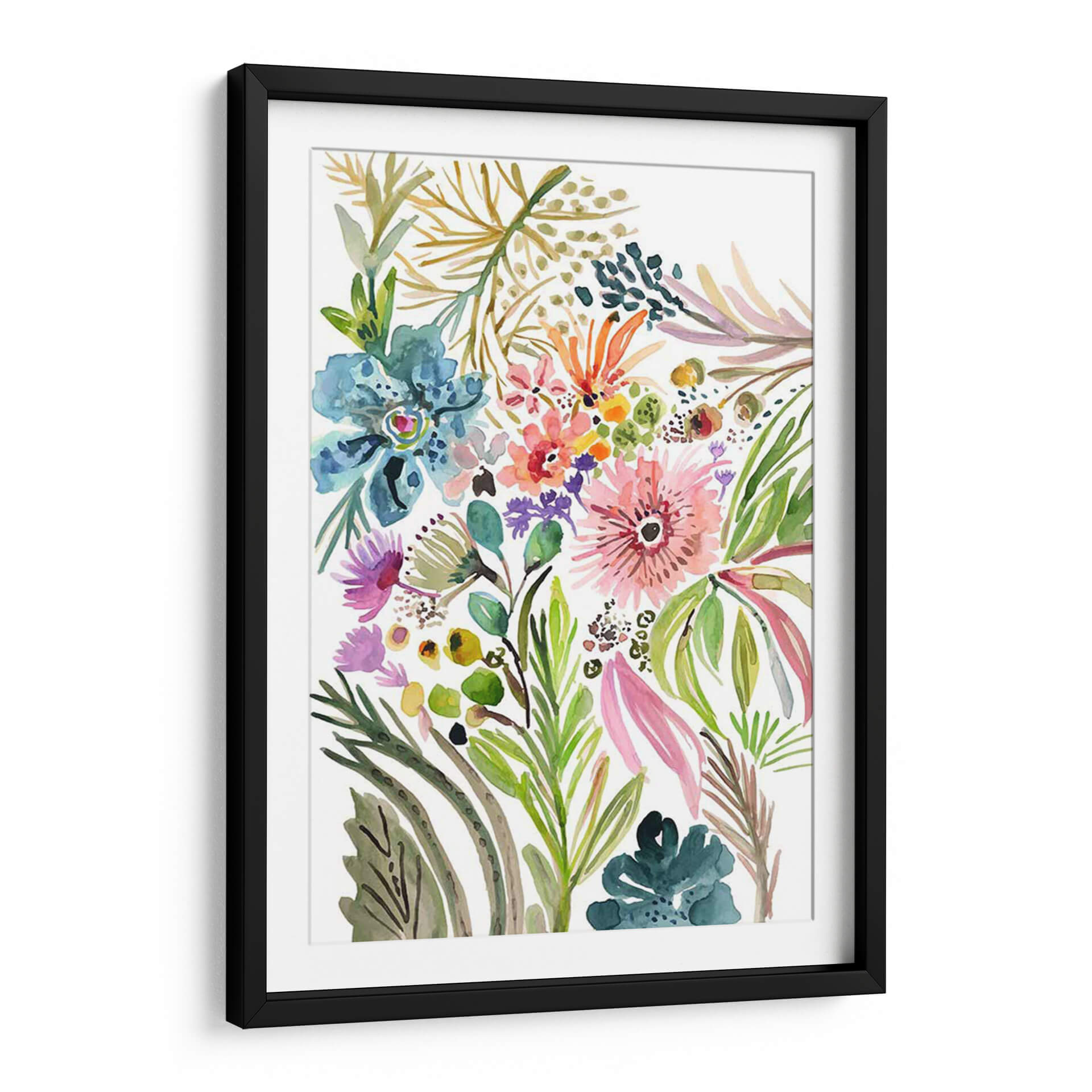 Sumérgete en la alegría vibrante de "Flores Felices I", una obra de arte decorativa que captura la esencia de un jardín exuberante con un toque contemporáneo. La artista Karen Fields utiliza acuarelas para crear un estallido de color y vida, con flores en tonos de rosa, azul, naranja y verde que bailan en armonía sobre un fondo blanco. Cada pincelada es delicada y expresiva, evocando la frescura de la naturaleza y la felicidad que inspira. Los diferentes tamaños y formas de las flores, junto con el follaje diverso, crean una composición dinámica y atractiva. Este cuadro decorativo es perfecto para añadir un toque de optimismo y color a cualquier espacio, ya sea una sala de estar, un dormitorio o una oficina. Su estilo floral moderno lo convierte en un punto focal encantador que invita a la contemplación y al bienestar. "Flores Felices I" no es solo una pieza de arte, es una celebración de la belleza natural y la alegría que trae a nuestros hogares. Ideal para quienes buscan infundir vitalidad y un espíritu alegre en su decoración.