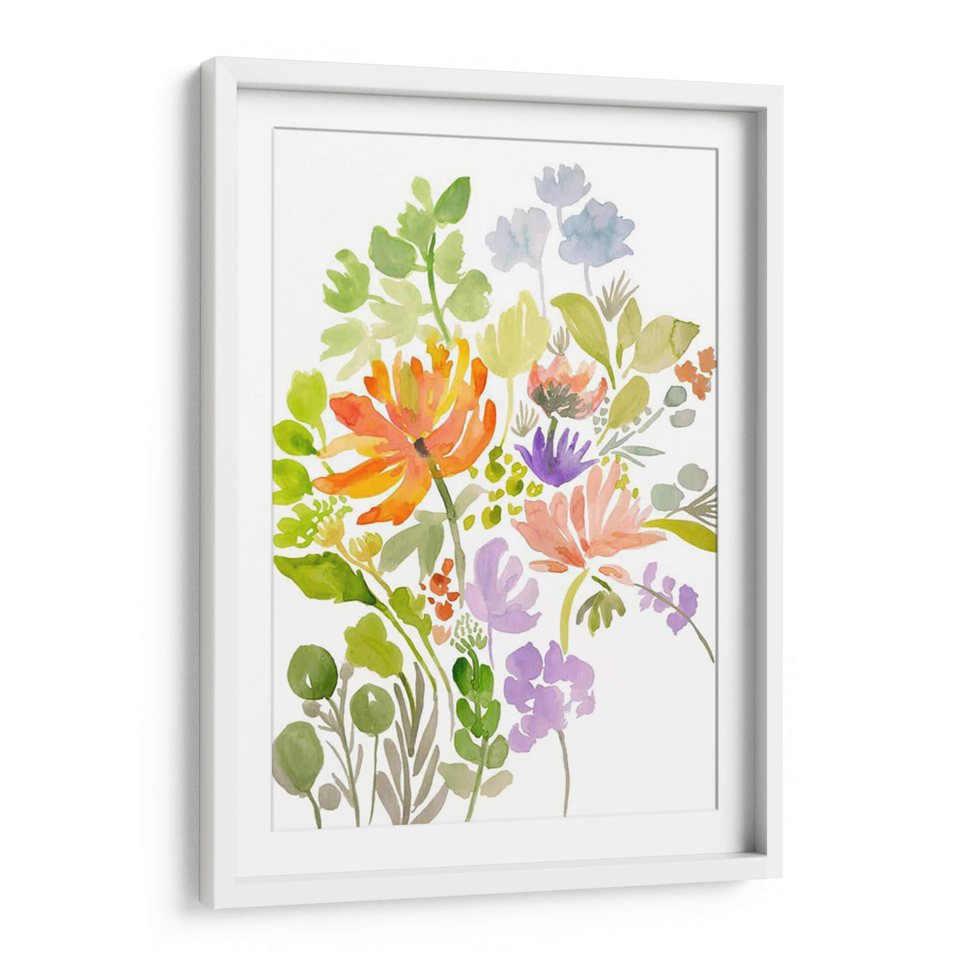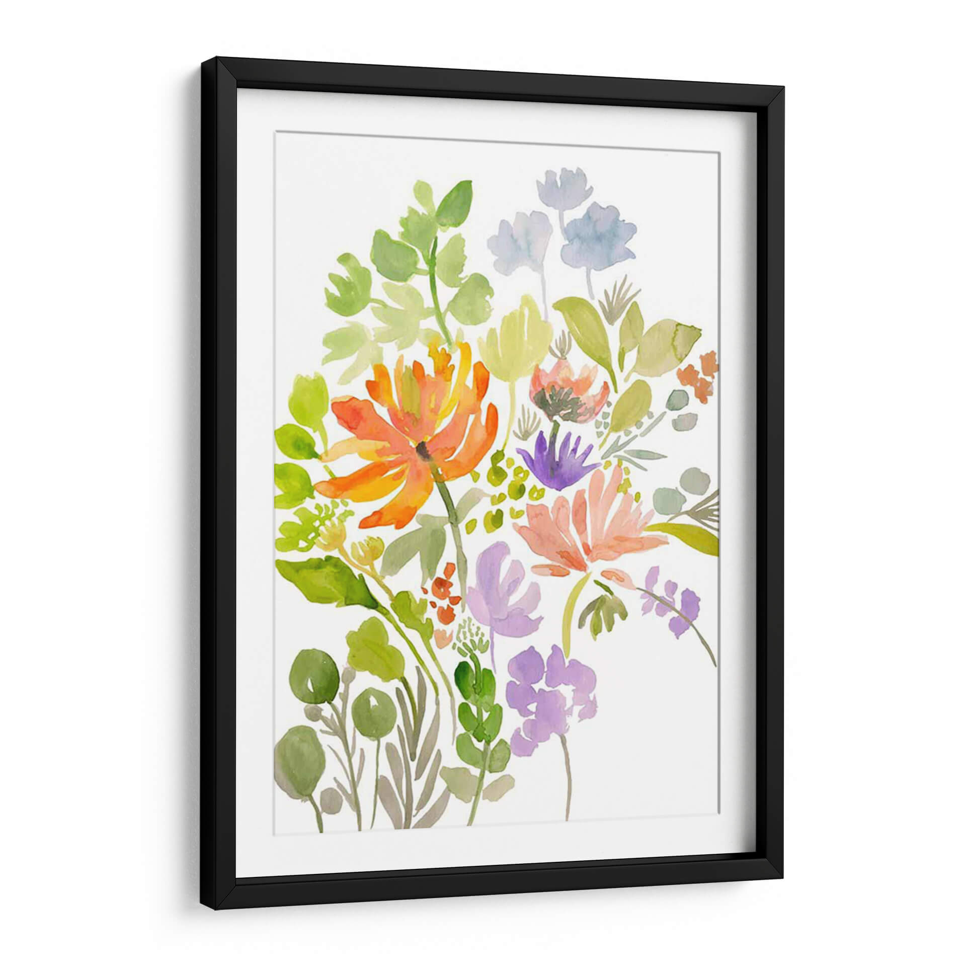 Inyecta vitalidad y alegría en tu espacio con 'Flores Felices III', una obra de arte vibrante que captura la esencia de un jardín exuberante en pleno florecimiento. Creada por la talentosa artista Karen Fields, esta pieza presenta un delicado y expresivo estilo de acuarela que evoca una sensación de frescura y optimismo. La composición se centra en un vibrante ramo de flores en tonos naranjas, rosas, morados y azules, rodeadas de un follaje verde en diversas tonalidades. La técnica de acuarela, con sus trazos sueltos y colores traslúcidos, otorga a la obra una ligereza etérea y un encanto orgánico. Ideal para iluminar cualquier habitación, este cuadro decorativo es perfecto para salones modernos, dormitorios acogedores o incluso oficinas que buscan un toque de color y naturaleza. 'Flores Felices III' no solo embellecerá tus paredes, sino que también infundirá una atmósfera de felicidad y tranquilidad, convirtiéndose en un punto focal inspirador en tu decoración. Su estilo contemporáneo y su temática universal lo hacen una adición encantadora para cualquier amante del arte que busque añadir un toque de belleza natural y optimismo a su hogar.
