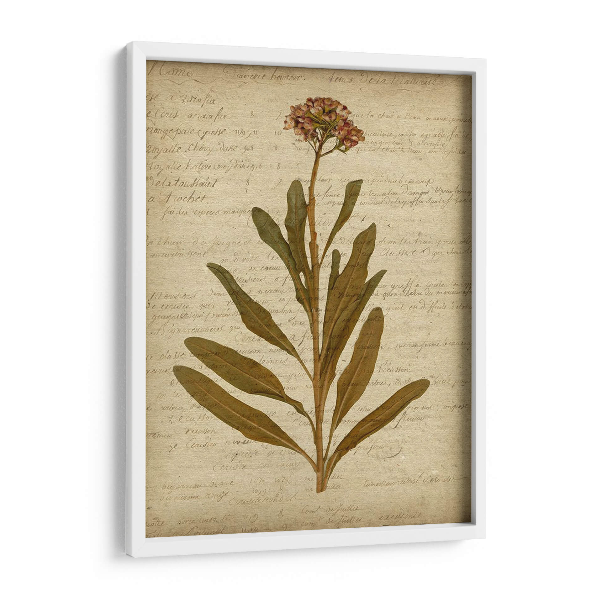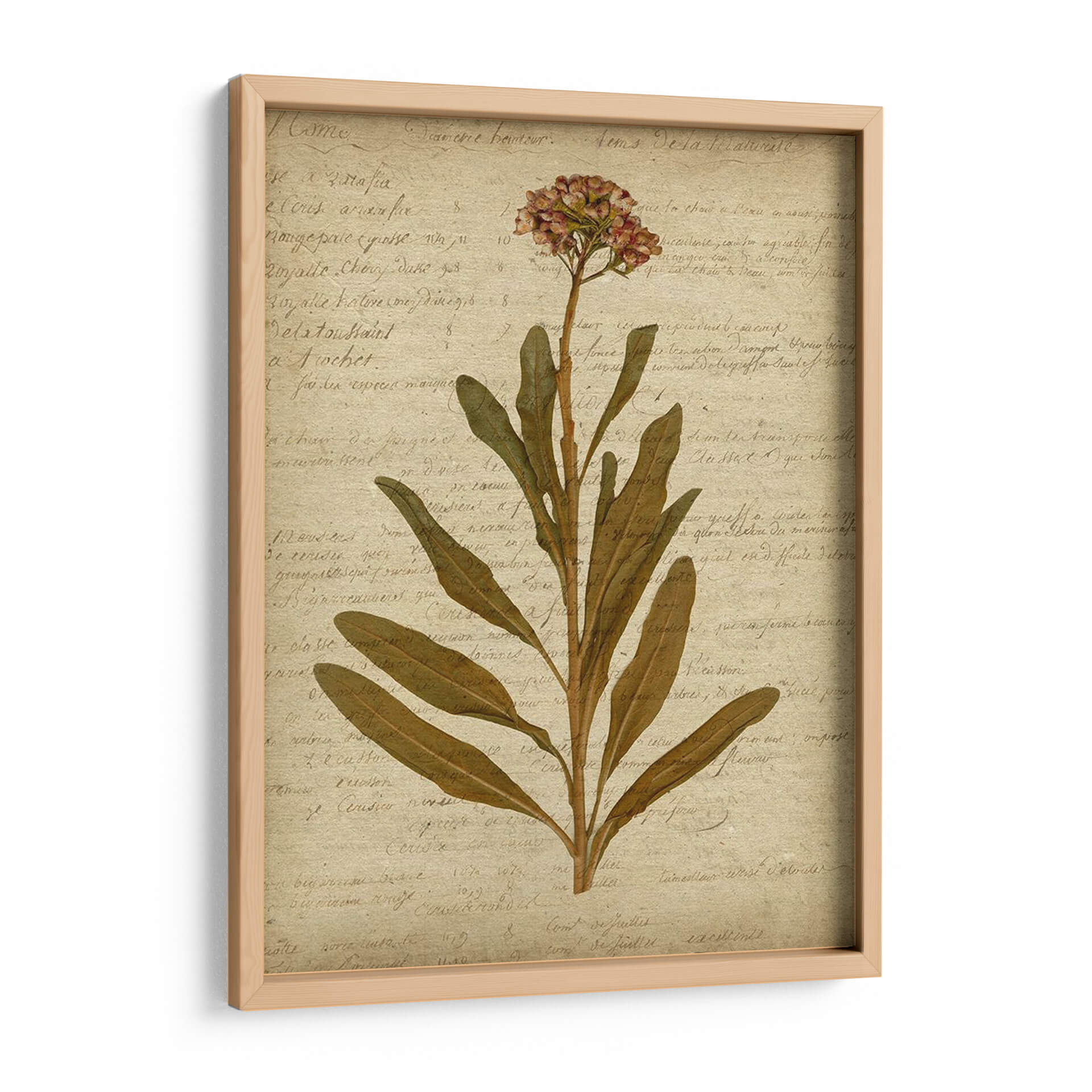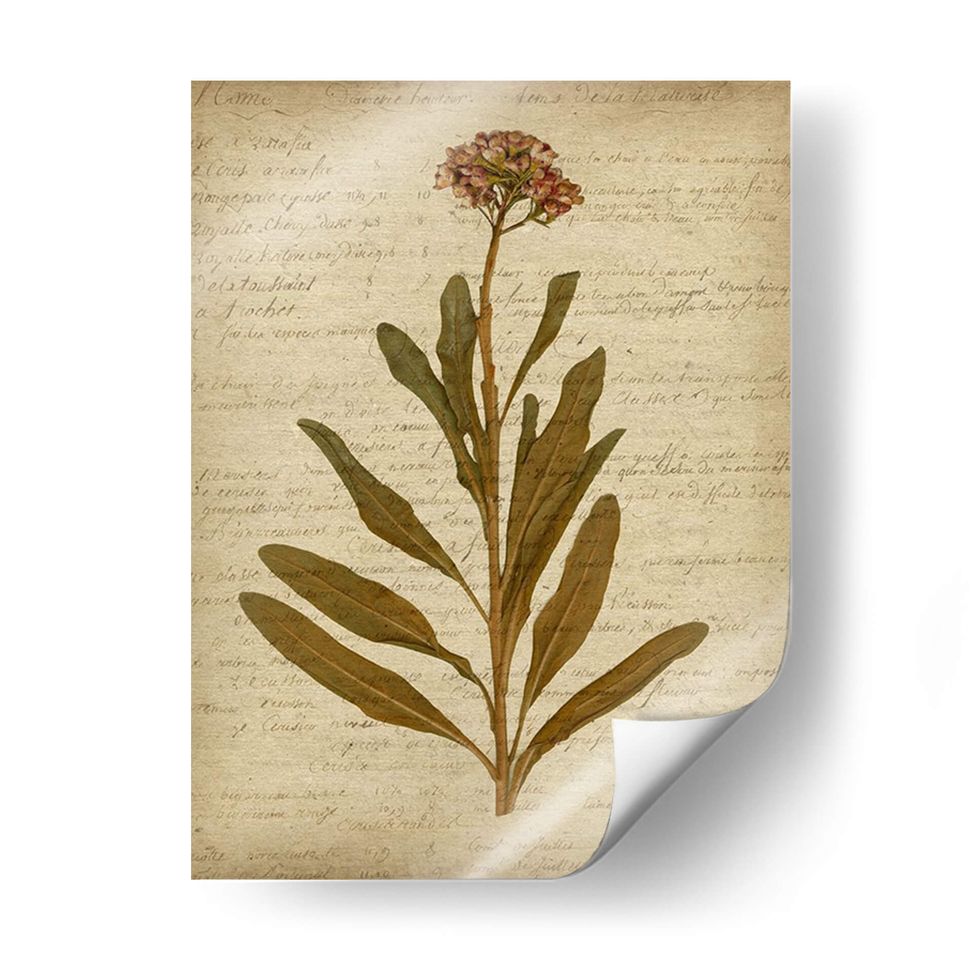 Sumérgete en la delicadeza y el encanto atemporal de "Flores Prensadas Románticas II", una obra de arte que captura la belleza efímera de la naturaleza. Este cuadro decorativo presenta una rama solitaria de flores y hojas en tonos tierra, delicadamente dispuestas sobre un fondo texturizado que imita un manuscrito antiguo. Los suaves colores, desde los ocres y marrones de las hojas hasta los sutiles toques rosados de las flores, evocan una sensación de calma y nostalgia. La composición, centrada en la elegancia botánica, aporta un toque de sofisticación orgánica a cualquier espacio. Ideal para aquellos que aprecian la estética vintage y la serenidad de las ilustraciones botánicas, este cuadro es perfecto para añadir un punto de interés sereno a salones, dormitorios o estudios. Su estilo, que combina elementos de arte botánico y un toque de romanticismo rústico, lo convierte en una pieza versátil que complementa una amplia gama de estilos decorativos, desde el rústico chic hasta el contemporáneo minimalista. Añade un toque de naturaleza pausada y belleza clásica a tu hogar con esta exquisita pieza.