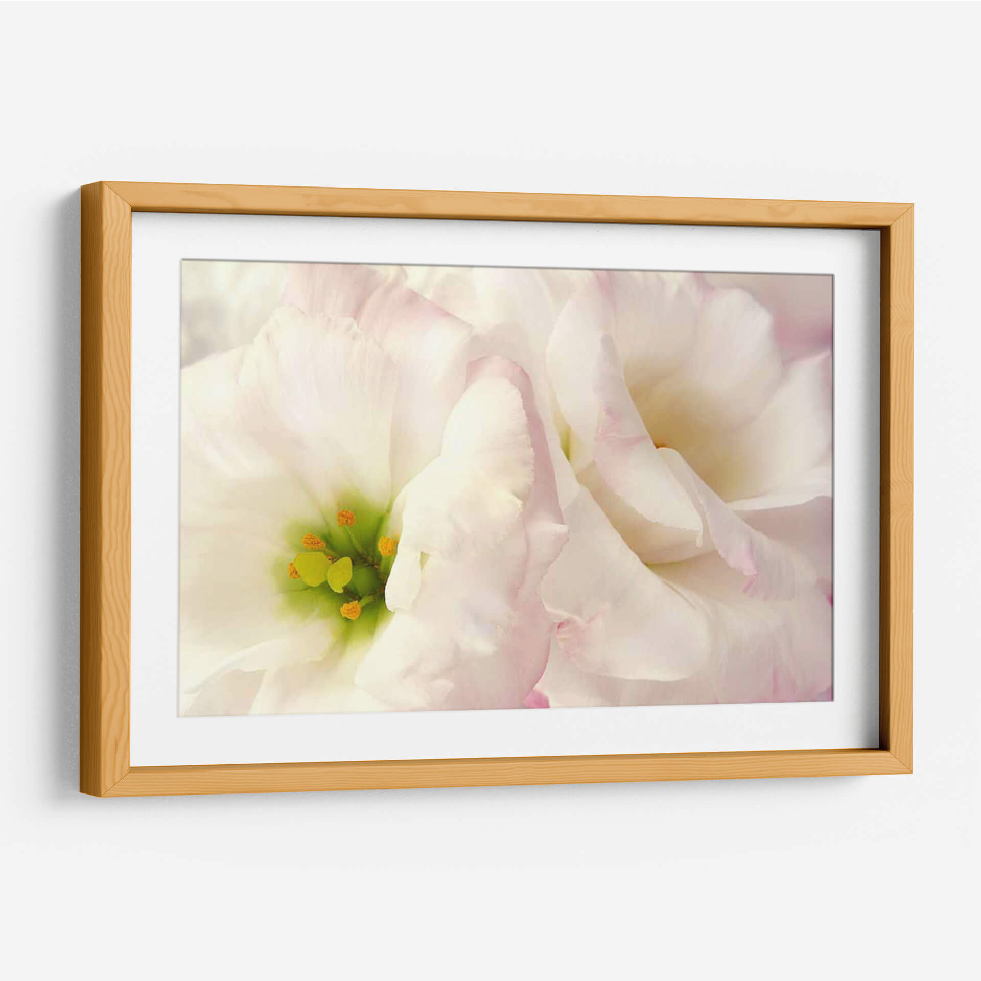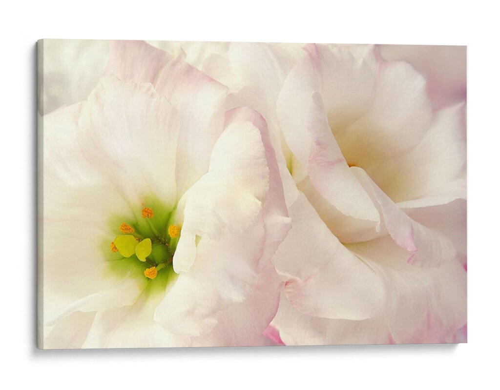Sumérgete en la delicadeza y la serenidad con 'Flores Rosadas I', una obra de arte que captura la esencia de la belleza floral en su máxima expresión. La artista Christine Zalewski nos presenta un primer plano íntimo de pétalos suaves y etéreos, teñidos de un blanco puro con sutiles toques de rosa pálido que añaden una dimensión de ternura y elegancia. El centro de la flor, con sus vibrantes tonos verdes y anaranjados, contrasta maravillosamente con la suavidad circundante, invitando a la contemplación. Esta pieza es una oda a la naturaleza, evocando calma, pureza y un delicado optimismo. Su estilo, que roza lo fotográfico y lo impresionista, permite apreciar la textura y la forma de cada pétalo con un detalle exquisito, creando una atmósfera de paz y sofisticación. 'Flores Rosadas I' es ideal para añadir un toque de dulzura y refinamiento a cualquier espacio, ya sea un dormitorio, un salón o una oficina, transformando ambientes y conectando con la belleza sutil que nos rodea. Es una invitación a la reflexión y al disfrute de los pequeños detalles que embellecen la vida, un cuadro decorativo perfecto para quienes buscan inspiración y armonía visual en su hogar o lugar de trabajo.