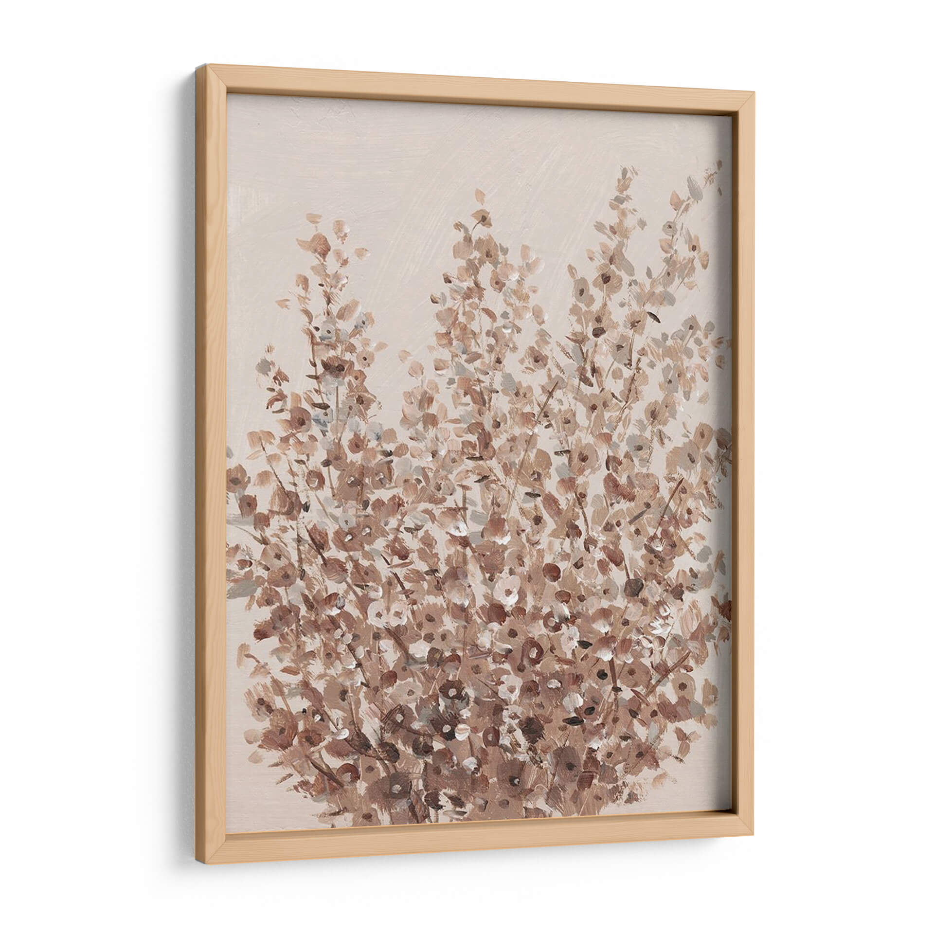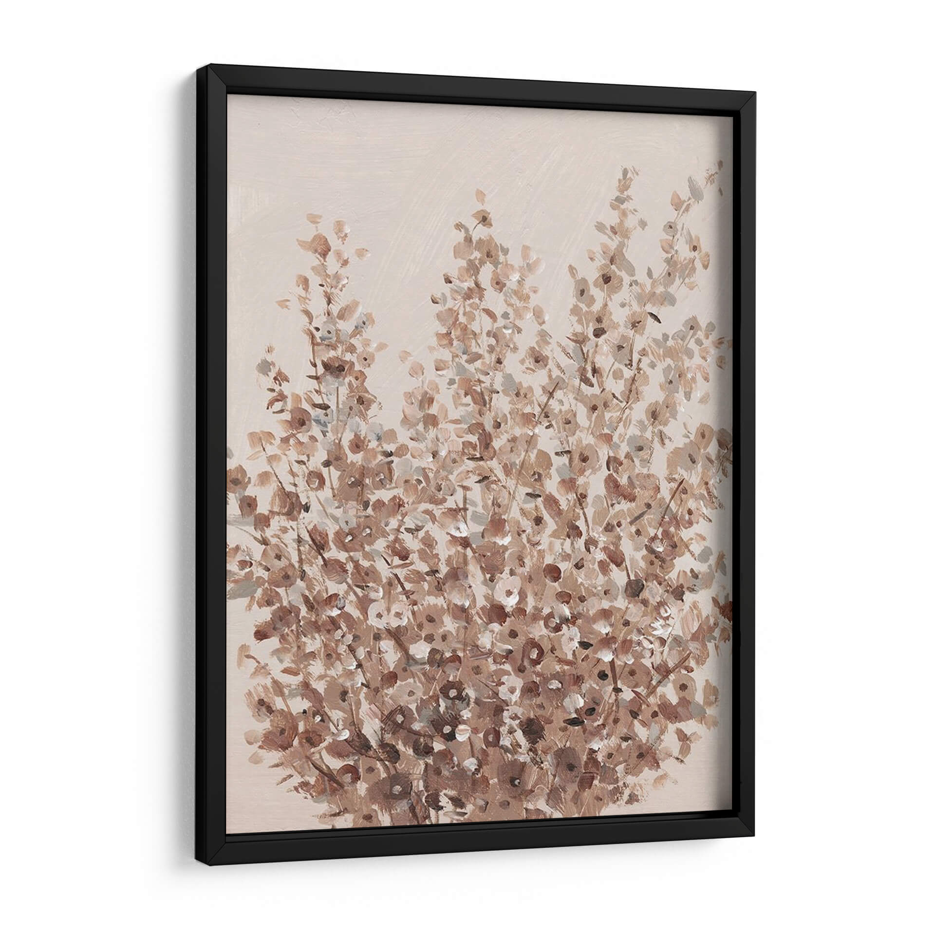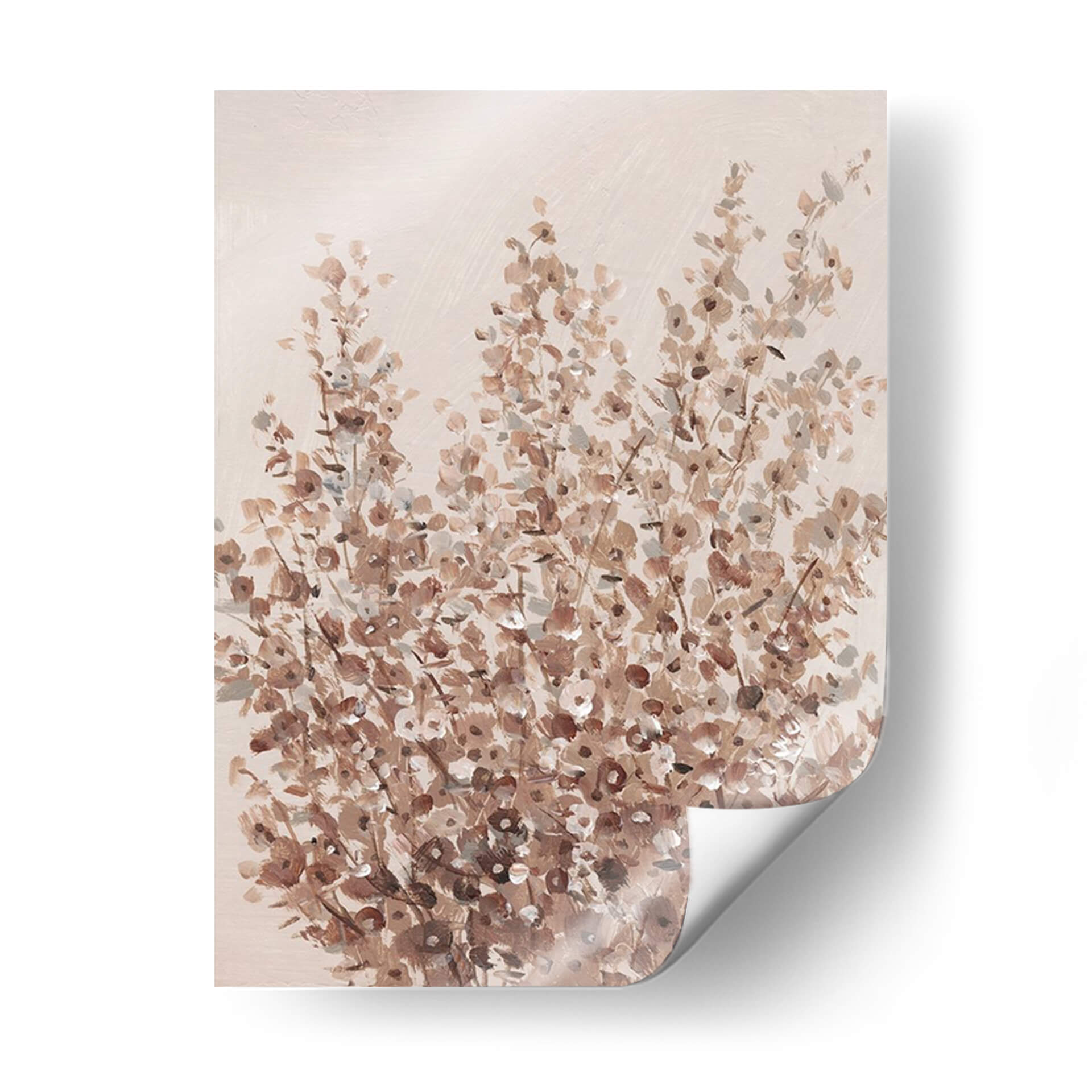 Sumérgete en la serena belleza de "Flores Silvestres Rústicas II", una obra de arte que captura la esencia delicada y el encanto orgánico de la naturaleza. El artista Tim O'Toole nos presenta un lienzo donde las flores silvestres cobran vida a través de pinceladas sueltas y una paleta de colores terrosos que evocan una sensación de calidez y tranquilidad. Los tonos suaves de beige, marrón y toques sutiles de gris se entrelazan para crear una composición visualmente armoniosa, perfecta para añadir un toque de sofisticación rústica a cualquier espacio. Cada detalle, desde las delicadas formas de los pétalos hasta la textura sugerida de los tallos, invita a la contemplación y a una conexión profunda con lo natural. Este cuadro decorativo es ideal para salones, dormitorios o estudios, aportando una atmósfera de calma y un punto focal elegante que complementa una variedad de estilos decorativos, desde el bohemio hasta el contemporáneo. Descubre la simplicidad cautivadora y la elegancia atemporal de esta pieza, diseñada para transformar tu hogar en un refugio de paz y buen gusto.