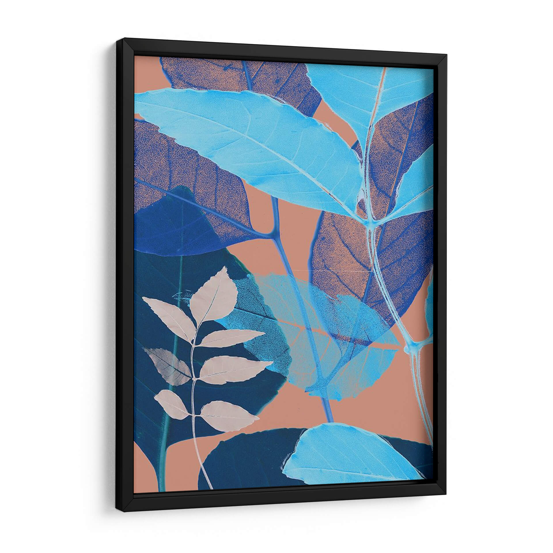 Adéntrate en el sereno mundo botánico de "Folio Ii" de Sia Aryai, una obra de arte que captura la delicadeza de la naturaleza con un toque contemporáneo. Este cuadro decorativo presenta un entramado de hojas en diversas tonalidades de azul, desde el cerúleo vibrante hasta el índigo profundo, superpuestas sobre un fondo cálido y terroso en tono salmón o terracota. La técnica empleada resalta las venas y texturas de las hojas, creando un efecto casi etéreo y transparente, como si fueran radiografías botánicas. La composición se centra en la yuxtaposición de elementos naturales, invitando a la contemplación y aportando una sensación de calma y frescura a cualquier espacio. Ideal para quienes buscan añadir un toque de naturaleza estilizada y color a su hogar u oficina, "Folio Ii" es una pieza versátil que complementa tanto decoraciones modernas como orgánicas. Su paleta de colores contrastante pero armoniosa la convierte en un punto focal intrigante, capaz de transformar la atmósfera de una habitación, aportando un aire de sofisticación y conexión con el mundo natural. Descubre la belleza sutil de la botánica a través de la visión artística única de Sia Aryai y enriquece tu entorno con esta cautivadora obra.