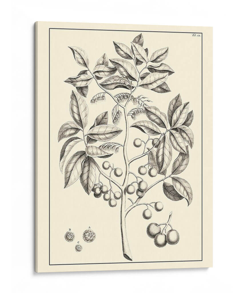 Sumérgete en la elegancia atemporal de "Follaje Antiguo No Adornado Vi", una obra de arte que captura la delicadeza de la botánica con un estilo clásico. Este cuadro decorativo, del artista Pierre Josep Buchoz, presenta una detallada ilustración en blanco y negro de una rama frutal, con hojas exuberantes y racimos de bayas representados con trazos finos y precisos. La paleta de colores se centra en tonos neutros y sepia, creando una atmósfera de serenidad y sofisticación, ideal para complementar cualquier espacio que busque un toque de naturaleza refinada. La composición, cuidadosamente equilibrada, atrae la mirada hacia la intrincada belleza de la planta, invitando a la contemplación. Es una pieza perfecta para añadir un aire de erudición y calma a tu hogar u oficina, evocando la sensación de un antiguo herbario. Este lienzo es una excelente opción para quienes aprecian el arte botánico, la ilustración científica o buscan una decoración de pared que combine historia y estilo contemporáneo. Transforma tu ambiente con la belleza natural y la artesanía detallada de esta pieza única, diseñada para perdurar en el tiempo y ser un punto focal de admiración.