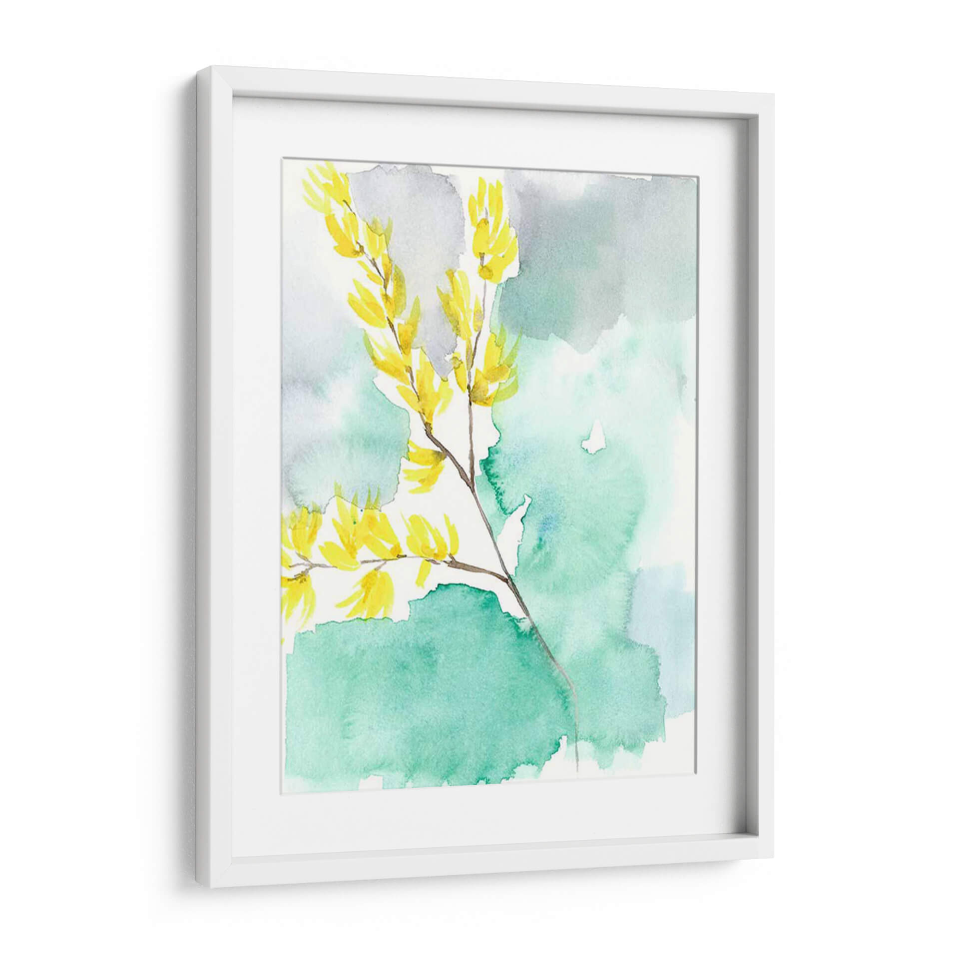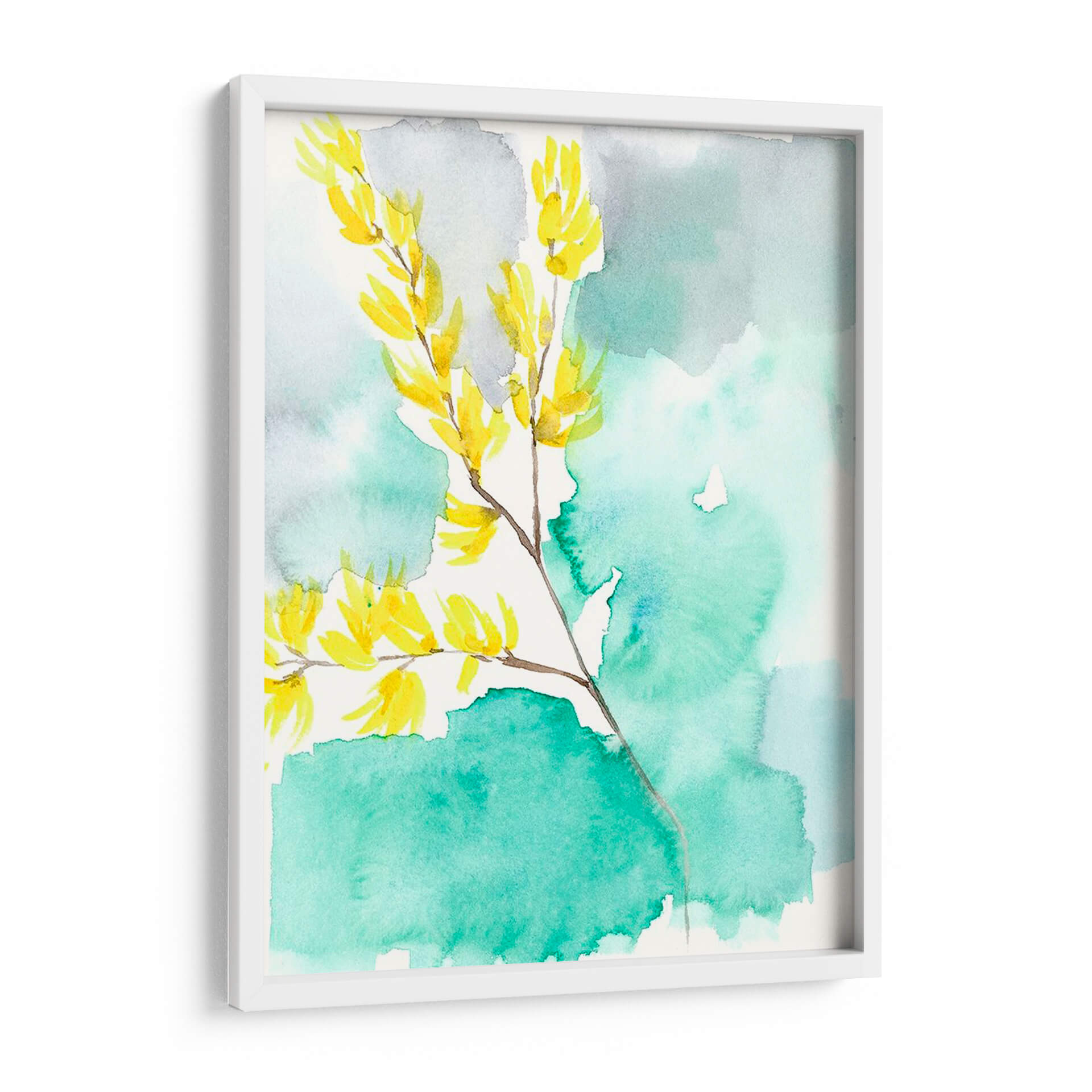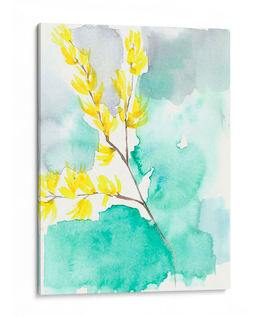 Sumérgete en la delicadeza y el vibrante estallido de color de "Forsythia Dreams I", una obra de arte contemporáneo de Jennifer Goldberger. Este cuadro decorativo captura la esencia de la naturaleza con una interpretación etérea de ramas cargadas de flores amarillas brillantes. La técnica de acuarela, con sus lavados suaves y traslúcidos, crea un fondo abstracto en tonos turquesa y grises, que contrasta armoniosamente con la vivacidad de las flores. La composición, centrada en la rama principal que se extiende elegantemente, evoca una sensación de movimiento y frescura, invitando a la contemplación de la primavera y sus renacimientos. Es una pieza ideal para infundir alegría y serenidad en cualquier espacio, desde una sala de estar moderna hasta un dormitorio tranquilo o una oficina inspiradora. "Forsythia Dreams I" no es solo una decoración, sino una ventana a la belleza efímera de la naturaleza, presentada con una sensibilidad artística que captura la luz y el color de una manera única y cautivadora. Añade un toque de vitalidad y elegancia a tu hogar con este exquisito cuadro de inspiración floral.