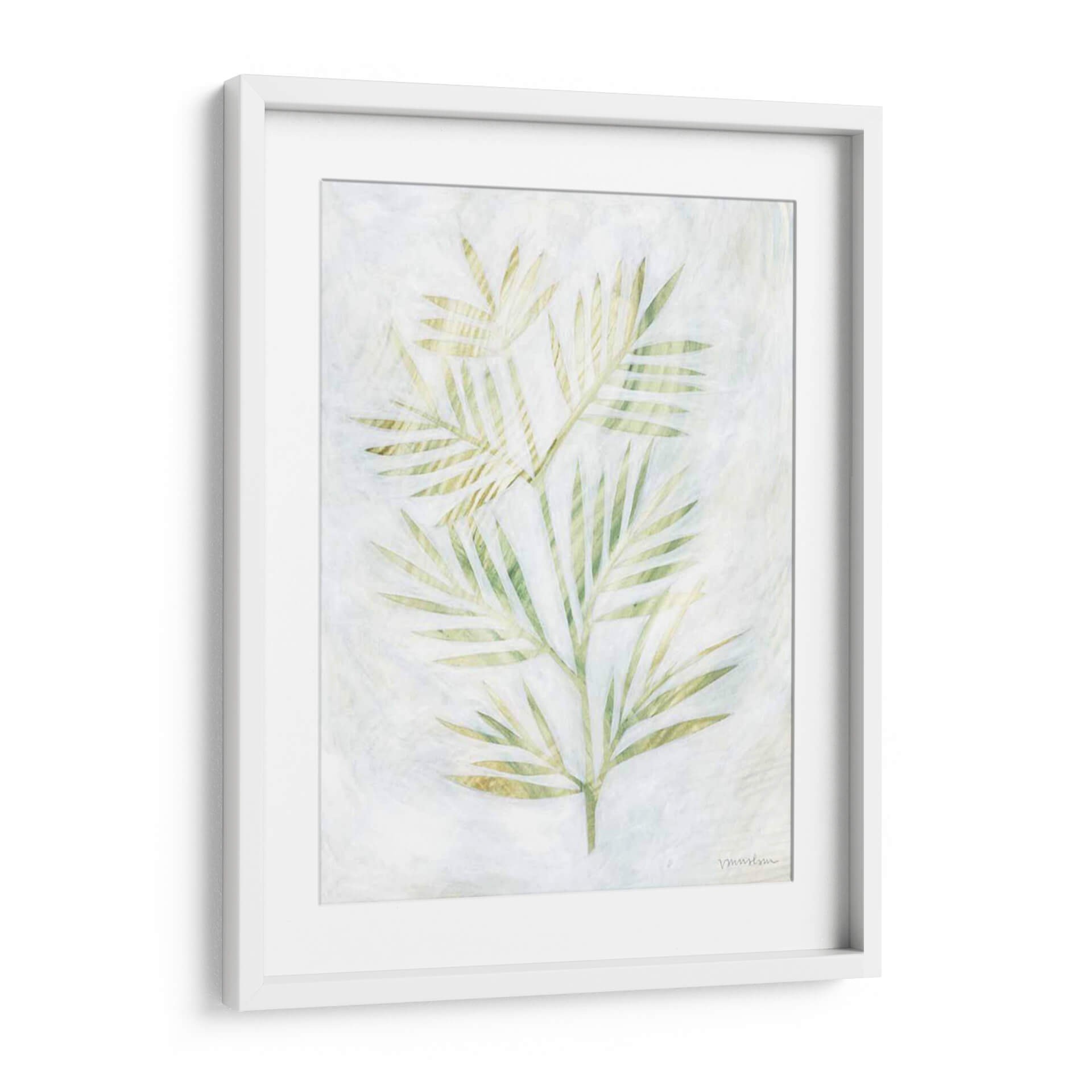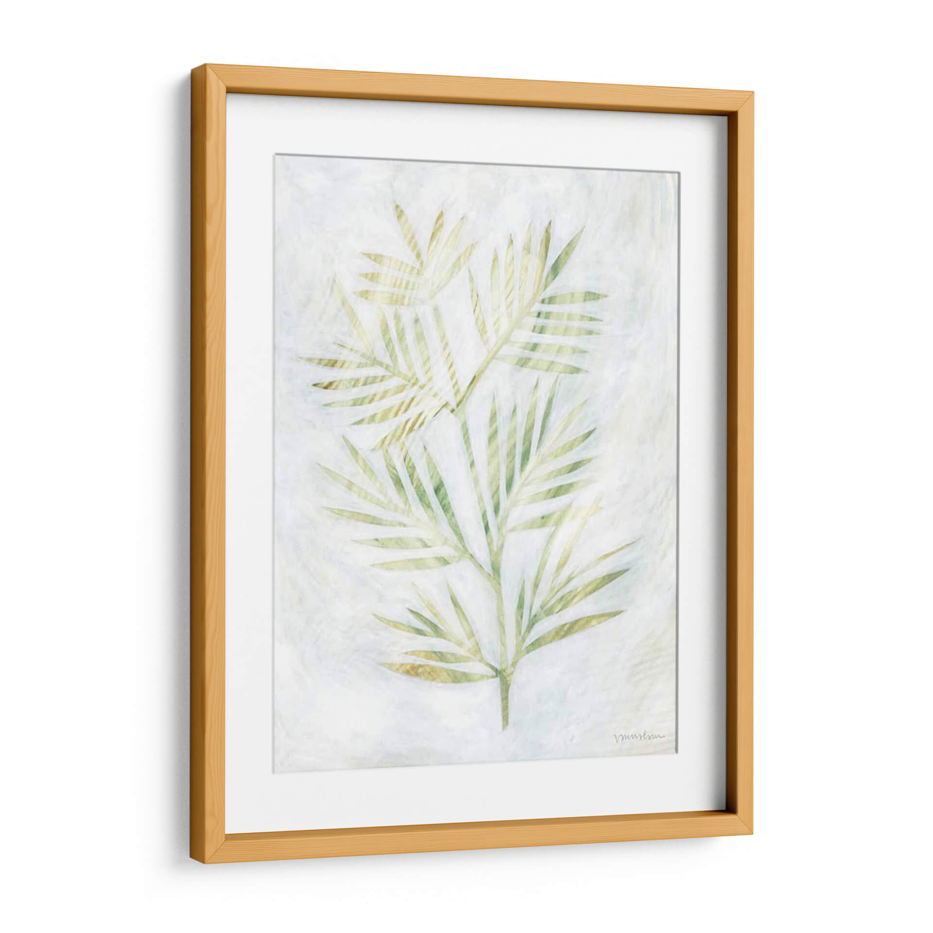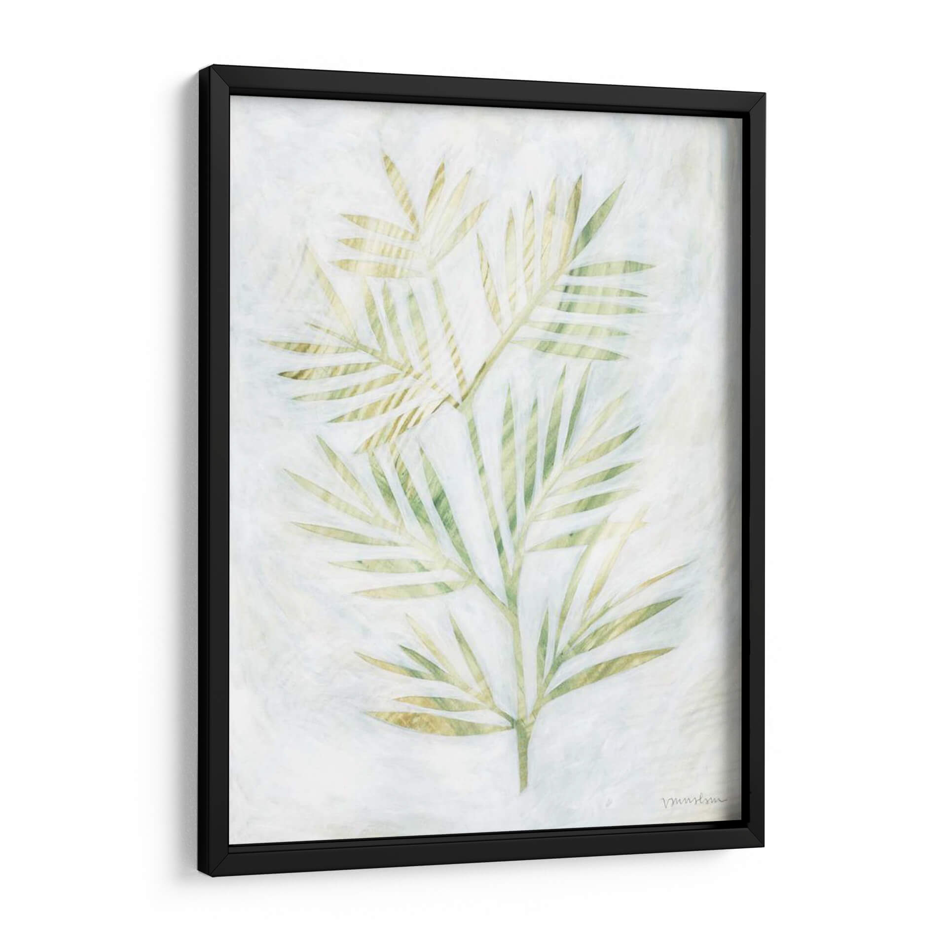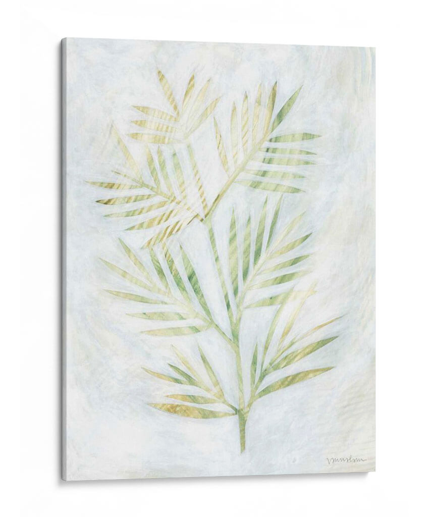 Sumérgete en la serenidad de la naturaleza con "Fronds Breezy III", una obra de arte que captura la delicadeza de las hojas de palma con un toque etéreo. La paleta de colores, dominada por suaves tonos verdes y dorados sobre un fondo texturizado de blanco y azul pálido, evoca una atmósfera de calma y brisa marina. El estilo, que recuerda a la acuarela o a una técnica de impresión delicada, presenta las frondas con una transparencia sutil que permite apreciar el movimiento y la ligereza. La composición centraliza la belleza de la botánica, invitando a la contemplación y a la conexión con el entorno natural. Este cuadro decorativo es la elección perfecta para añadir un acento de frescura y tranquilidad a tu sala de estar, dormitorio o cualquier espacio que busque un refugio de paz. Su diseño versátil se integra maravillosamente en ambientes modernos, escandinavos o costeros, aportando una dosis de elegancia orgánica y un recordatorio visual de la belleza simple y efímera del mundo natural. "Fronds Breezy III" no es solo una decoración, sino una ventana a un oasis de serenidad.