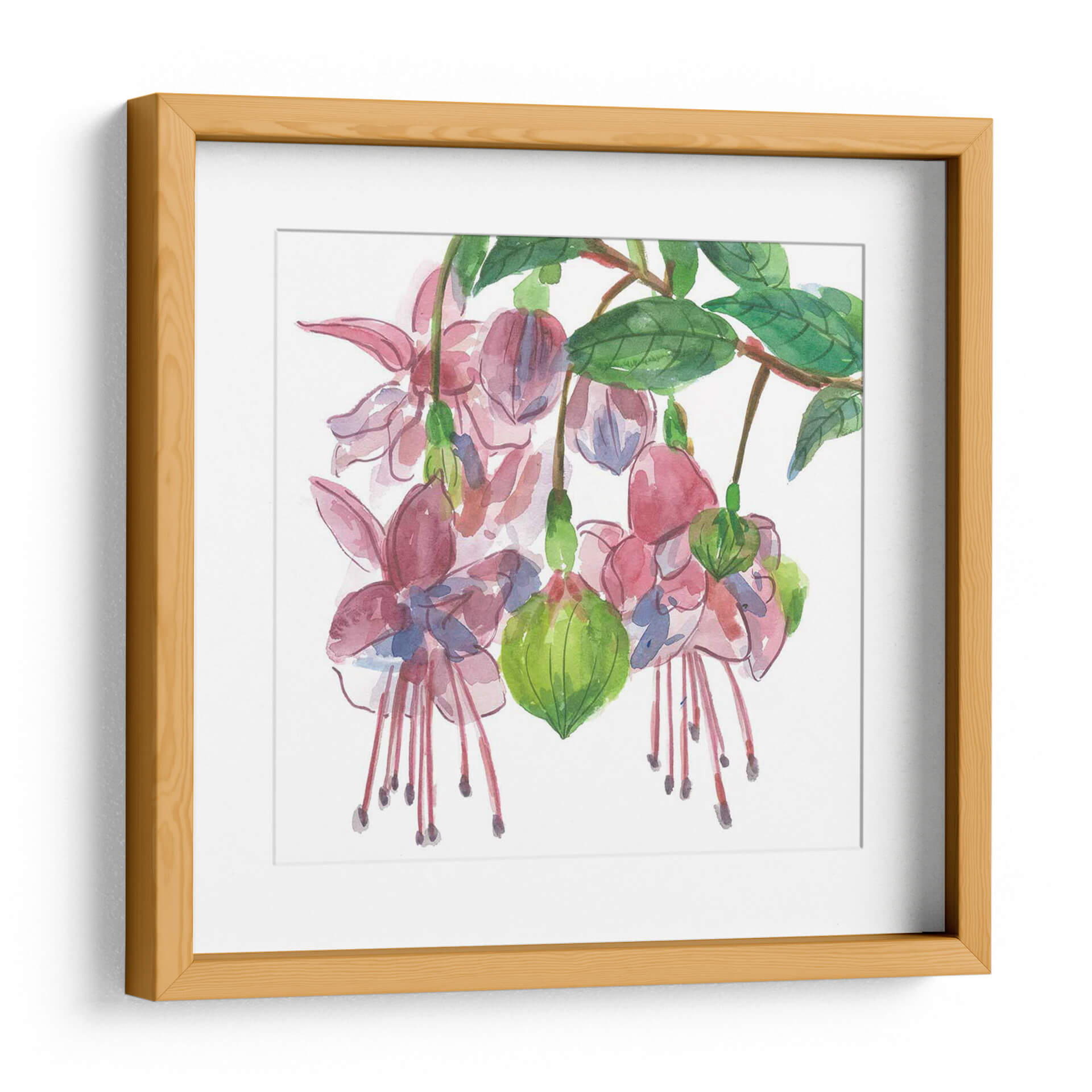Sumérgete en la delicadeza y el encanto natural con "Fucsias I", una obra de arte de Melissa Wang que captura la esencia de estas flores colgantes con una maestría acuarela. La pieza presenta un racimo de fucsias en pleno esplendor, donde los pétalos de tonos rosados y violáceos se entrelazan con vibrantes toques verdes de sus hojas y capullos. La técnica de acuarela, con sus transparencias y pinceladas fluidas, otorga una ligereza etérea a la composición, evocando una sensación de frescura y vitalidad. Los colores se funden suavemente, creando una atmósfera serena y optimista, perfecta para añadir un toque de color y naturaleza a cualquier espacio. Este cuadro decorativo es ideal para iluminar salones modernos, dar vida a dormitorios o aportar un aire de sofisticación floral a oficinas y estudios. "Fucsias I" no es solo una representación de flores, sino una invitación a sentir la belleza efímera y la alegría que emana de la naturaleza, transformando tu hogar en un refugio de paz y estilo. Descubre cómo esta obra puede convertirse en el punto focal que eleva tu decoración.